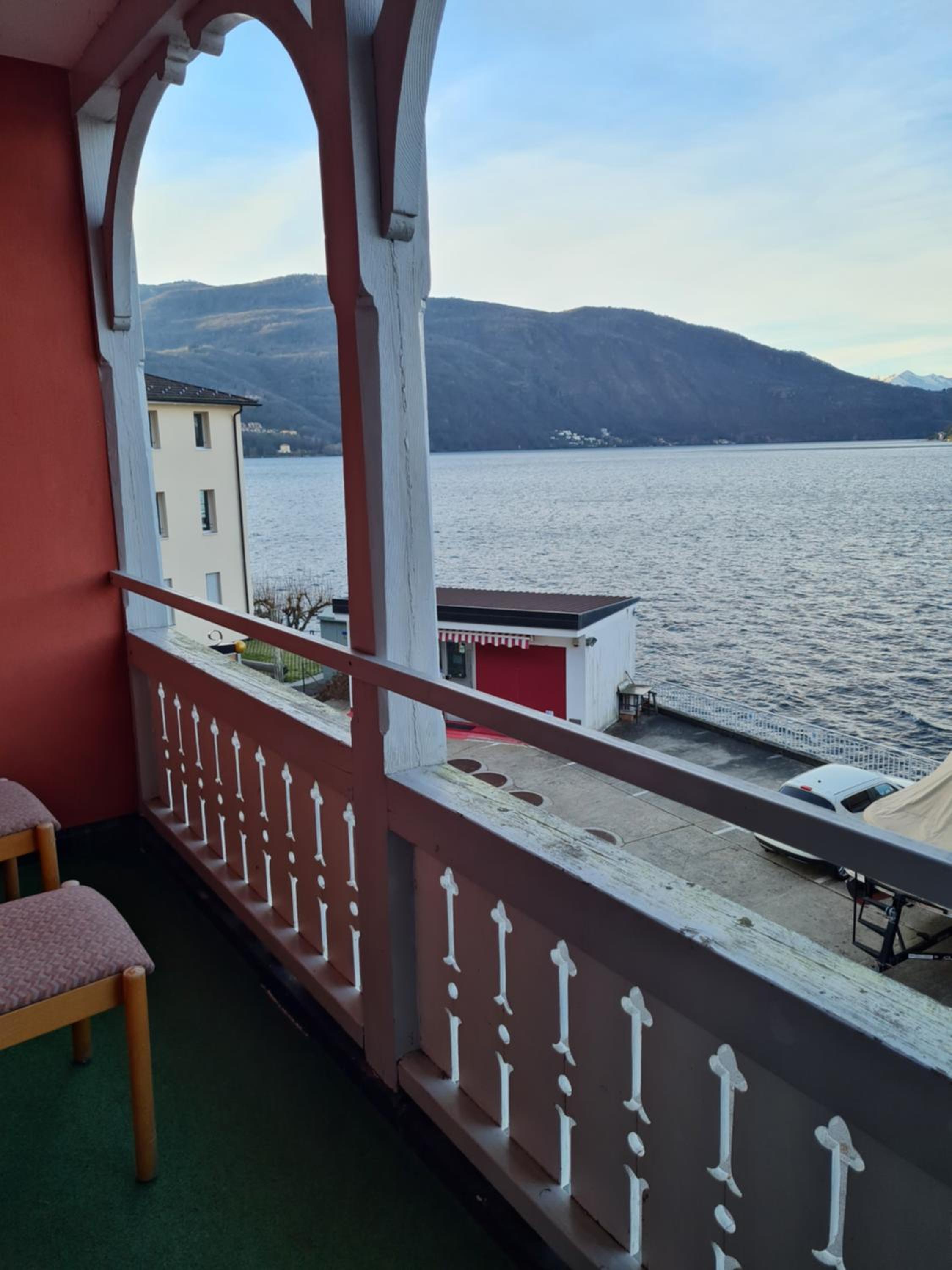 Schöne Lage über die Straße direkt am See; kostenlose Parkplätze direkt vor dem Hotel;