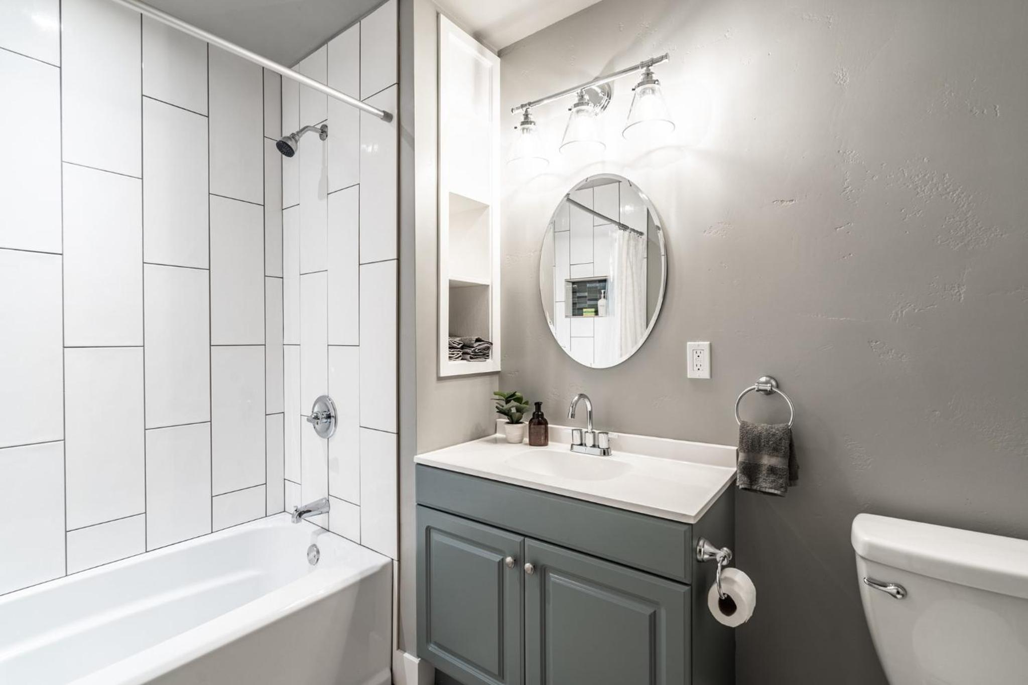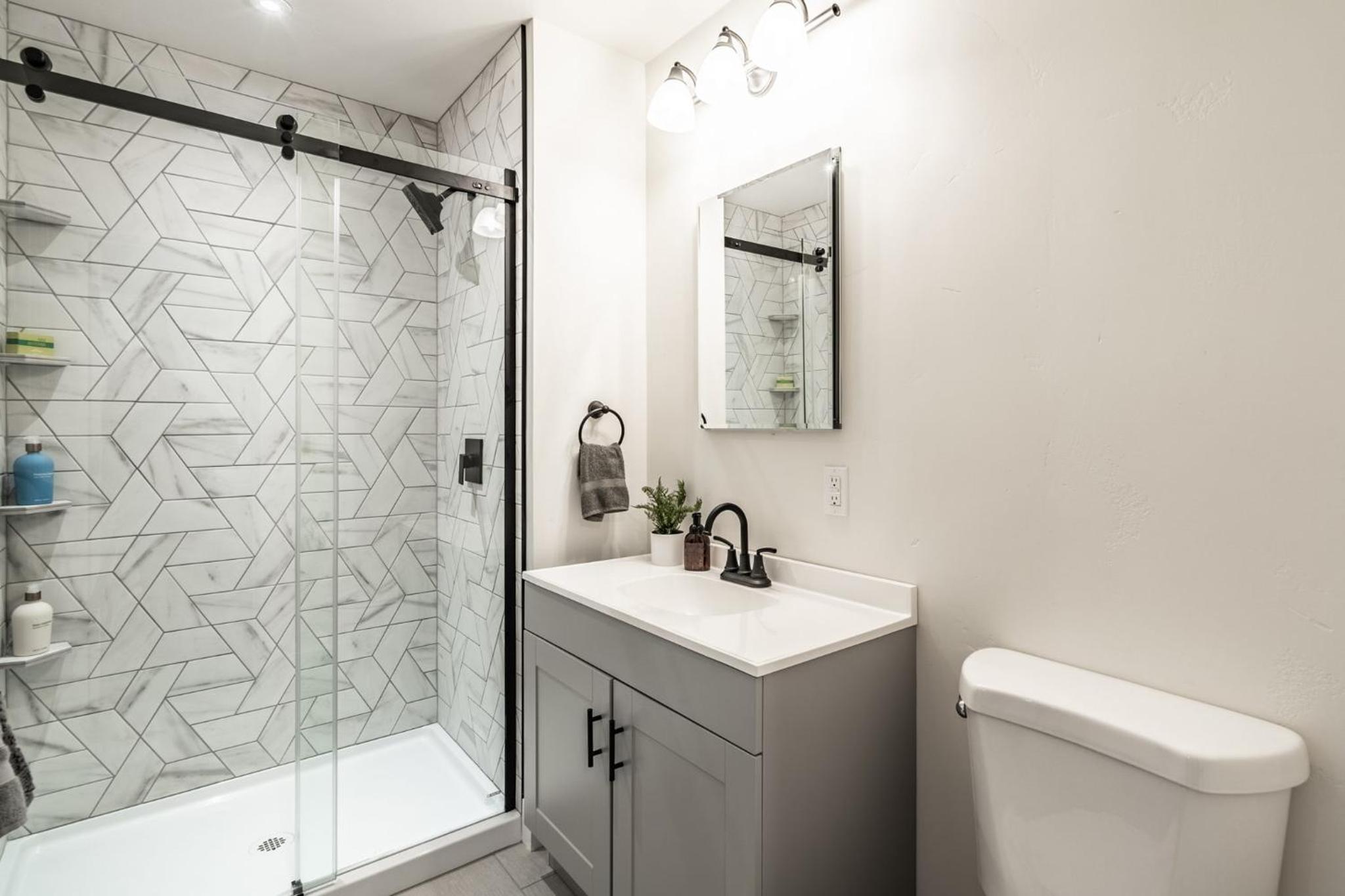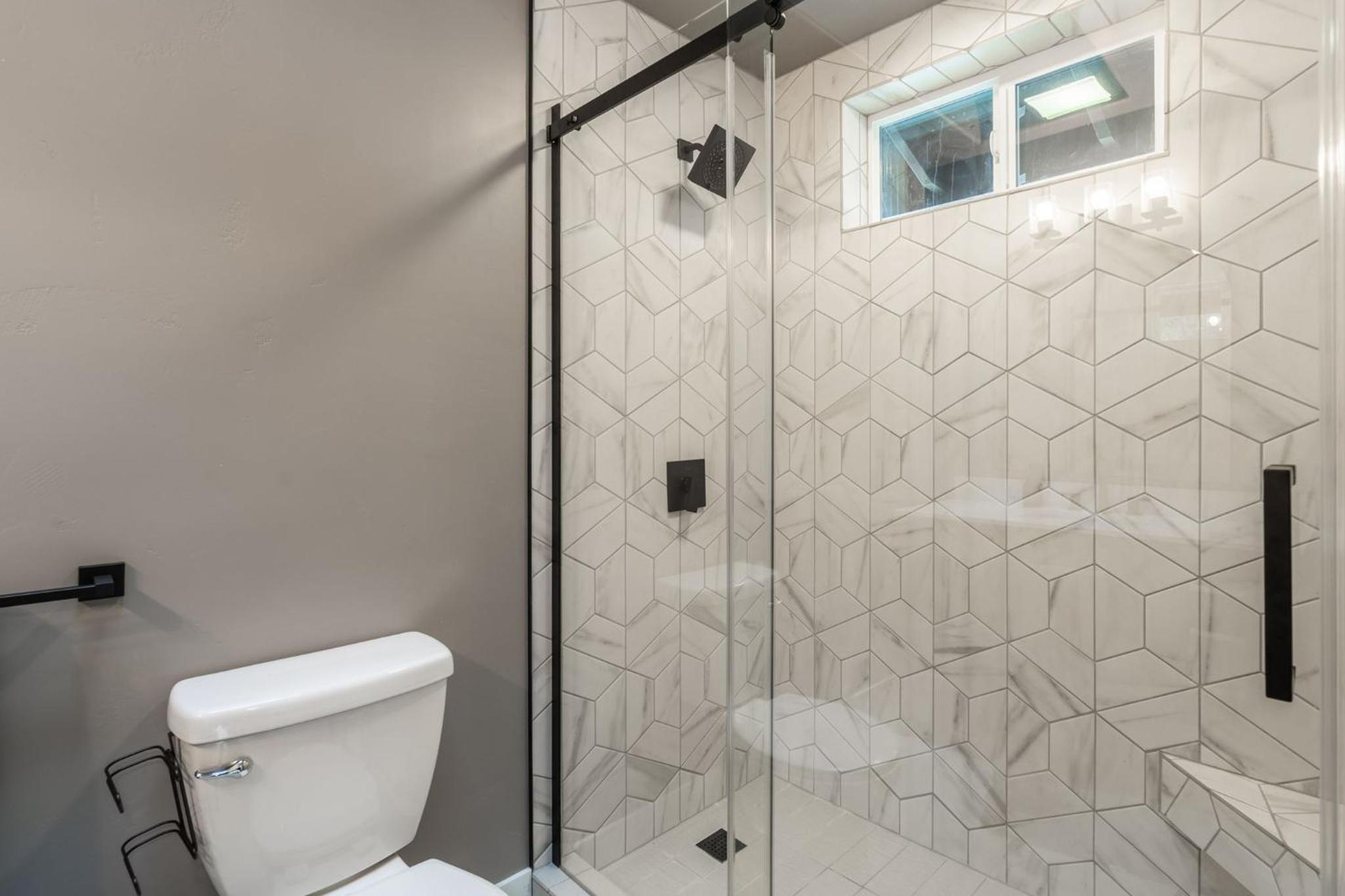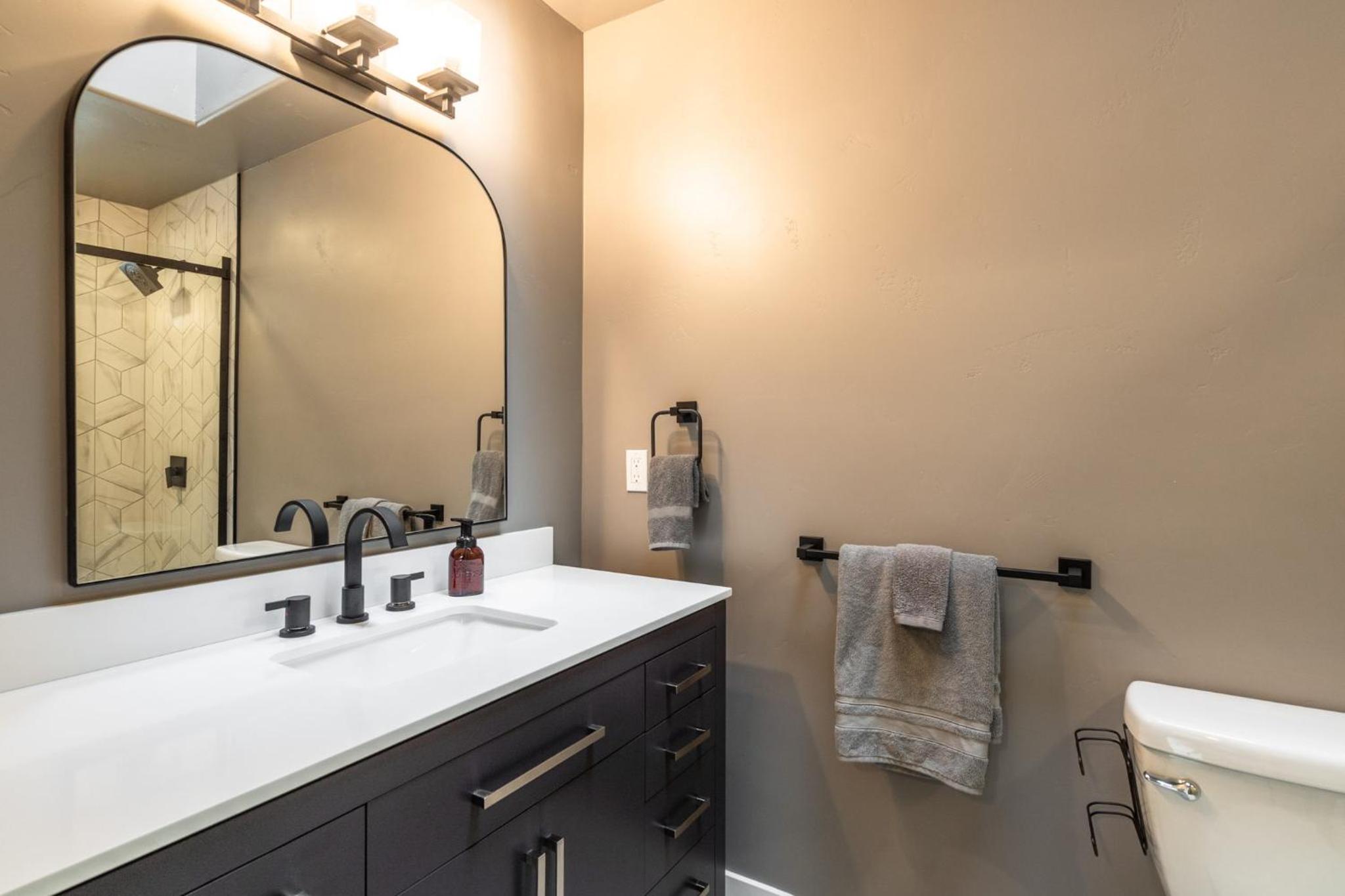 Personalized Comfort: Relax in the shower or dressing room, and rest easy with complimentary bed linen and towels provided. Experience tranquility and convenience at Ponderosa Lodge in Bend.