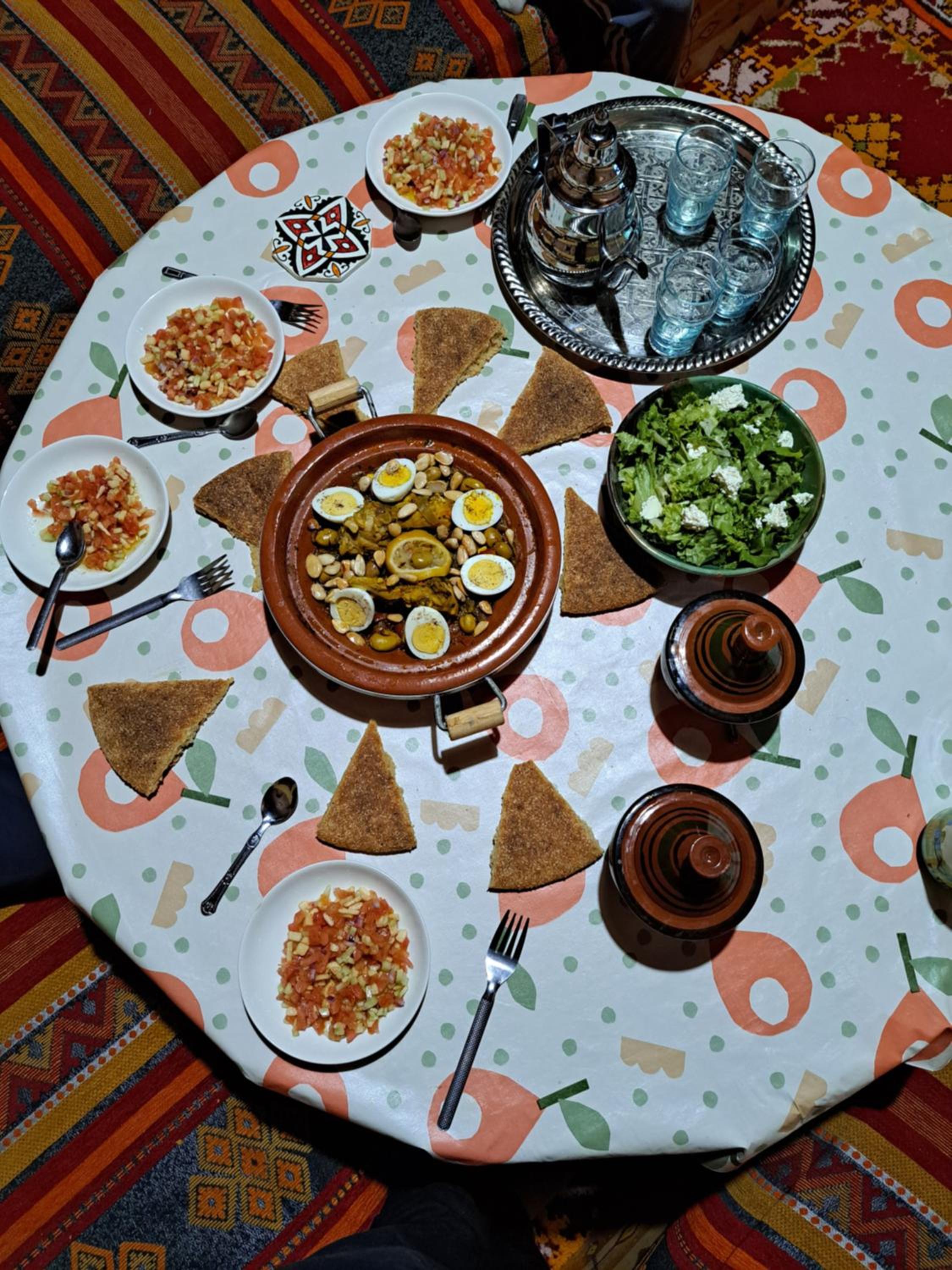 Wir haben für 4 Stck 3 Gänge Menü gerade einmal 40 Euro bezahlt. ( Salat - Tajine - Obstsalat - Getränke).