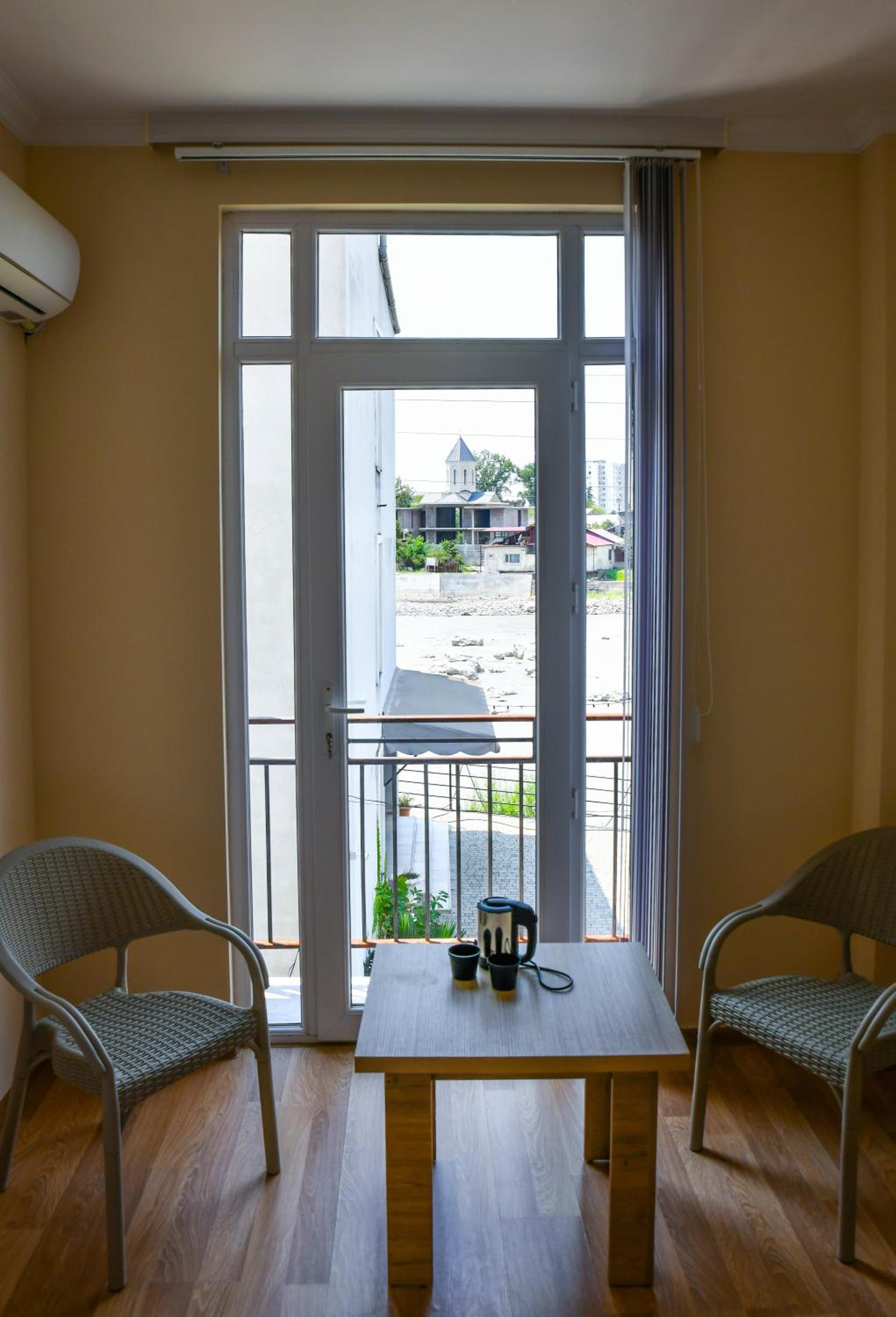 Enjoy breathtaking mountain and city views from the comfort of your room's private balcony at Just Inn Kutaisi.