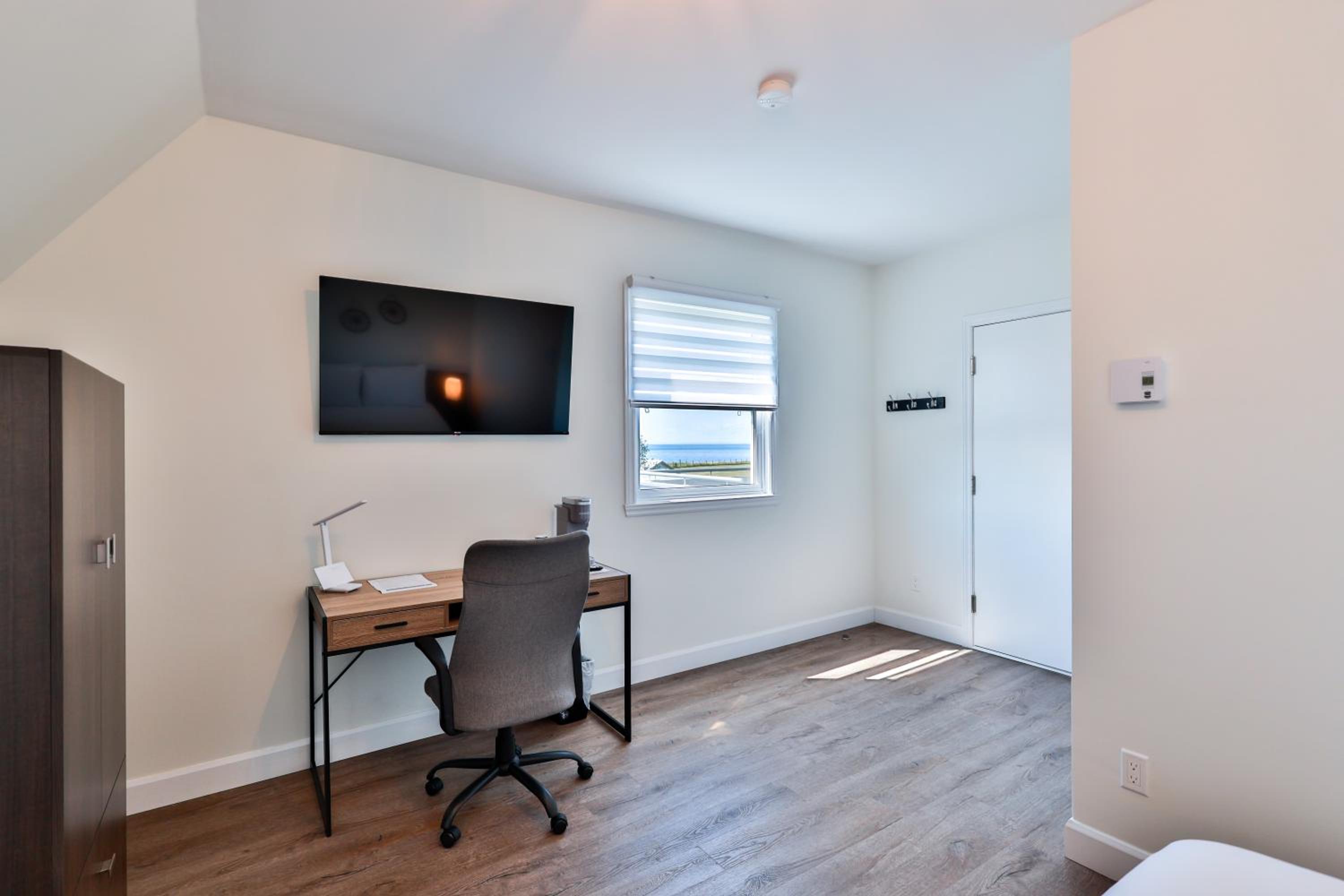 La propreté d'une chambre fraîchement rénovée. La vue sur le bord de mer et la possibilité de s'y rendre.