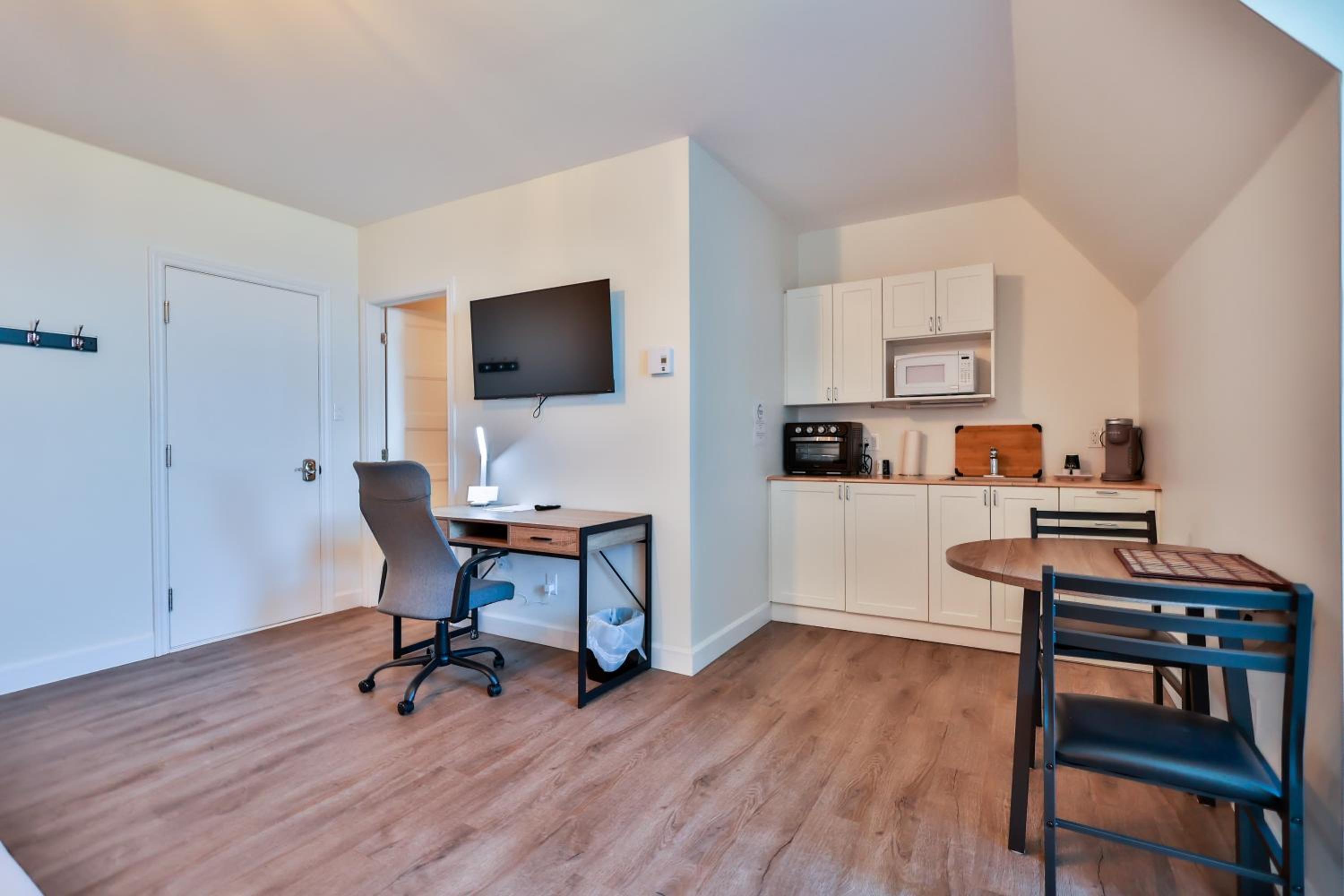 La kitchenette n’a pas de plaque cuisson, cela nous a manqué. Le sol n’était pas d’une propriété irréprochable…