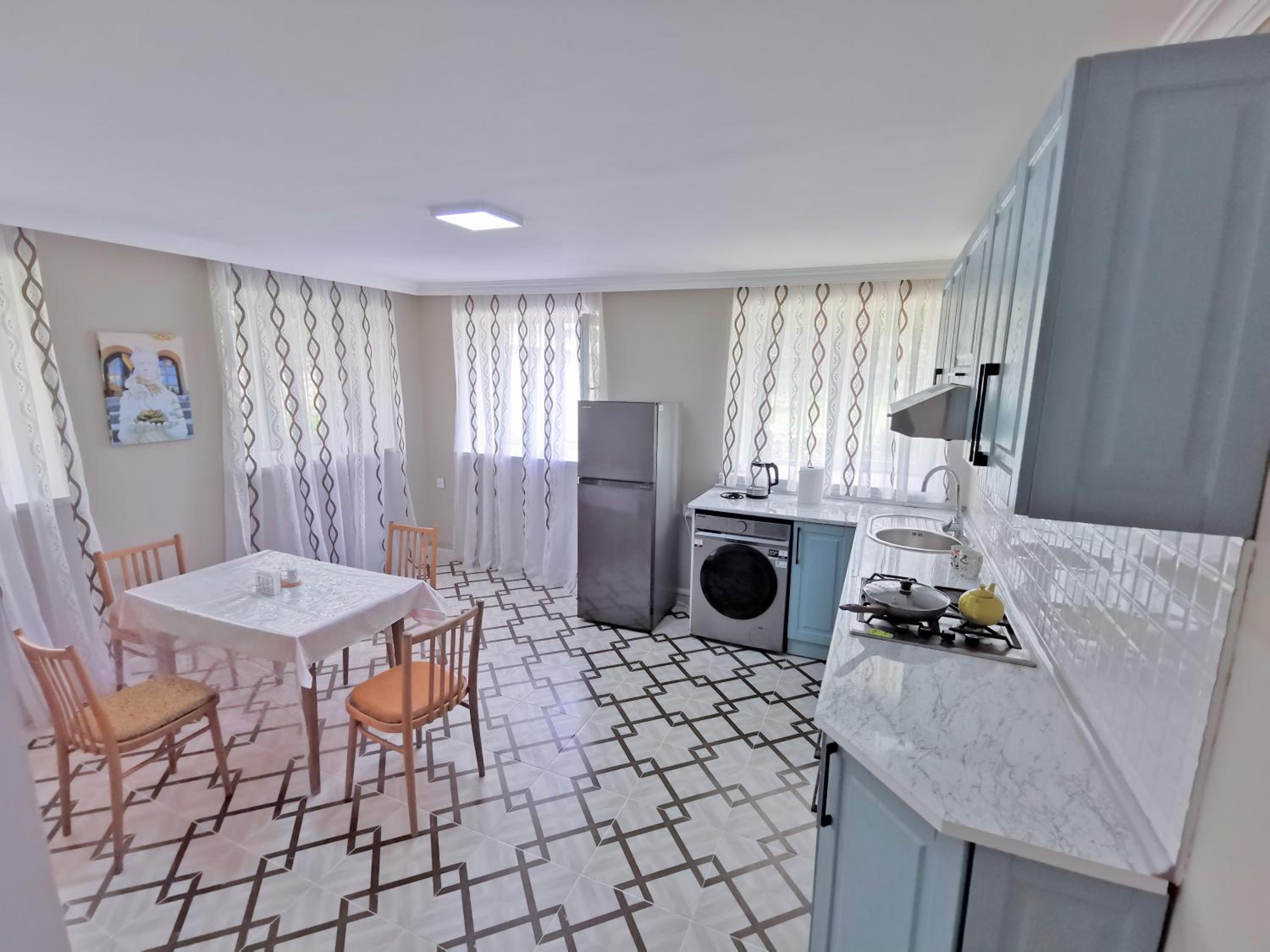 The place was exceptionally clean. There was a kitchen, utensils and dishes were provided. Owner and family are very attentive and welcoming. The location is not immediately in the city center, but we liked it as it is quiet, yet it would take us about 10 minutes by car to Gabala cable and 2-3 minutes to the nearest supermarket.