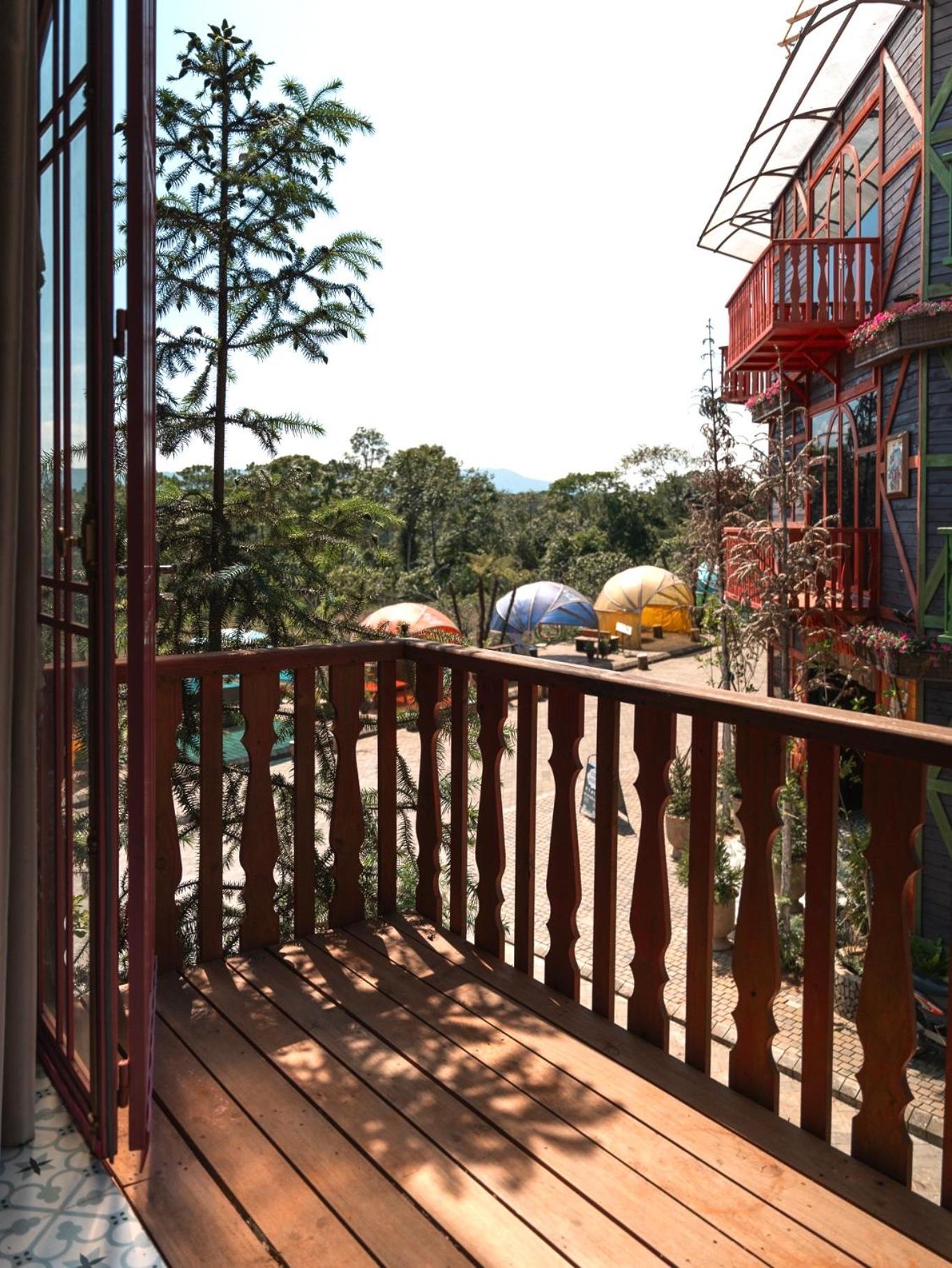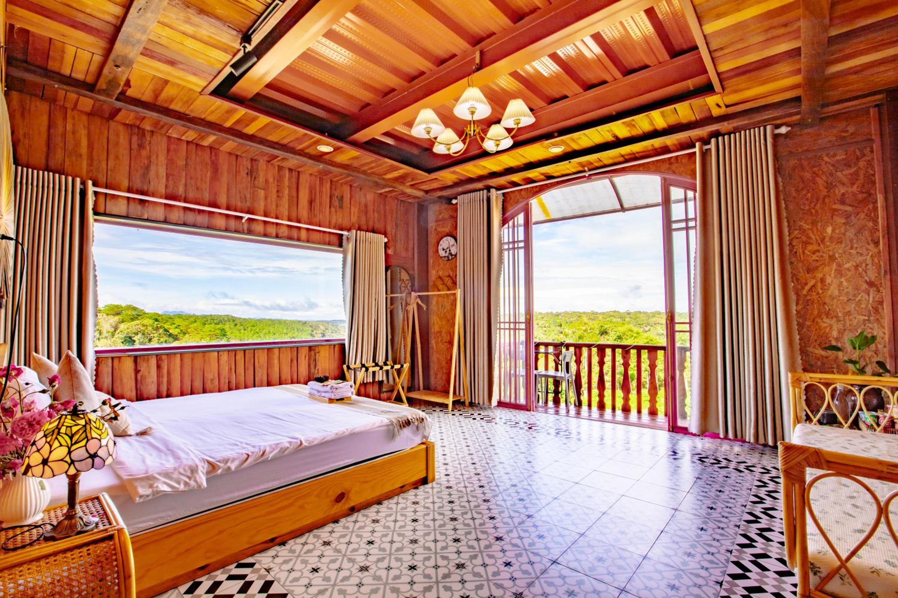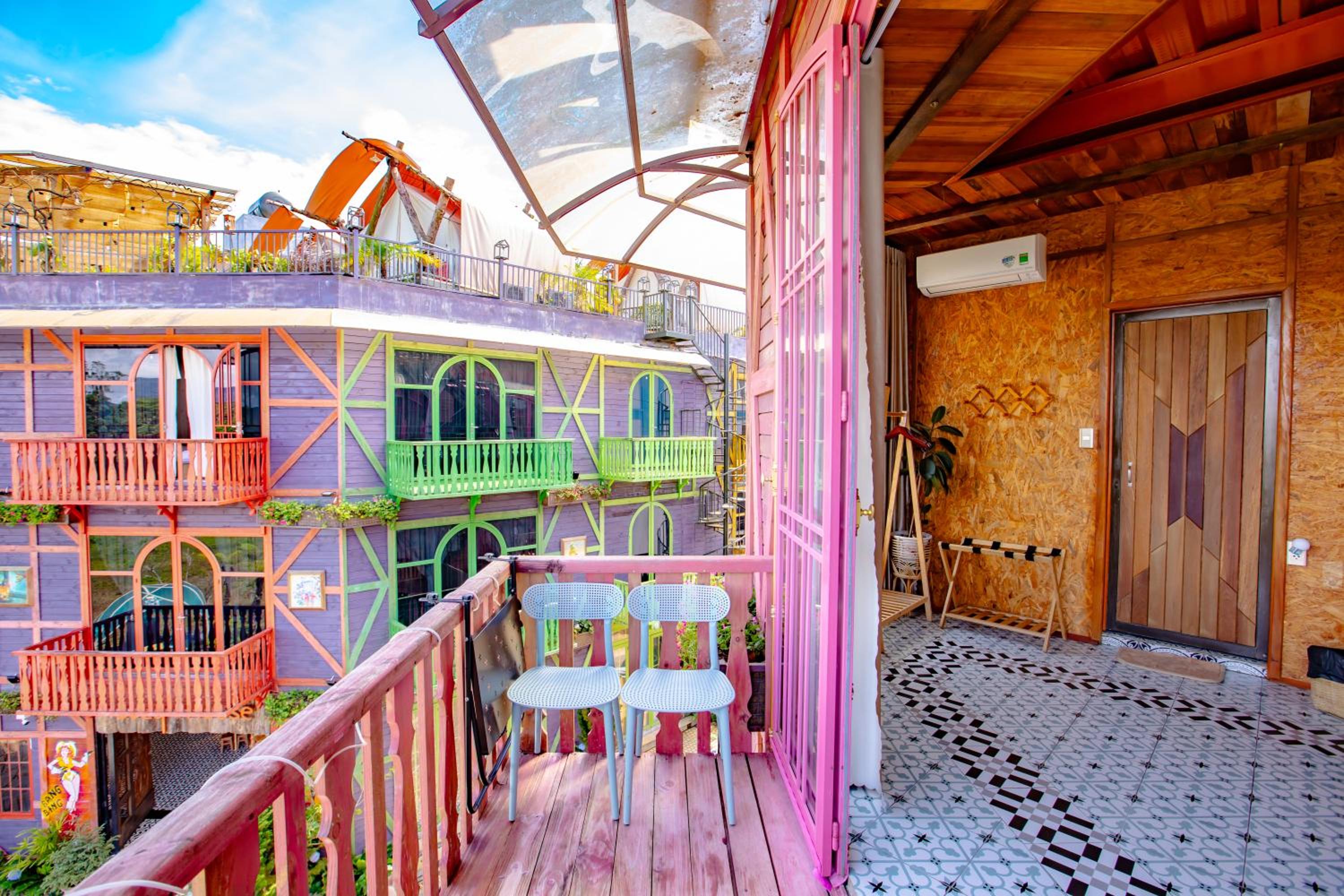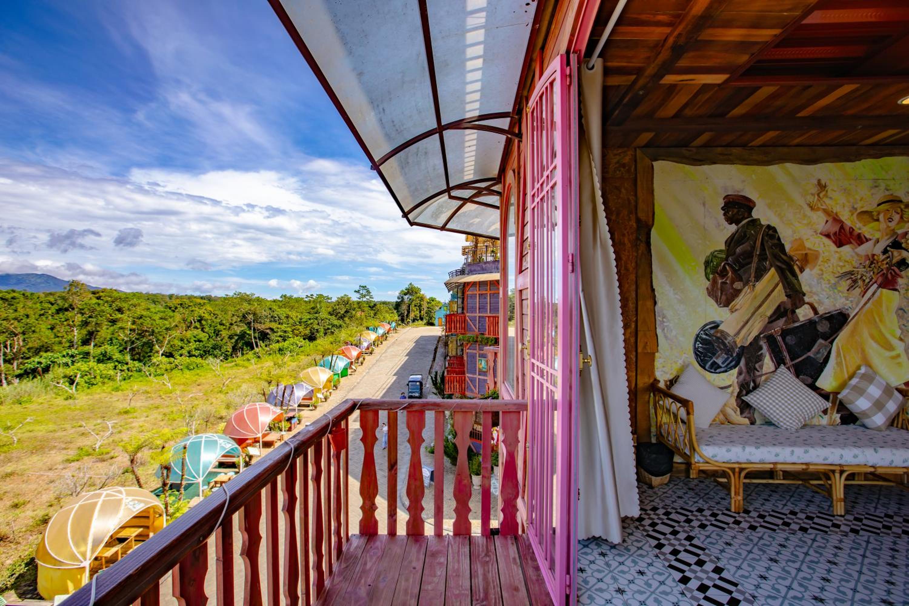 Enjoy breathtaking mountain and city views from your private balcony at Auguri Homestay Mang Den.