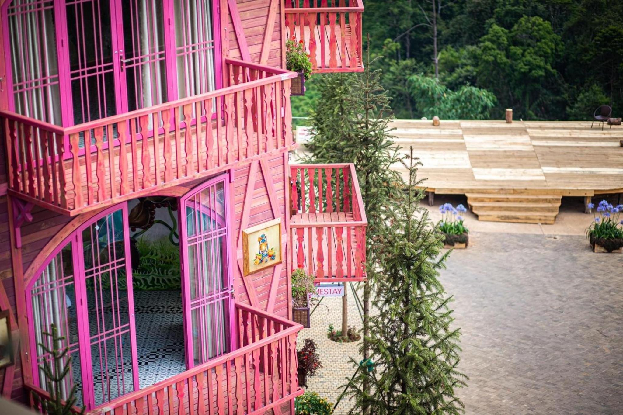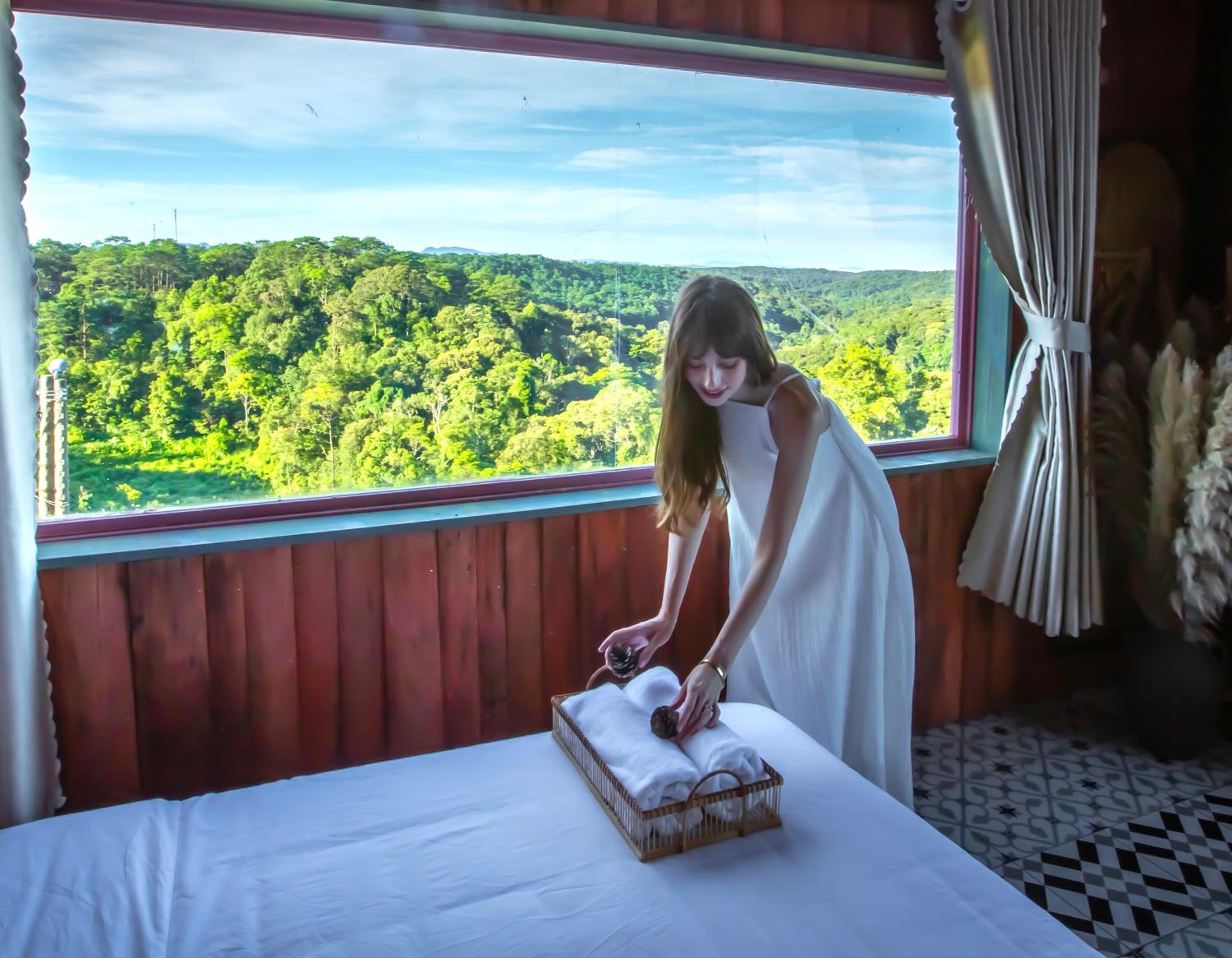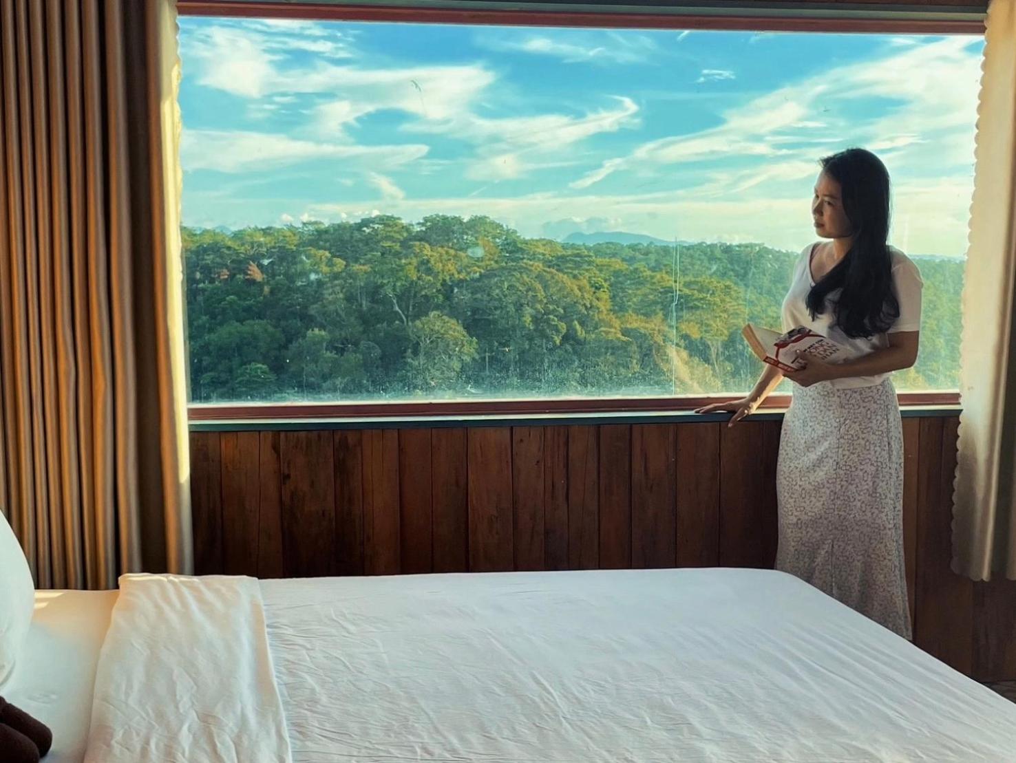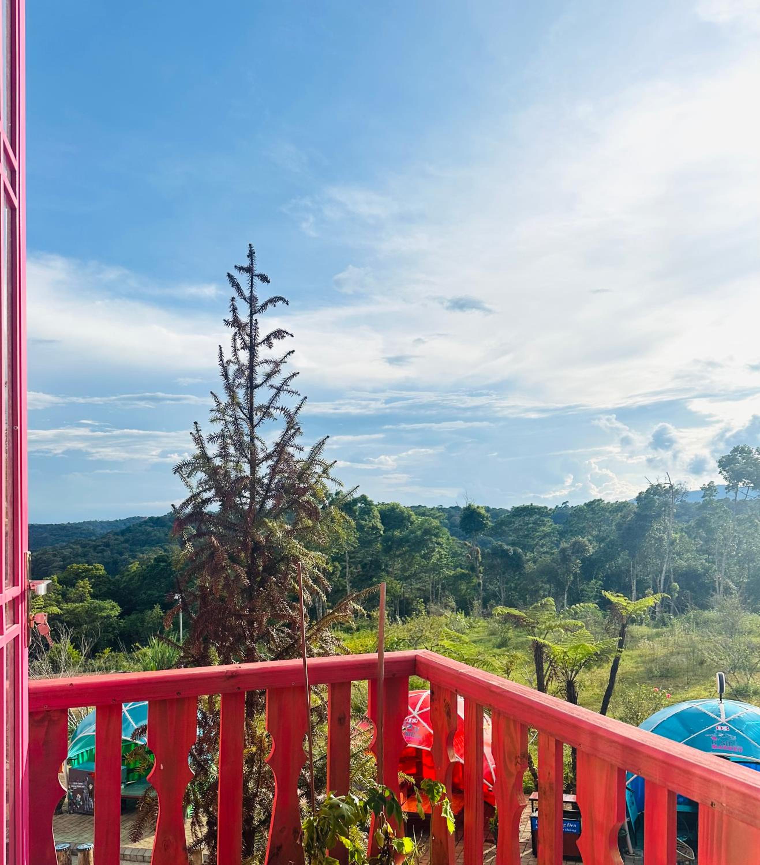 Enjoy breathtaking mountain and city views from your private balcony at Auguri Homestay Mang Den.