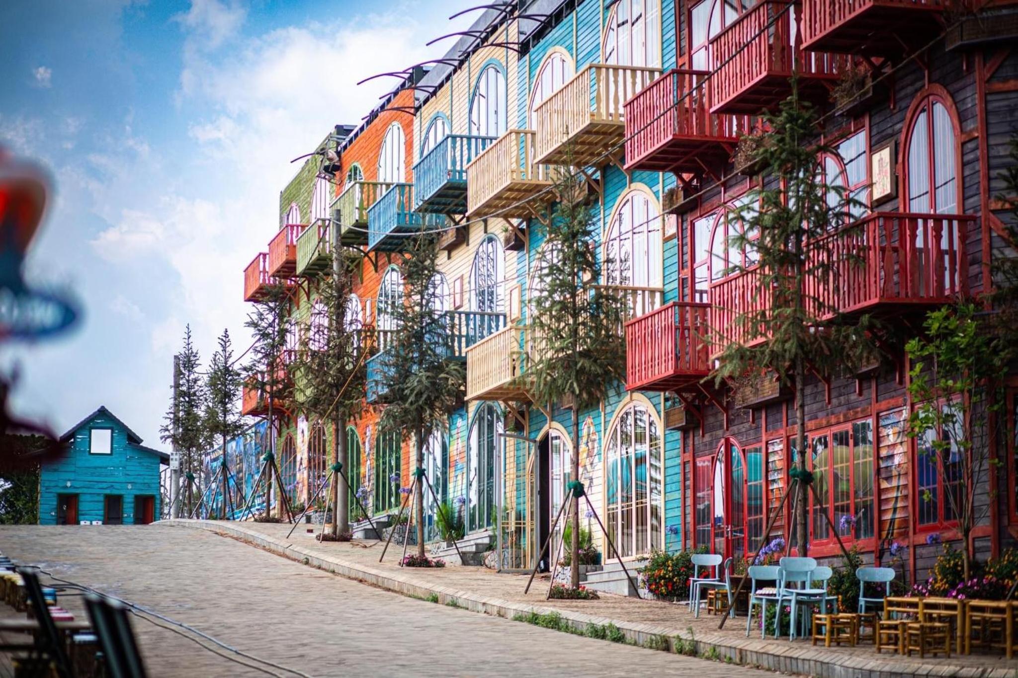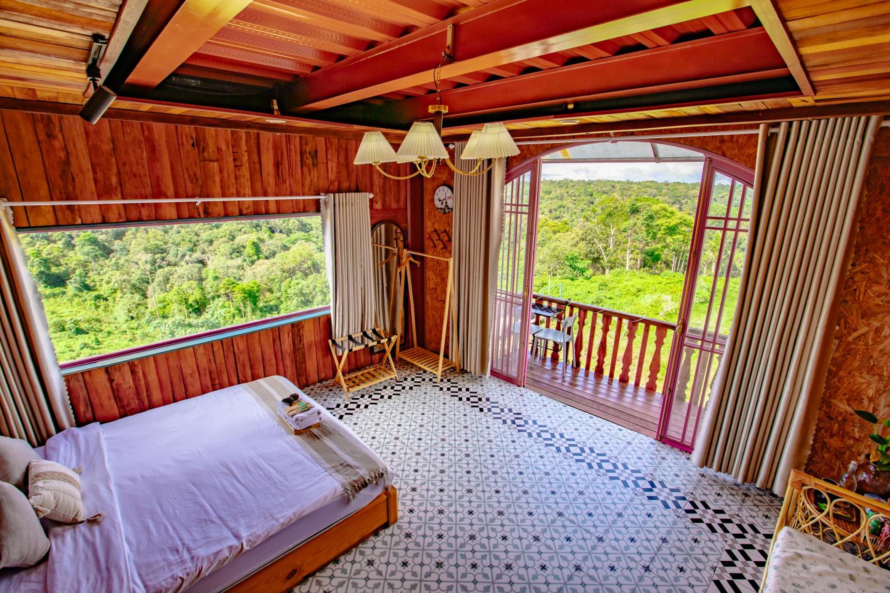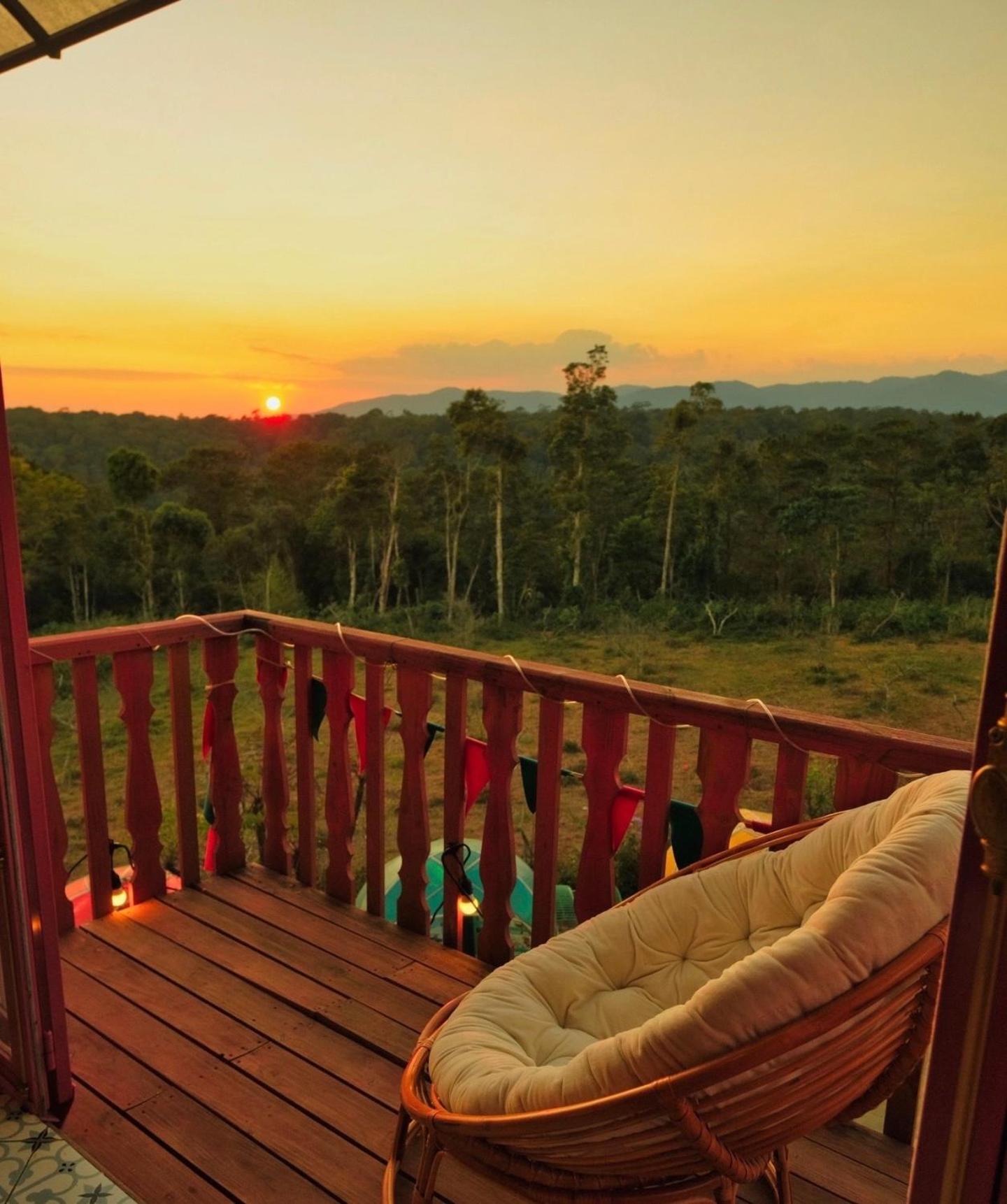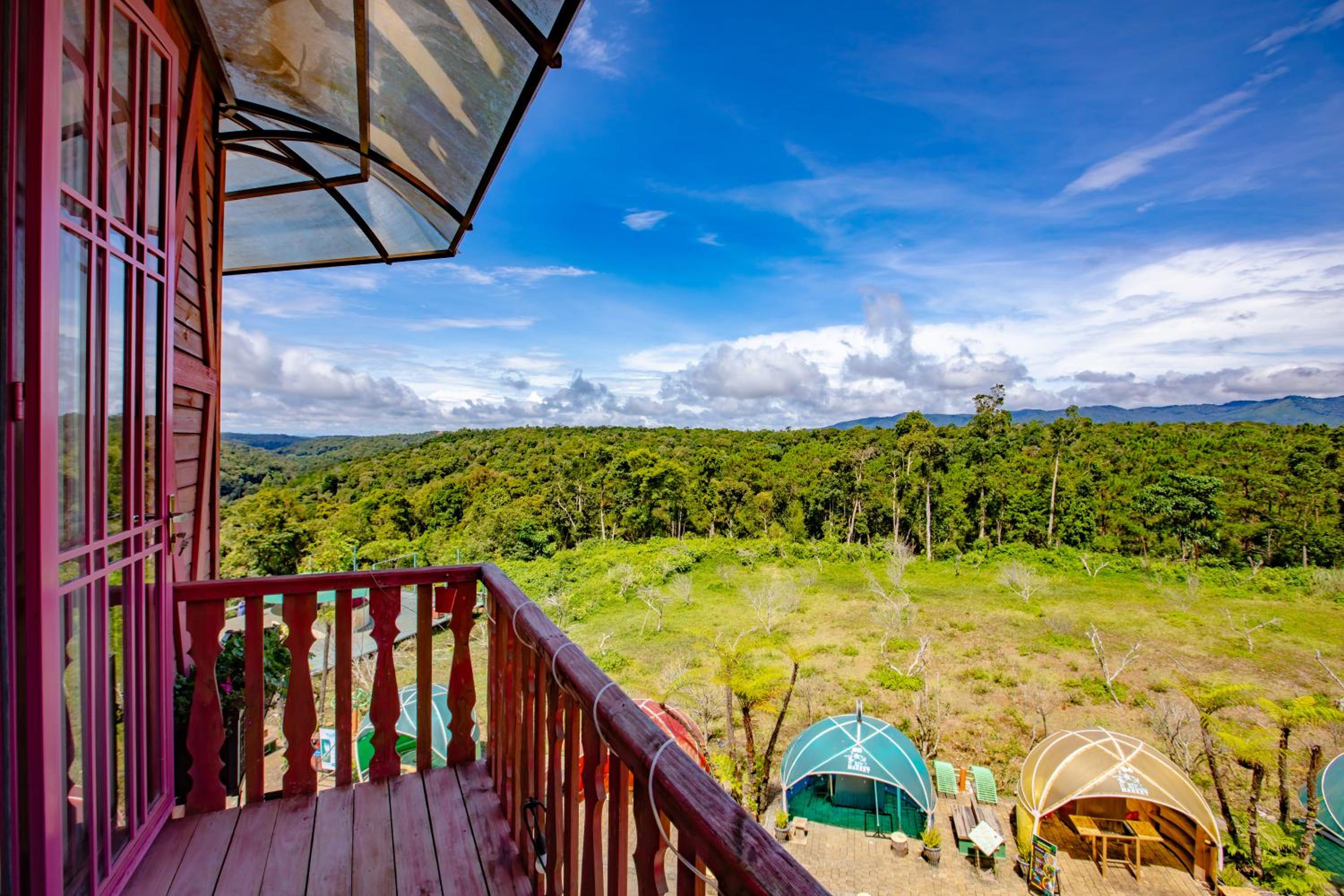 Enjoy breathtaking mountain and city views from your private balcony at Auguri Homestay Mang Den.