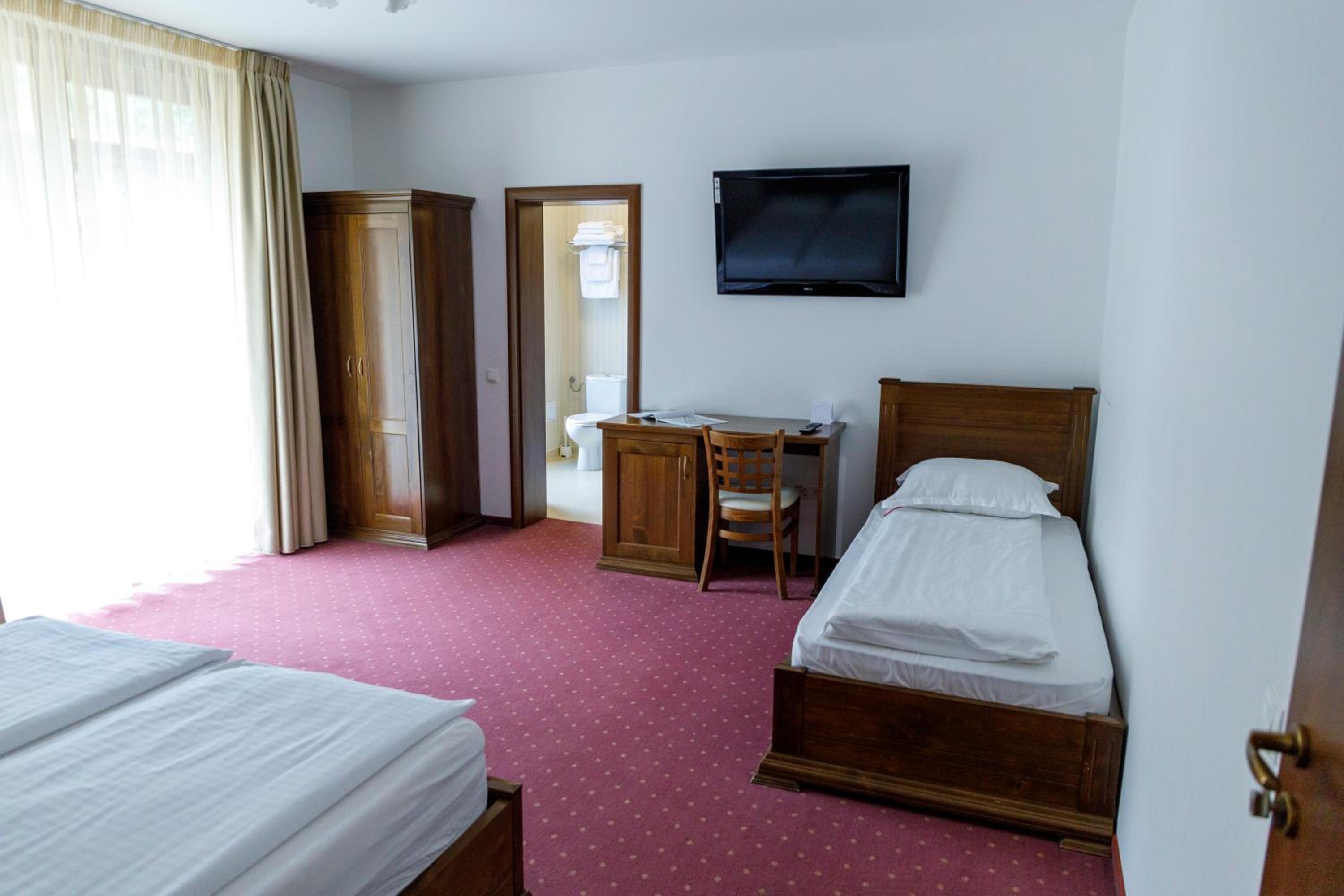 Each room at our 3-star hotel is thoughtfully equipped with a desk, balcony overlooking the city, and modern amenities like a flat-screen TV and coffee machine. Relax in comfort with plush bedding and a private bathroom.