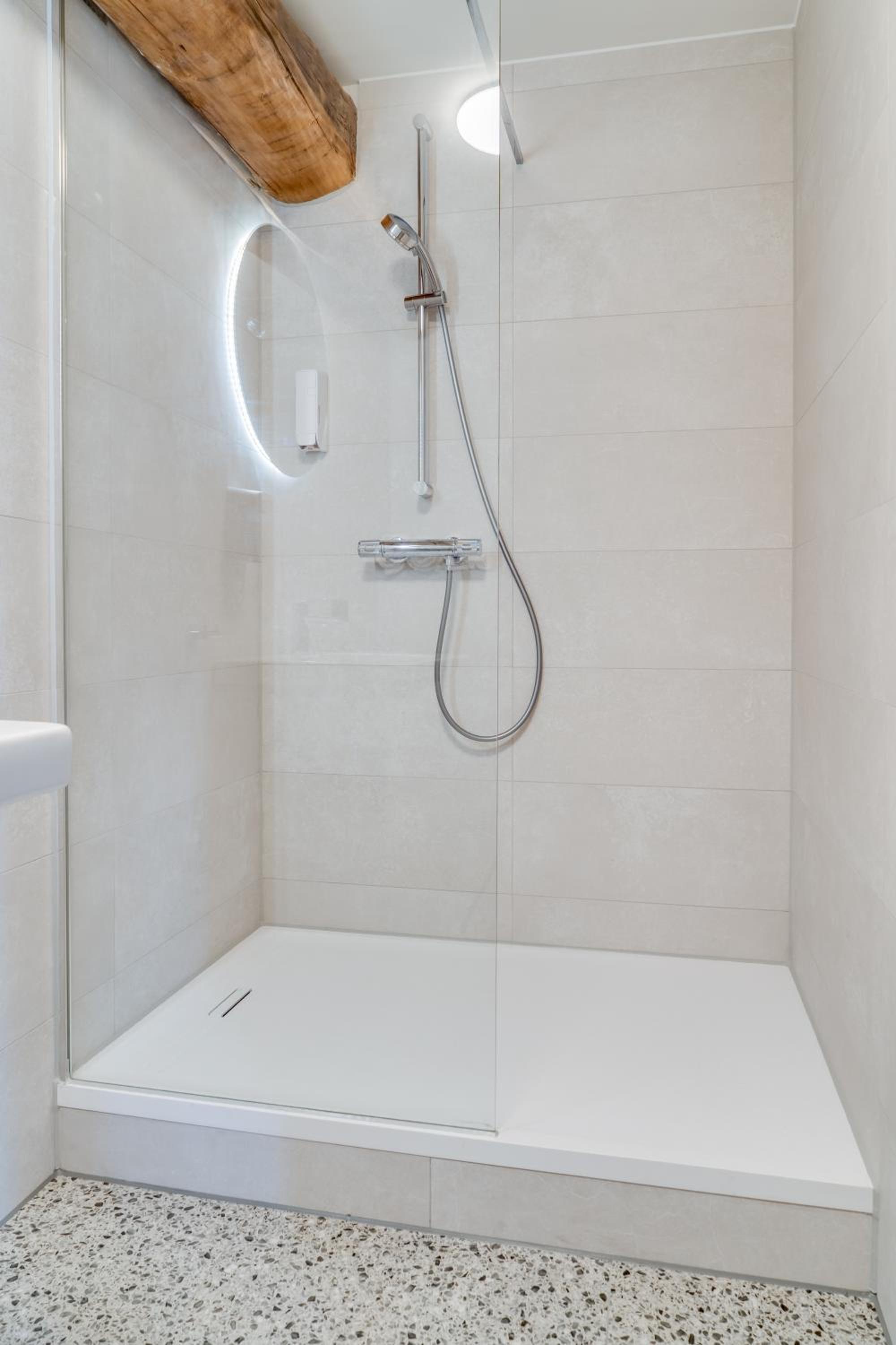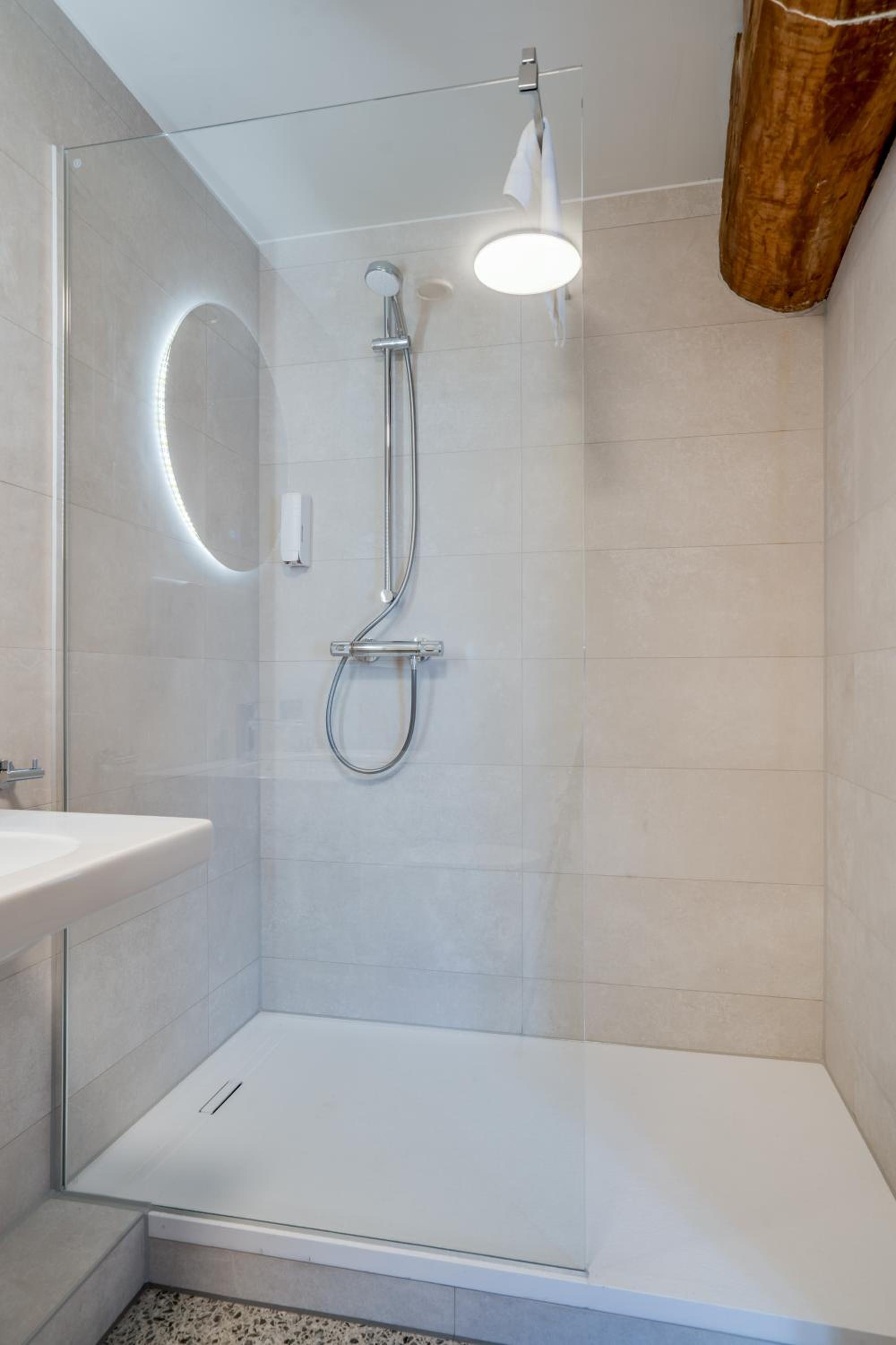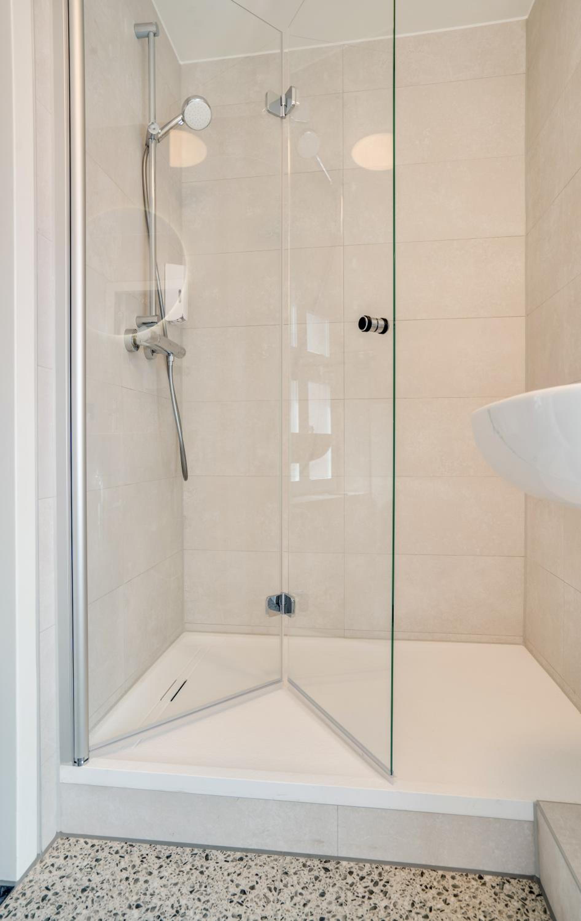 The only criticism was the shower door seal was a little worn and so the water did drain into the bathroom floor.