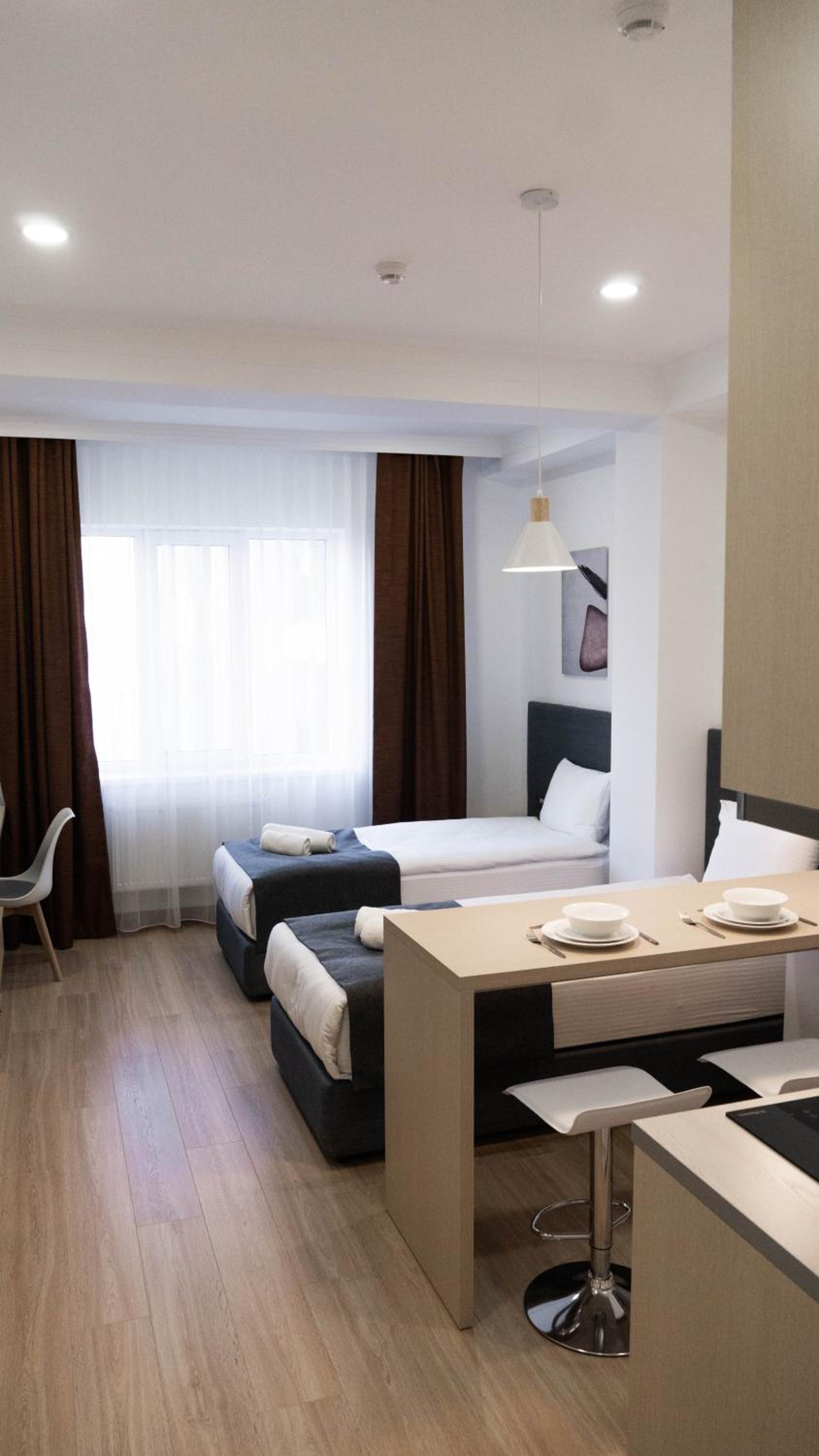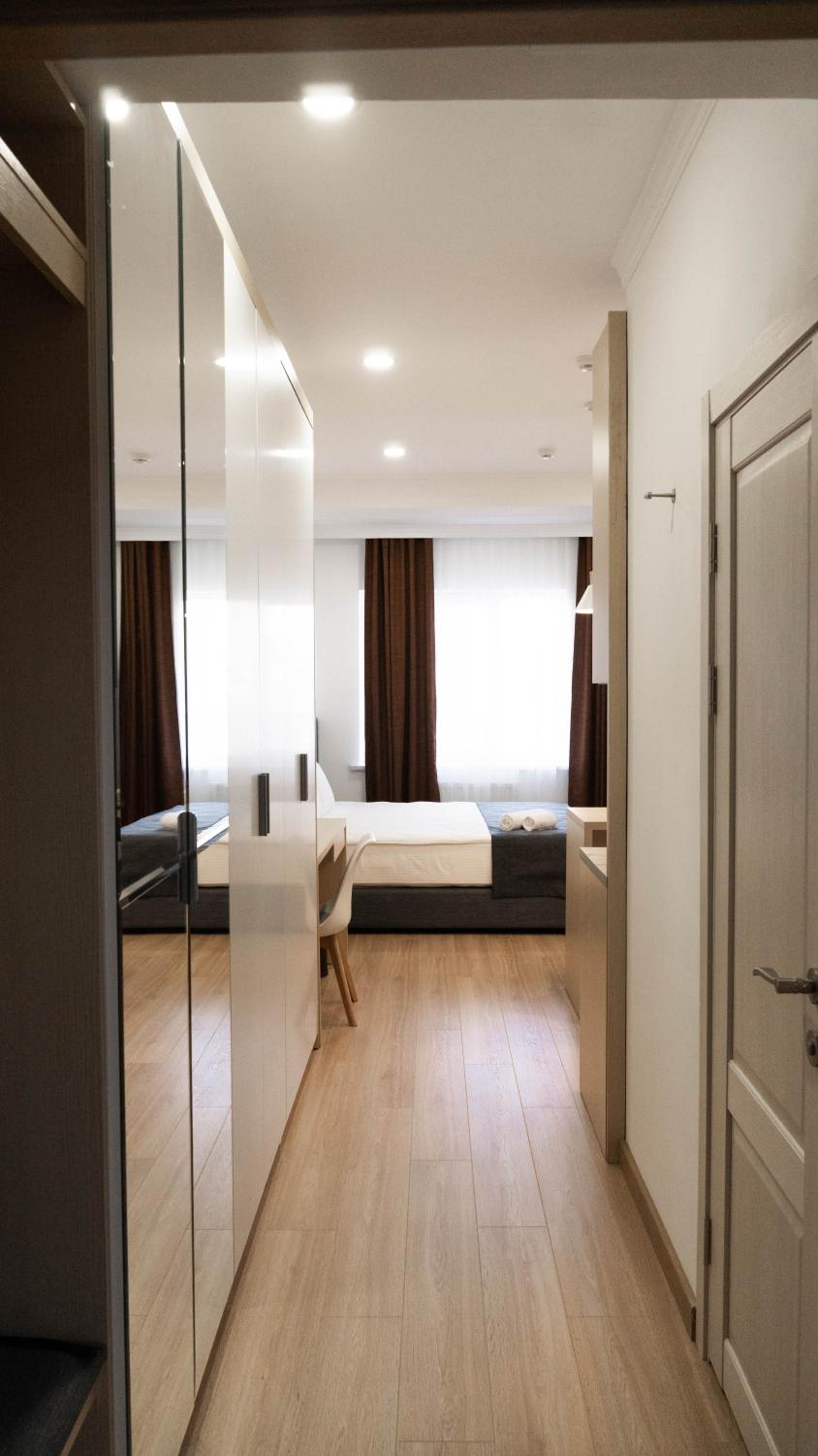 Мне понравилась забота девушки в ресепшн которая заселяла меня. Как раз таки, в тот вечнр там остановилась шумная компания. Она сама позаботилась и поменяла мне номер, чтобы никто не беспокоил меня. Сам отель чистыц, новый, красивый. Комната большая, все принадлежности все было там. Спасибо большое!