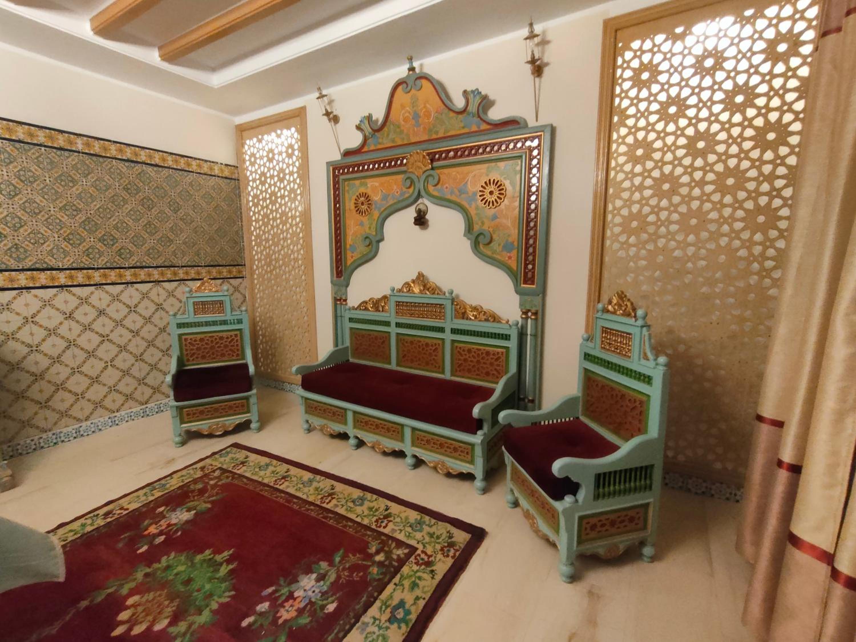 We were so happy to find this lovely hotel! it is inside the medina walls, 50 feet from the free parking *find the restaurant El Brija - we ate there twice as it was so great) and it is physically across the street from the Grand Mosque. The decor is traditional and still has all modern conveniences. Even the darling doorknob to our room was super pretty (look closely, you will see the flowers). The gentleman that welcomed us was so gracious. He showed us the rooftop where it is lovely to enjoy a coffee and get the amazing view. Careful where you step as there is a cute turtle *about the size of a large grapefrutie) is roaming around up there, The host told me that the turtle is a beloved pet. I wish we had been able to spend more than one night, but it was a short stop on our trip.0