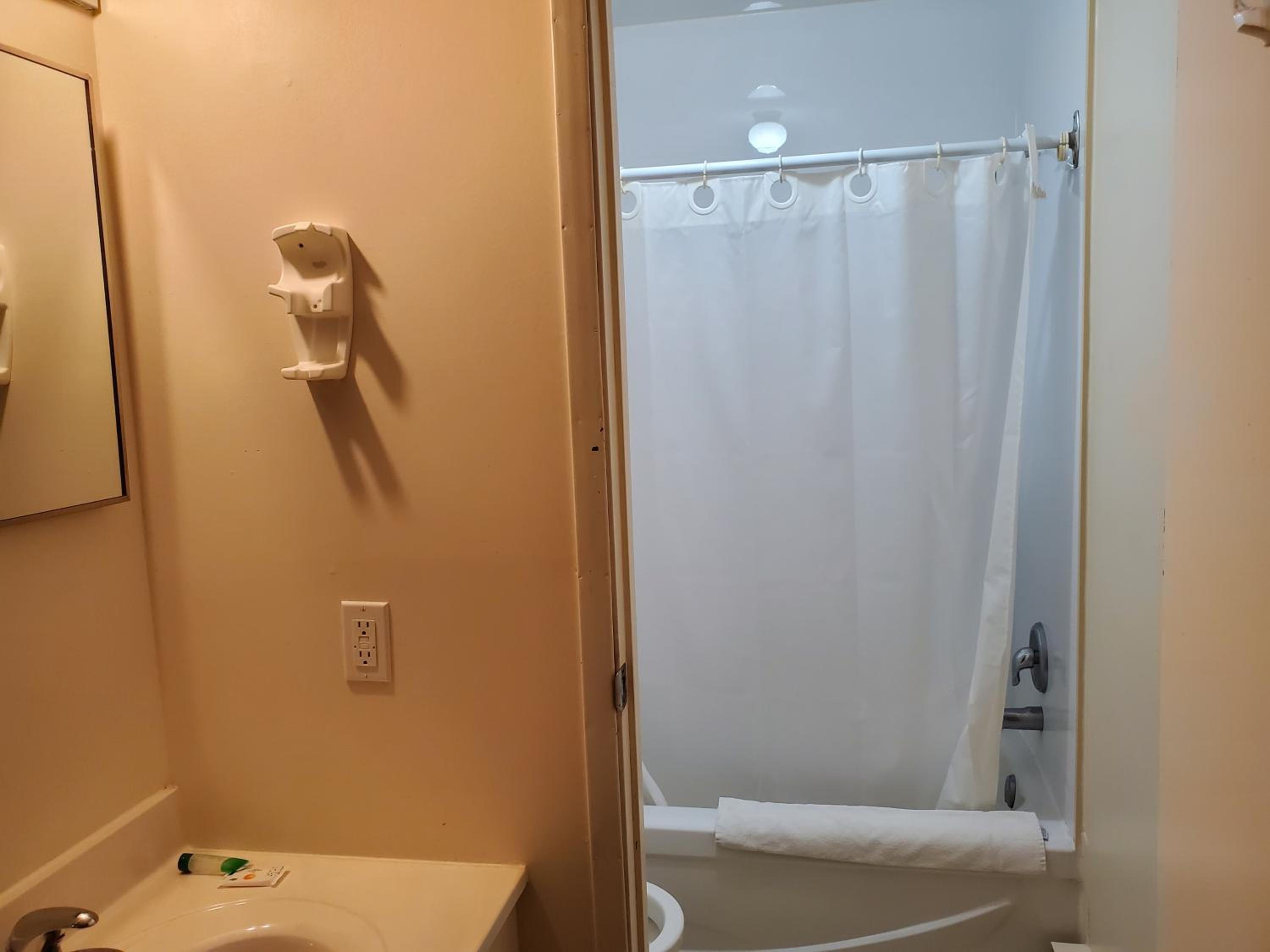 The motel smelled bad. The washroom was dirty, the shower curtain was filthy, we couldn't shower due to this reason.