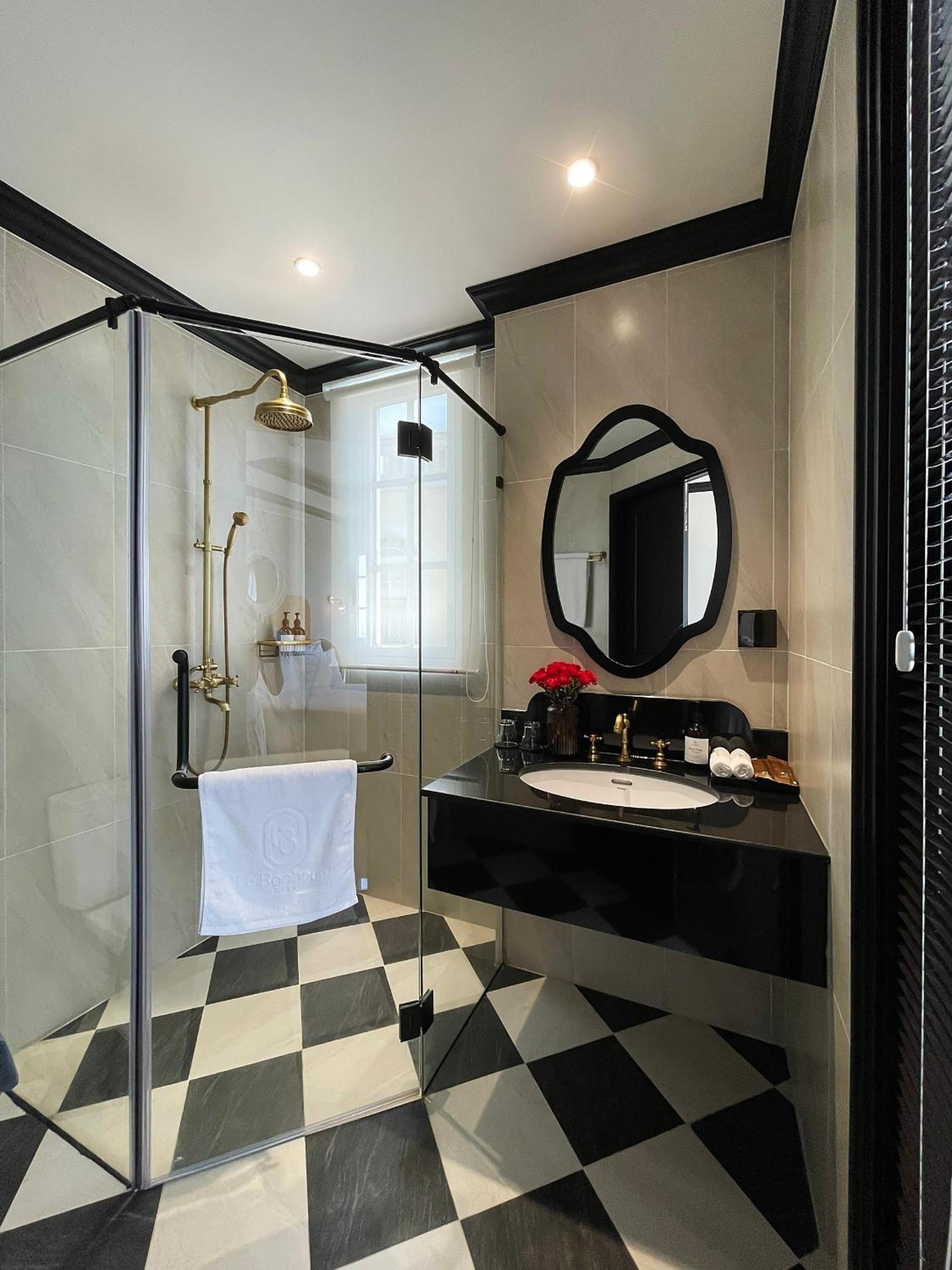 Each room at Le Bonheur Hotel is thoughtfully designed with a private bathroom, flat-screen TV, and air conditioning. Some rooms also feature a balcony for guests to relax and enjoy the surroundings.