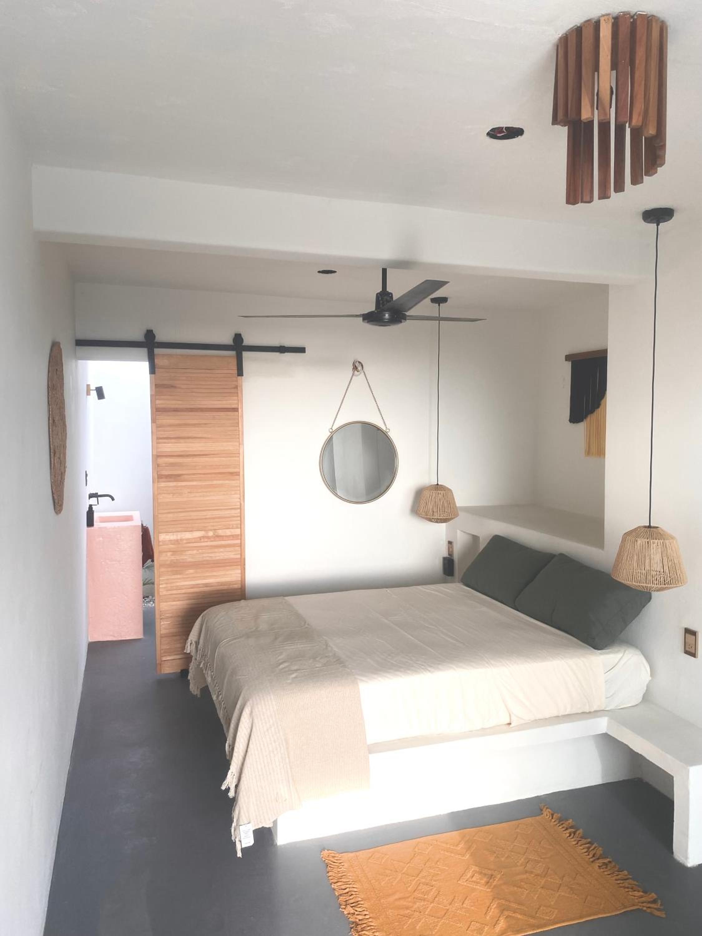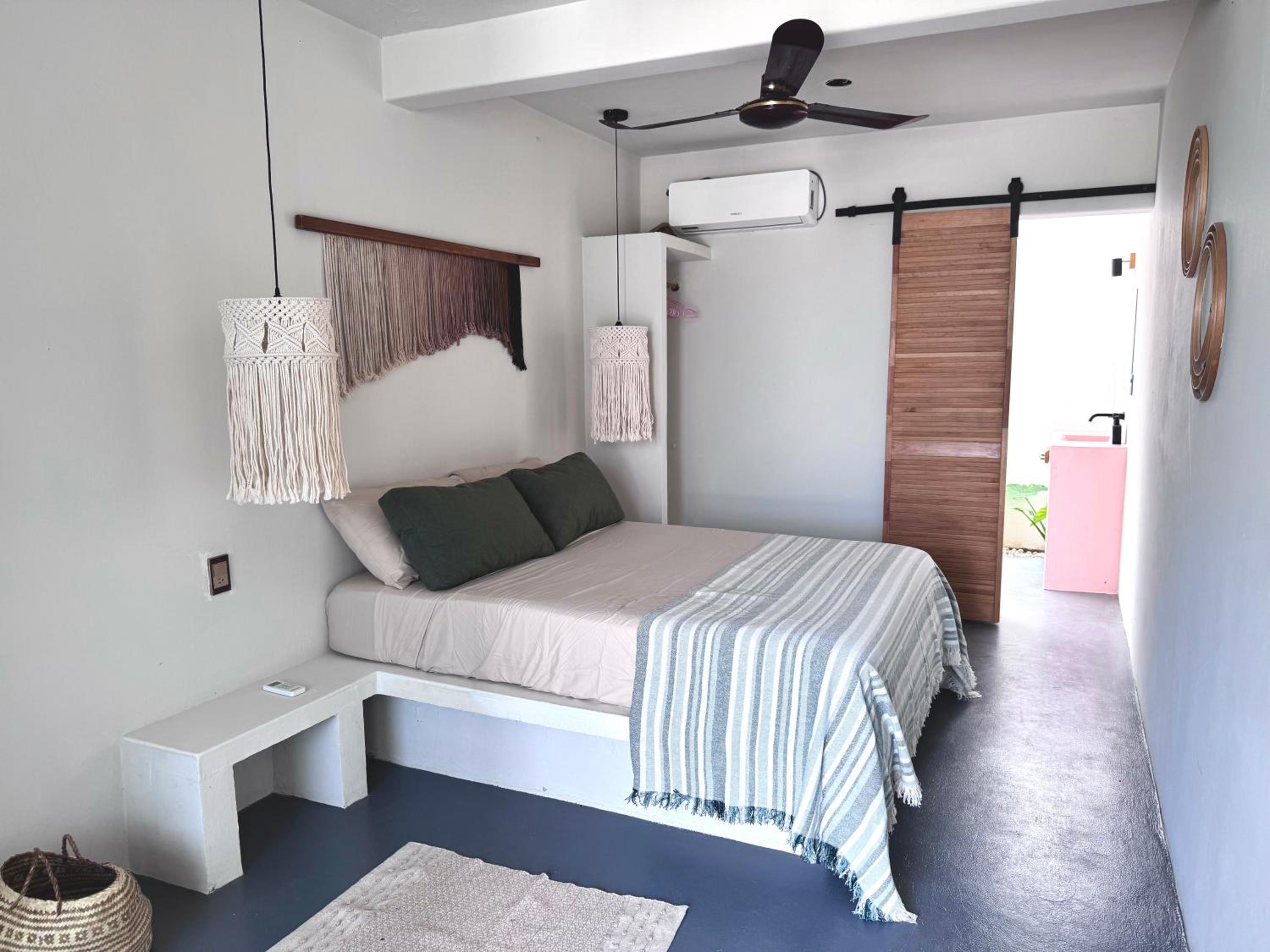 La cama es súper cómoda, disfrute mucho dormir, además de las toallas de baño hay asignadas 2 toallas que puedes llevar a la playa, una sombrilla y un par de abanicos los cuales en verdad ayudan bastante cuando visitas cualquiera de las playas.