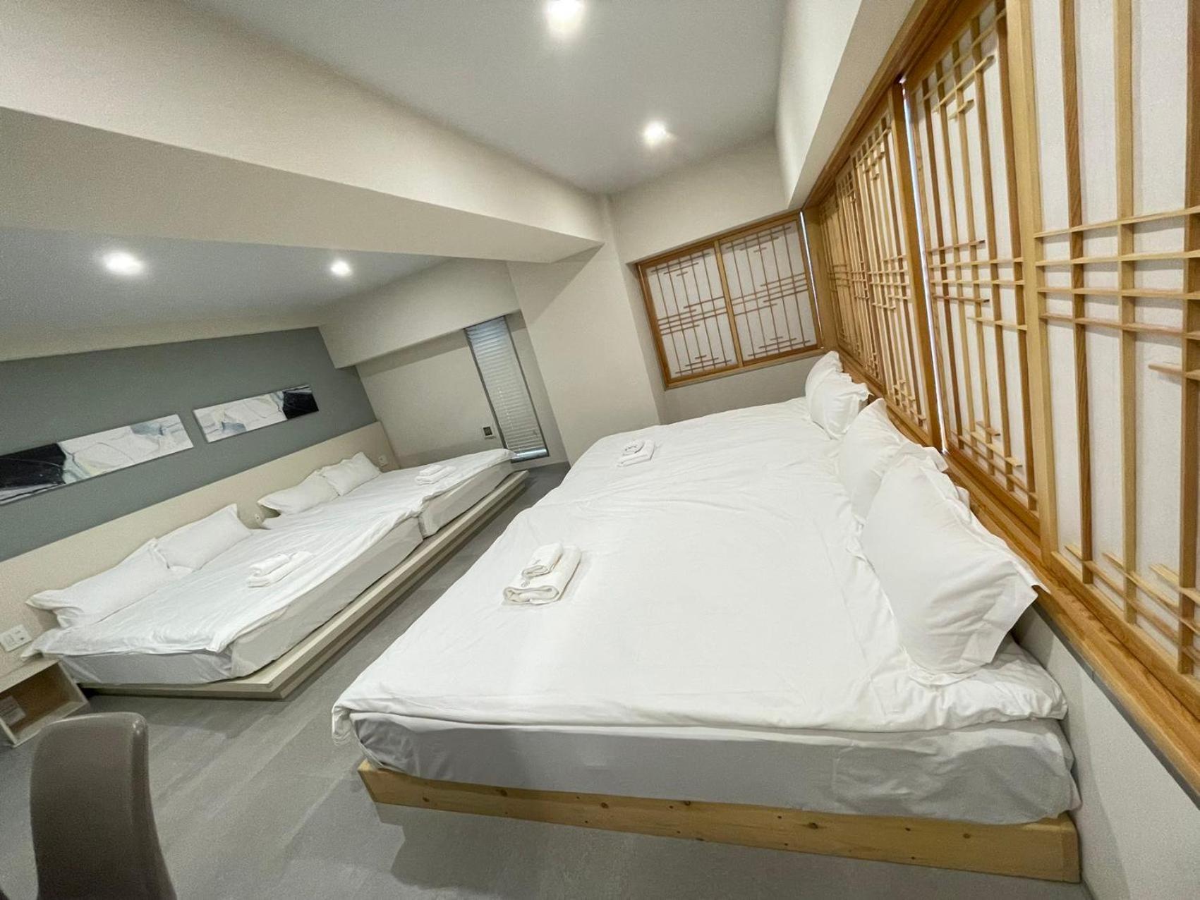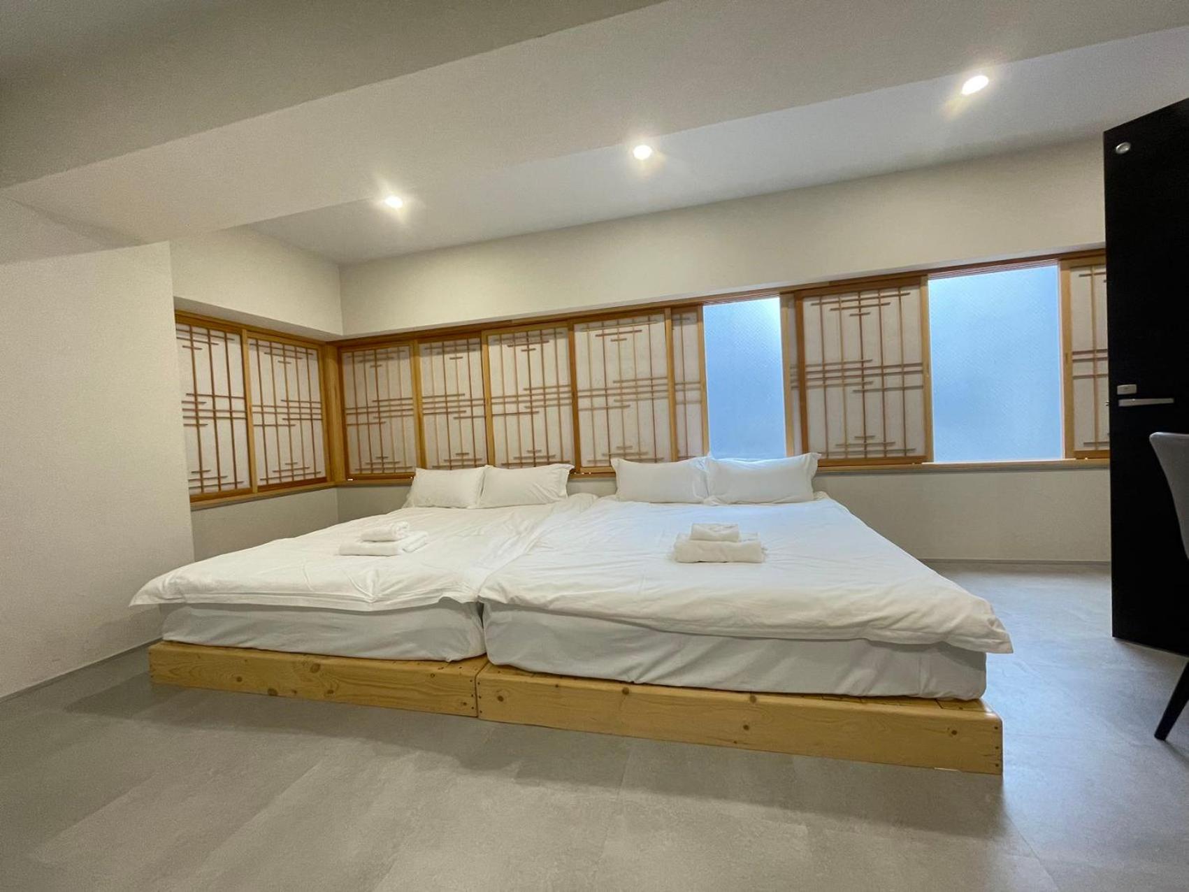 The room was spacious for our family of four. Having four double beds was a huge plus. The hotel is within easy walking distance to the train station.