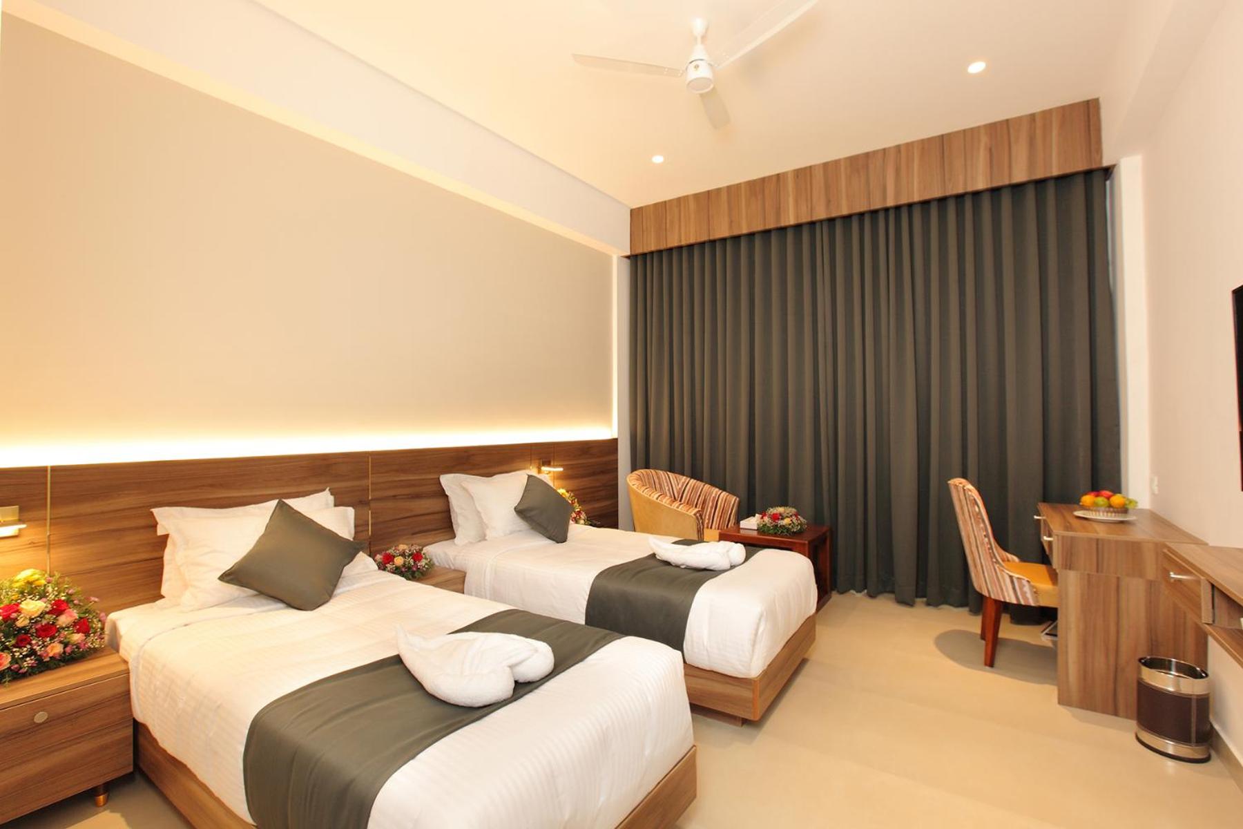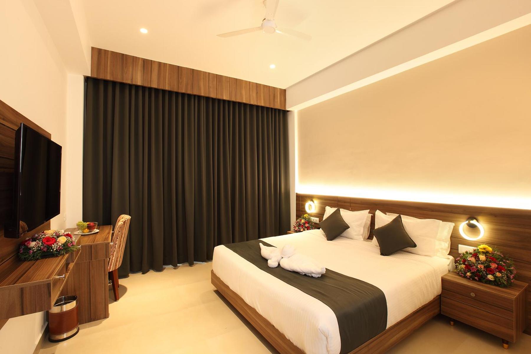 Luxurious Accommodation - HOTEL MARIA PARK, located in Mūvattupula, offers 4-star accommodation with well-equipped rooms including air conditioning, fridge, and flat-screen TV. Enjoy a comfortable stay with amenities like a minibar, coffee machine, and free toiletries.