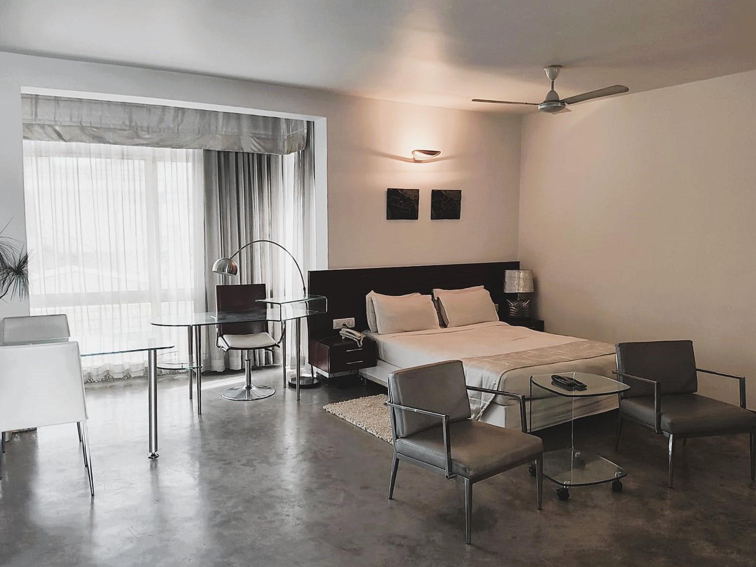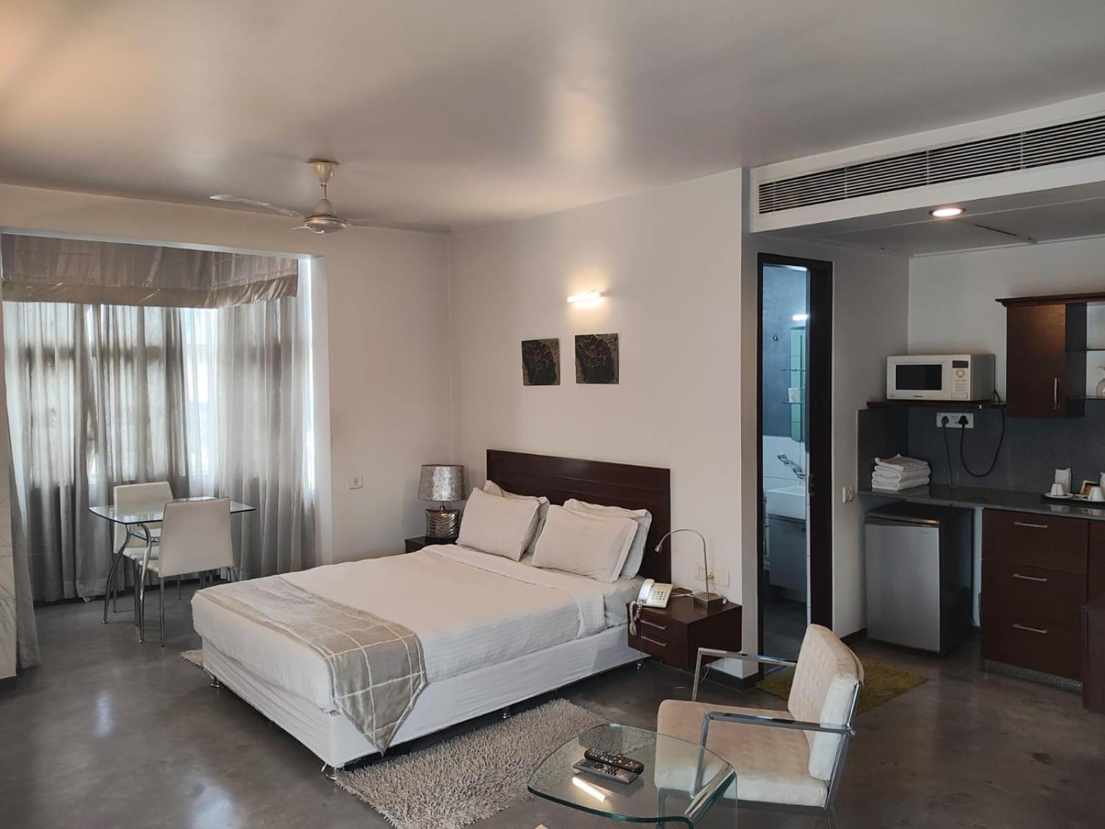 Super Hotel mit sehr nettem und aufmerksamen Personal und sehr guter Lage in Bengaluru. Das Zimmer war geräumig, hell und gut ausgestattet. In der Kitchenette gab es einen Kühlschrank, Wasserkocher, Mikrowelle, sowie Besteck und Geschirr. Die Lage in der Stadt ist super zentral und trotzdem ruhig. Werde ich auf jeden Fall wieder buchen!