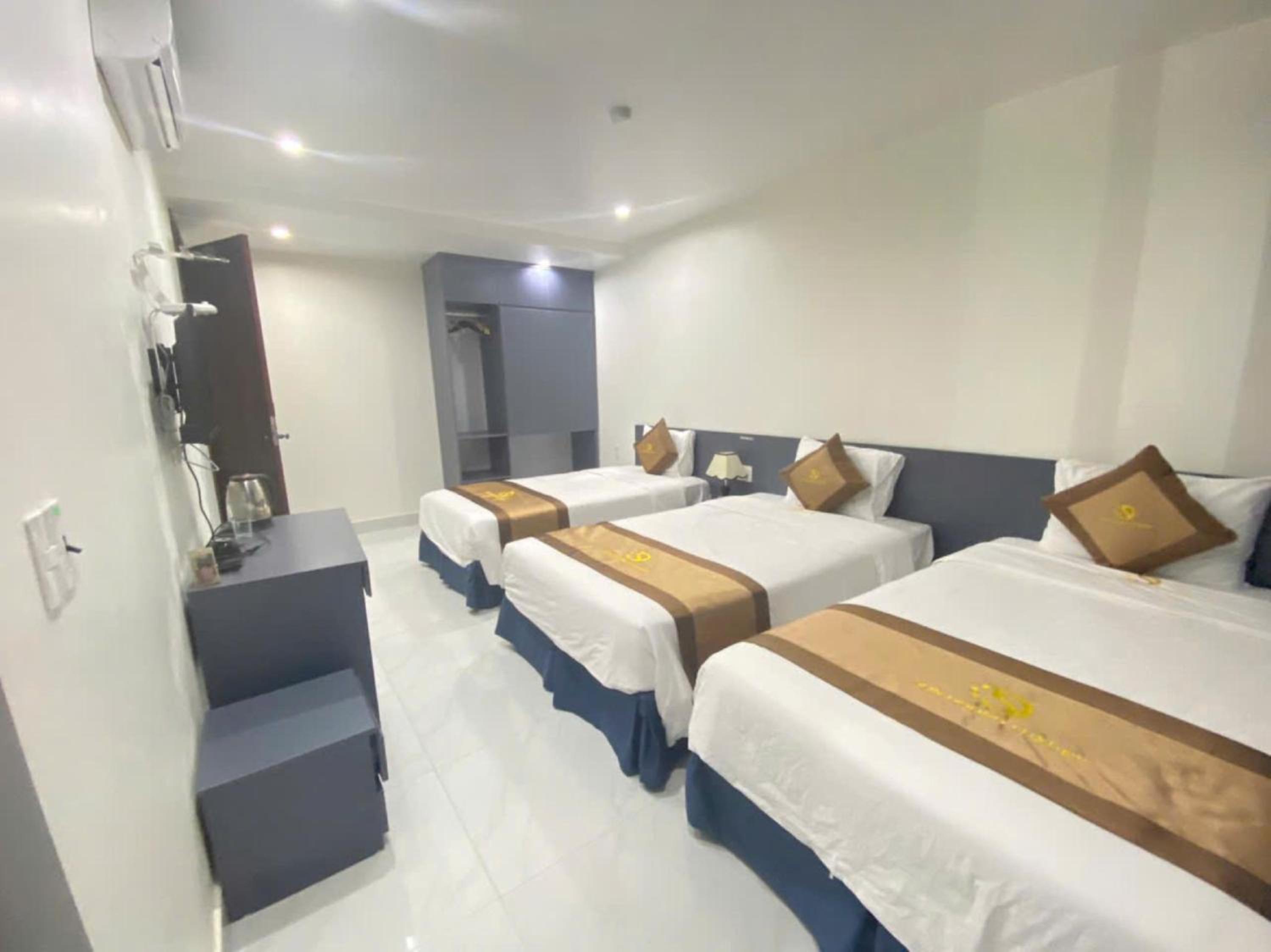 The hotel is conveniently located next to the airport, which makes it a great choice if you have an early flight the next morning. The (double) room was spacious, and equipped with AC, a fan, and a fridge. Upon our request, the owner kindly allowed us to rent a motorbike even just for a few hours (150,000 VND)