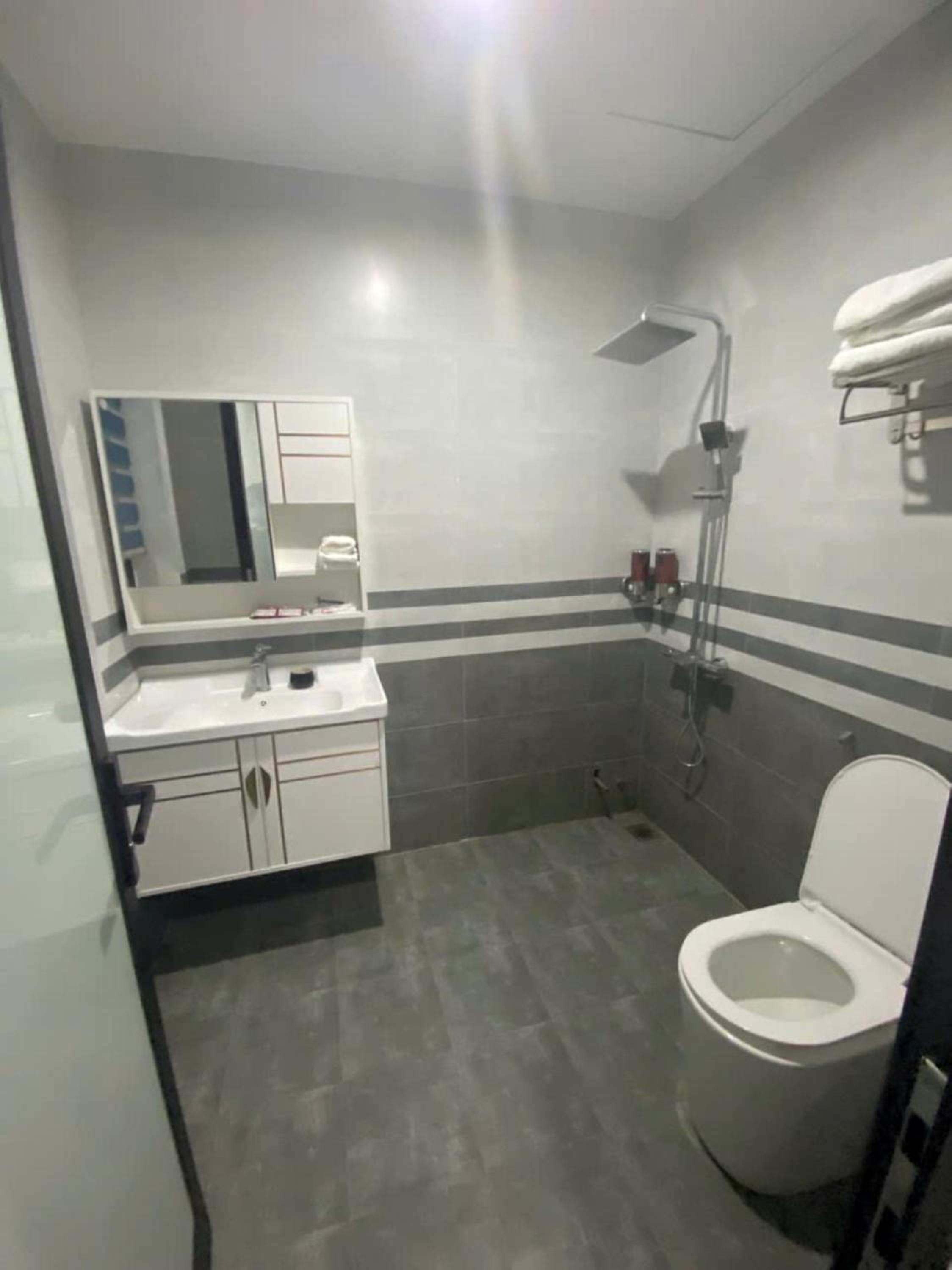 Phòng ốc bình thường, đồ dùng cũ kỹ và còn bị nhảy át nên con trai mình tắm lúc đầu còn không có nước nóng