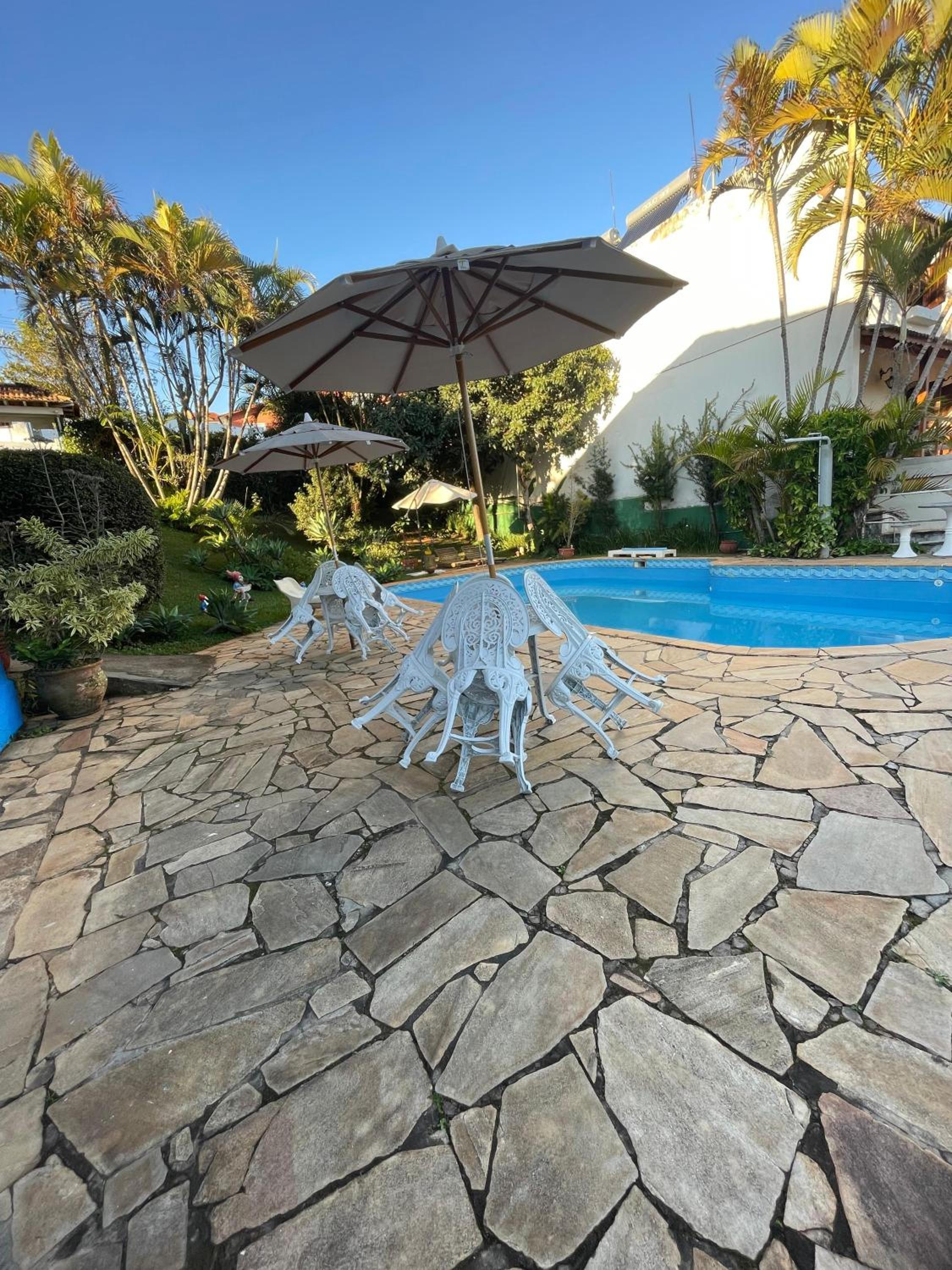 Indulge in the outdoor swimming pool and lush garden at Casarão de Minas, offering a tranquil escape for guests.