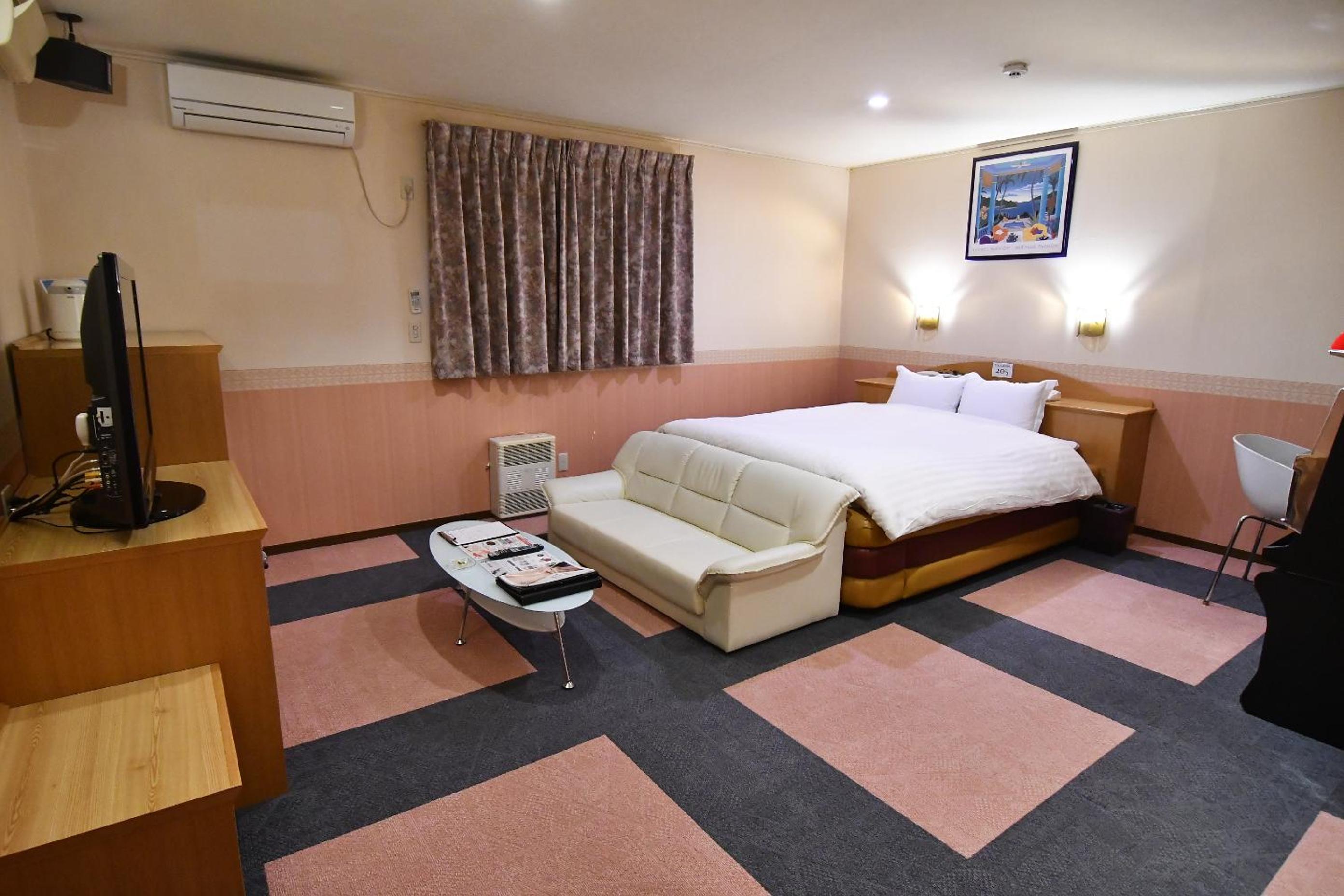 6,500日圓一晚,汽車旅館的傳統,房間很大,會附送一人一杯飲料,我選生啤酒,非常好喝,但沒鑰匙,要出門會不知道怎麼辦,沒有門能直接從房間到車庫,還是要從房間走出來再進車庫的門,店員是個大姊,我們不會說日文,但很用心的跟我們解說,雖然這間旅館的位置有點偏,但還是推薦入大家來住。