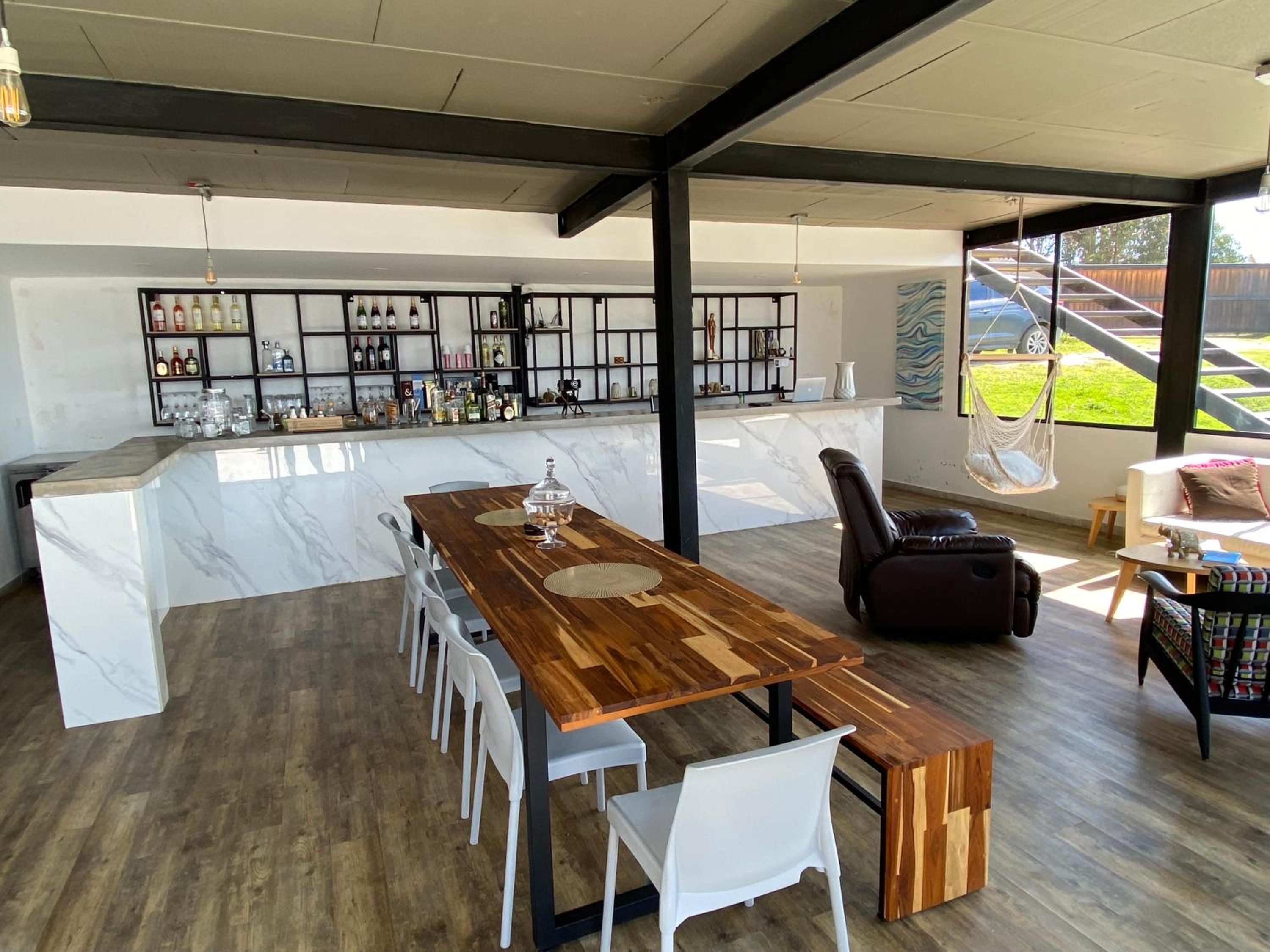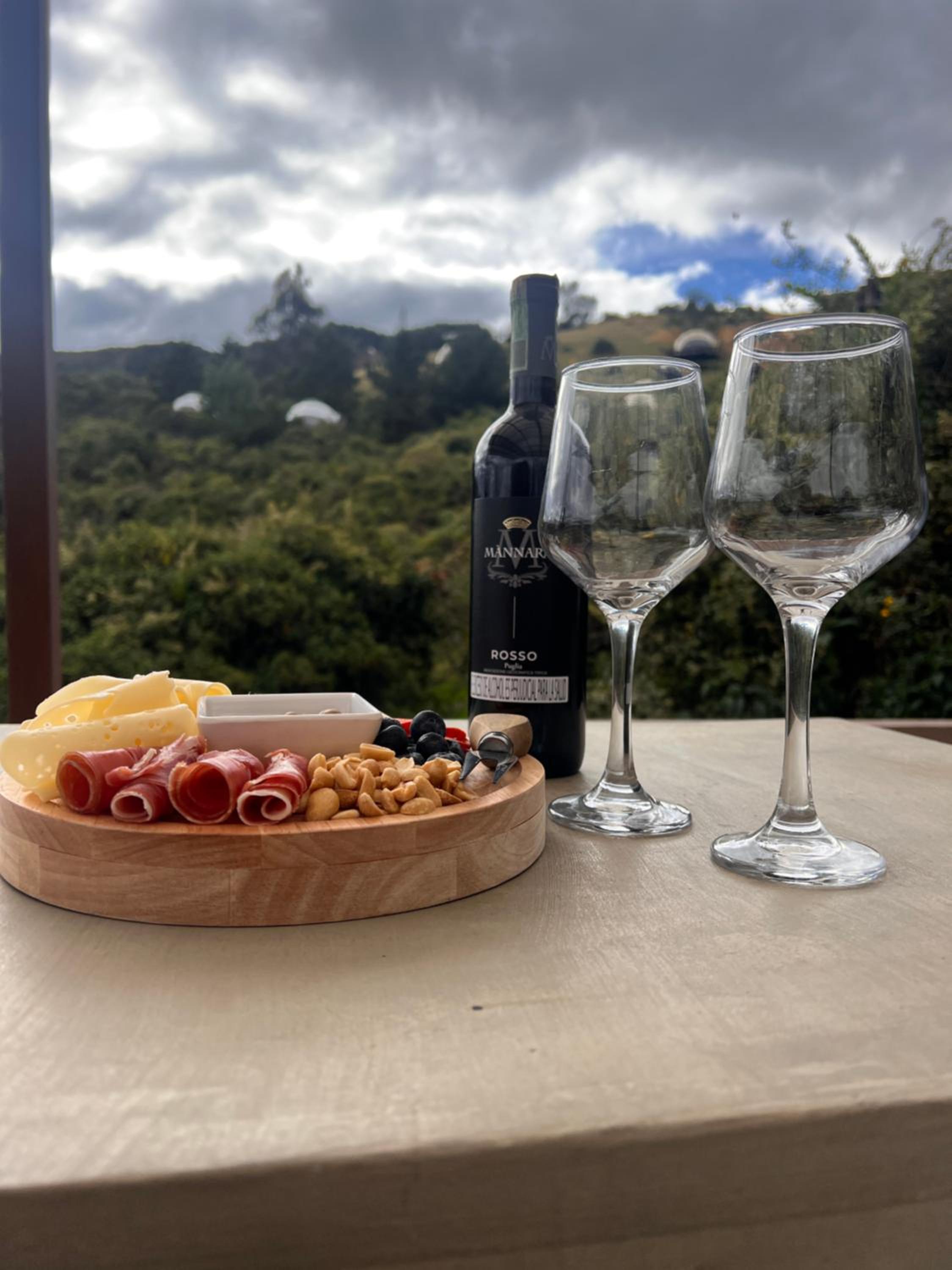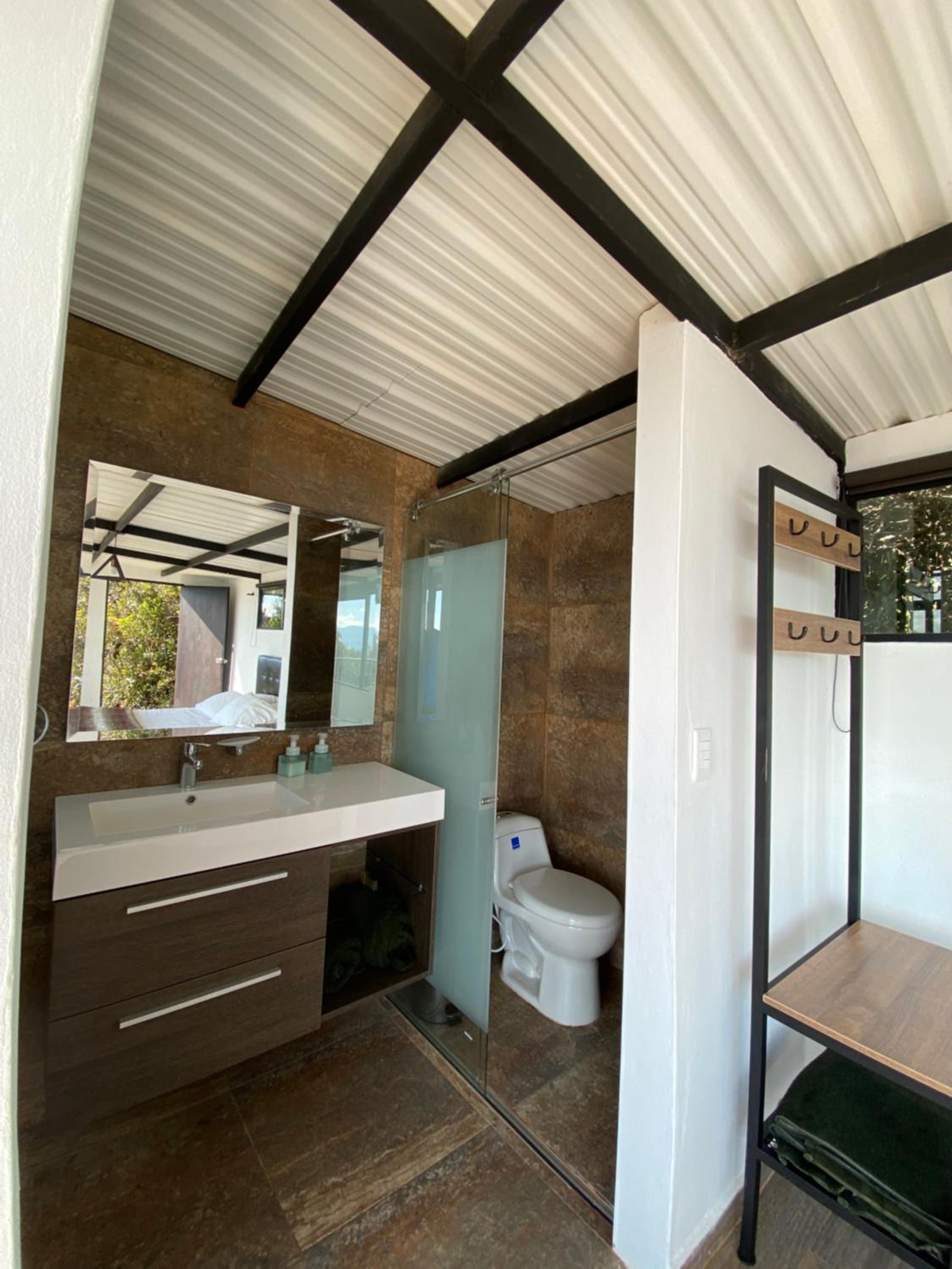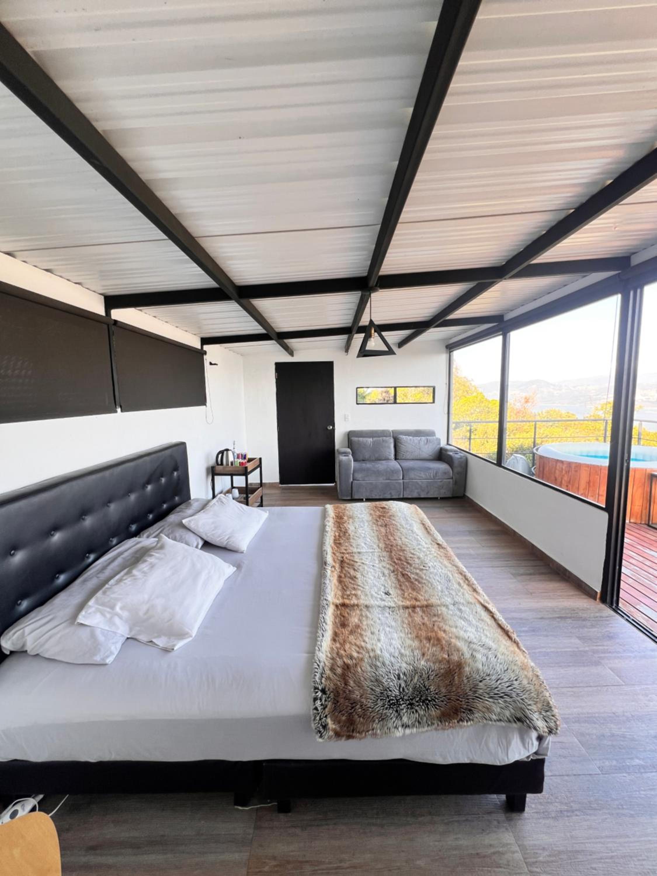 Escape to Casa Oro Glamping Hostel in Guatavita for a one-of-a-kind stay surrounded by nature. Enjoy the stunning mountain and lake views from your room's balcony, and relax in the peaceful garden setting.