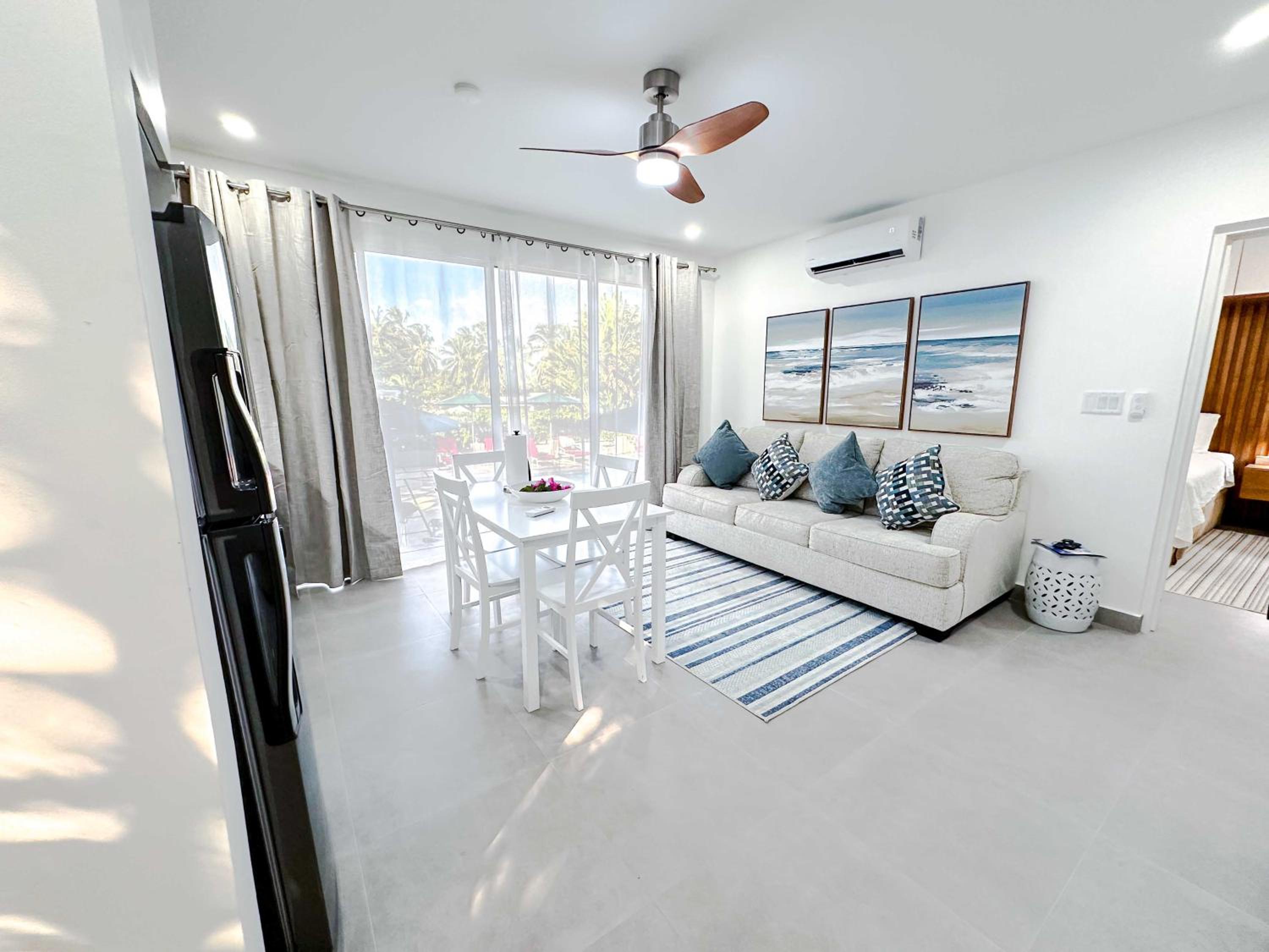 The acccomodations were exceptional. We stayed in the 2bedroom suite, and everything from the kitchen, to the bedroom, to the bathroom was perfect. The staff went above and beyond with everything and made our vacation wonderful. We felt spoiled yet integrated (like locals) as it was nestled inside of a gorgeous neighborhood, and a quick walk to restaurants, beaches, wine store and coffee shops. Location was perfect.