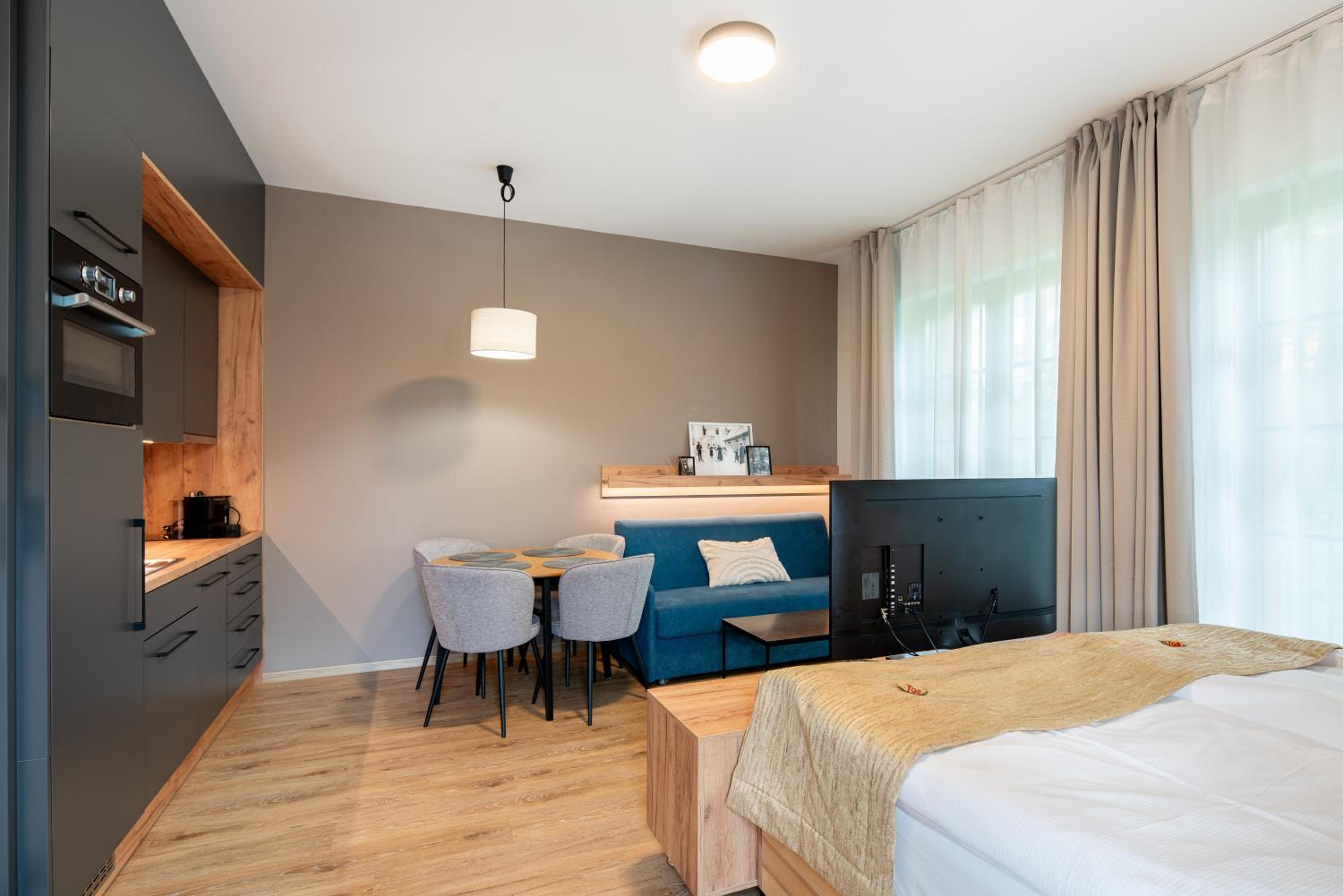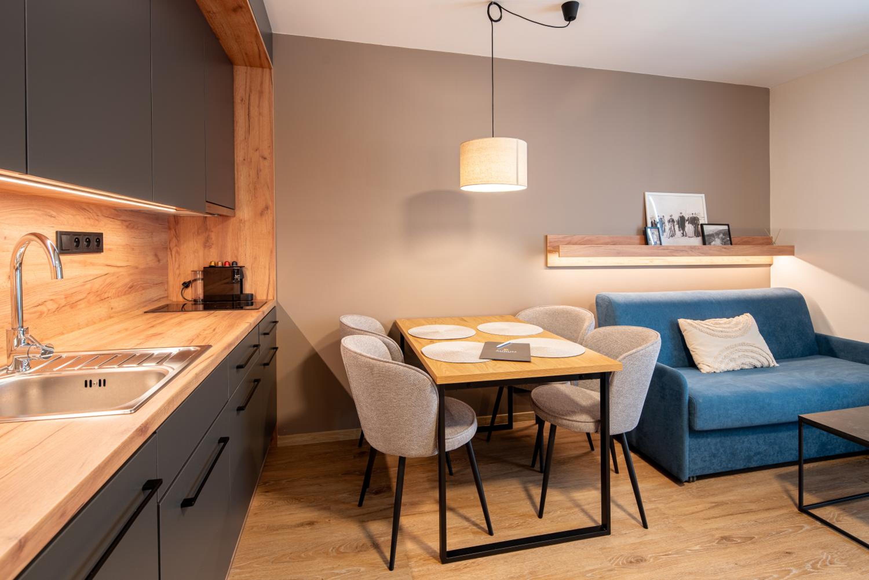 Wygodny, czysty, w pełni wyposażony apartament, wysoki standard. Narciarnia na miejscu, pomocny personel, pyszne śniadania, ekspres w pokoju i w pełni wyposażony aneks kuchenny.