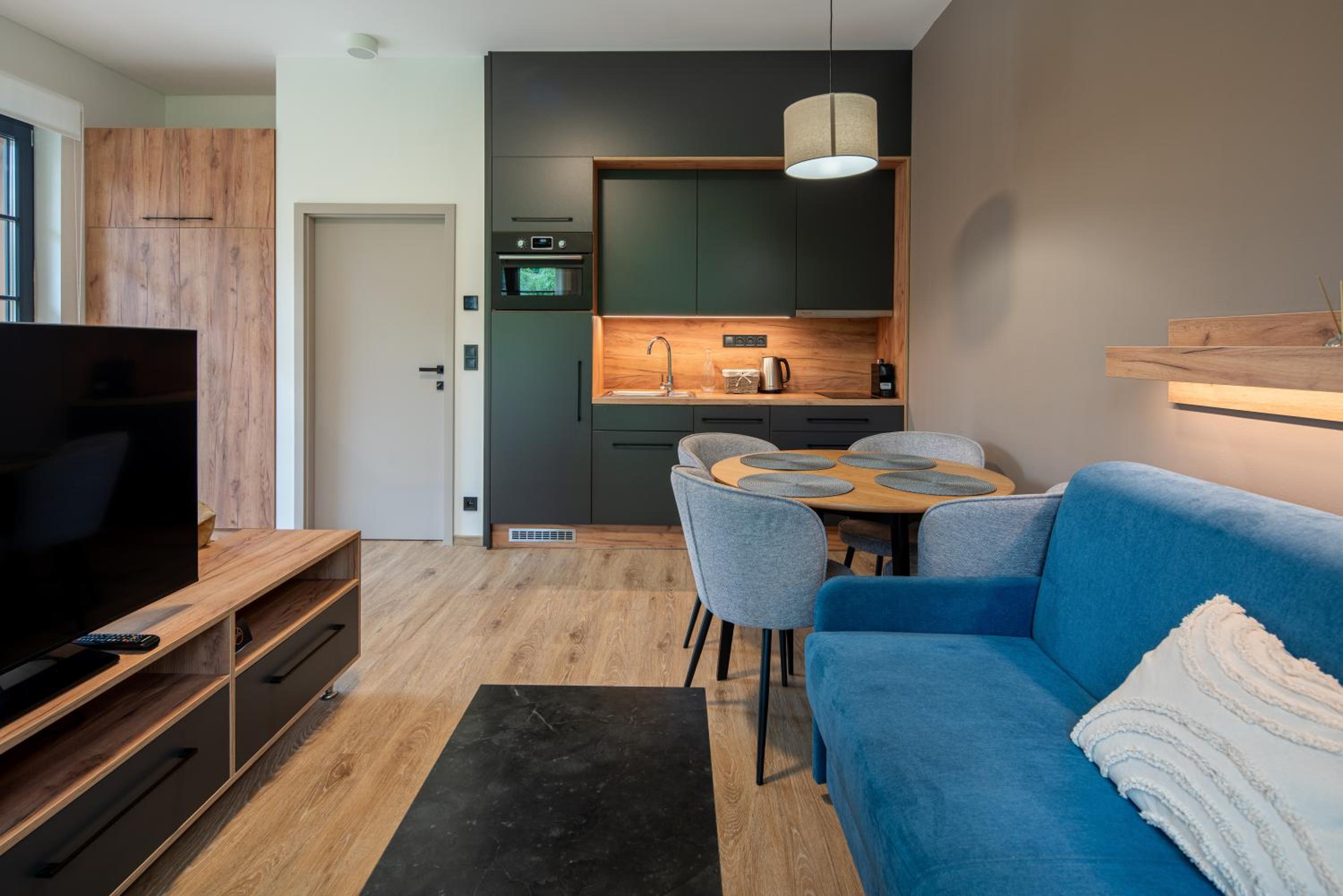 good, modern apartment with nice TV and modern kitchen