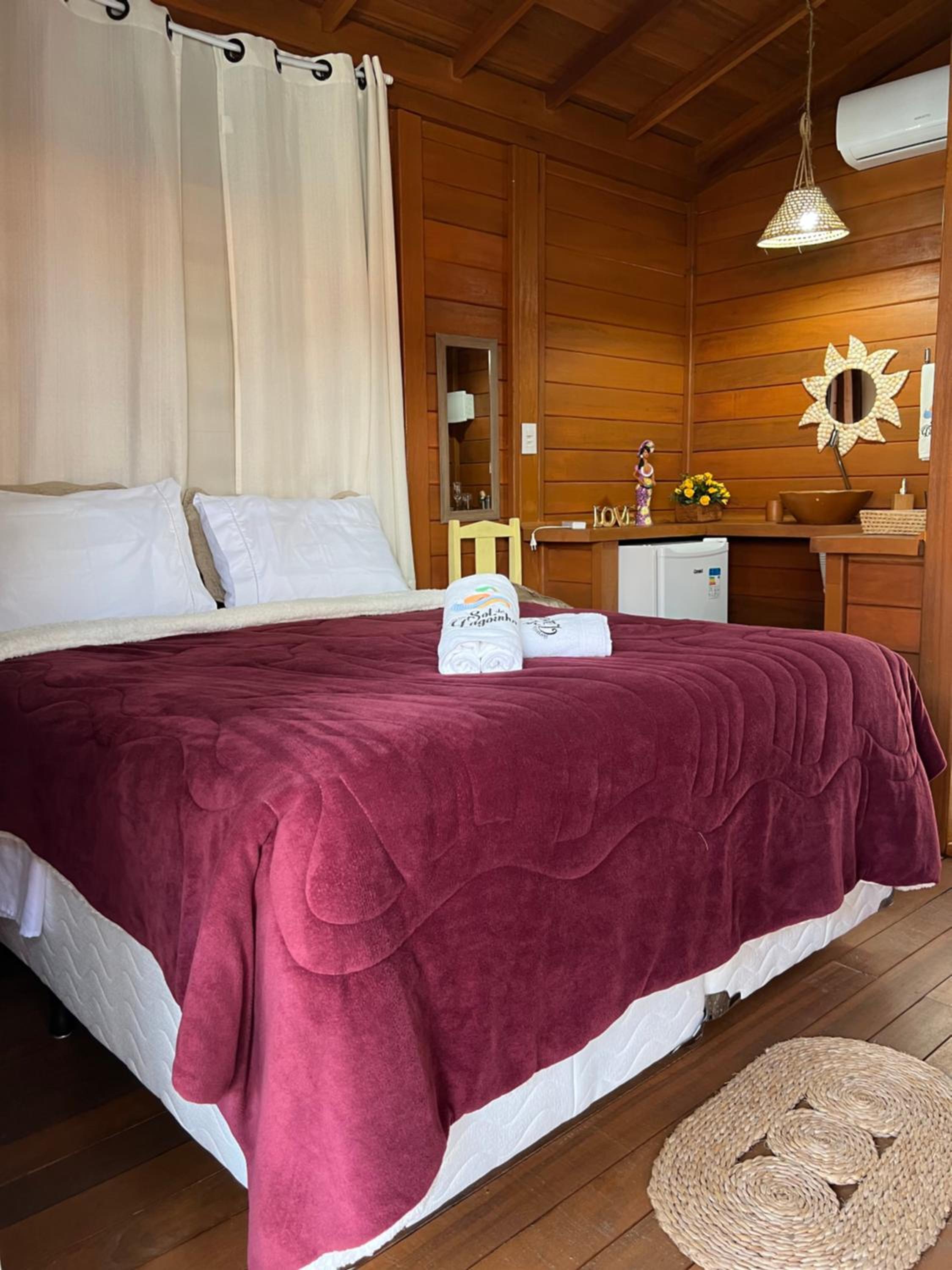 Foi realizada uma cobrança a mais do que o total sugerido pelo app(booking) , tv não funciona na cabana taiba, lençóis e toalhas com manchas, formiguinhas no local inclusive em cima da cama , não tem recepção (balcão).