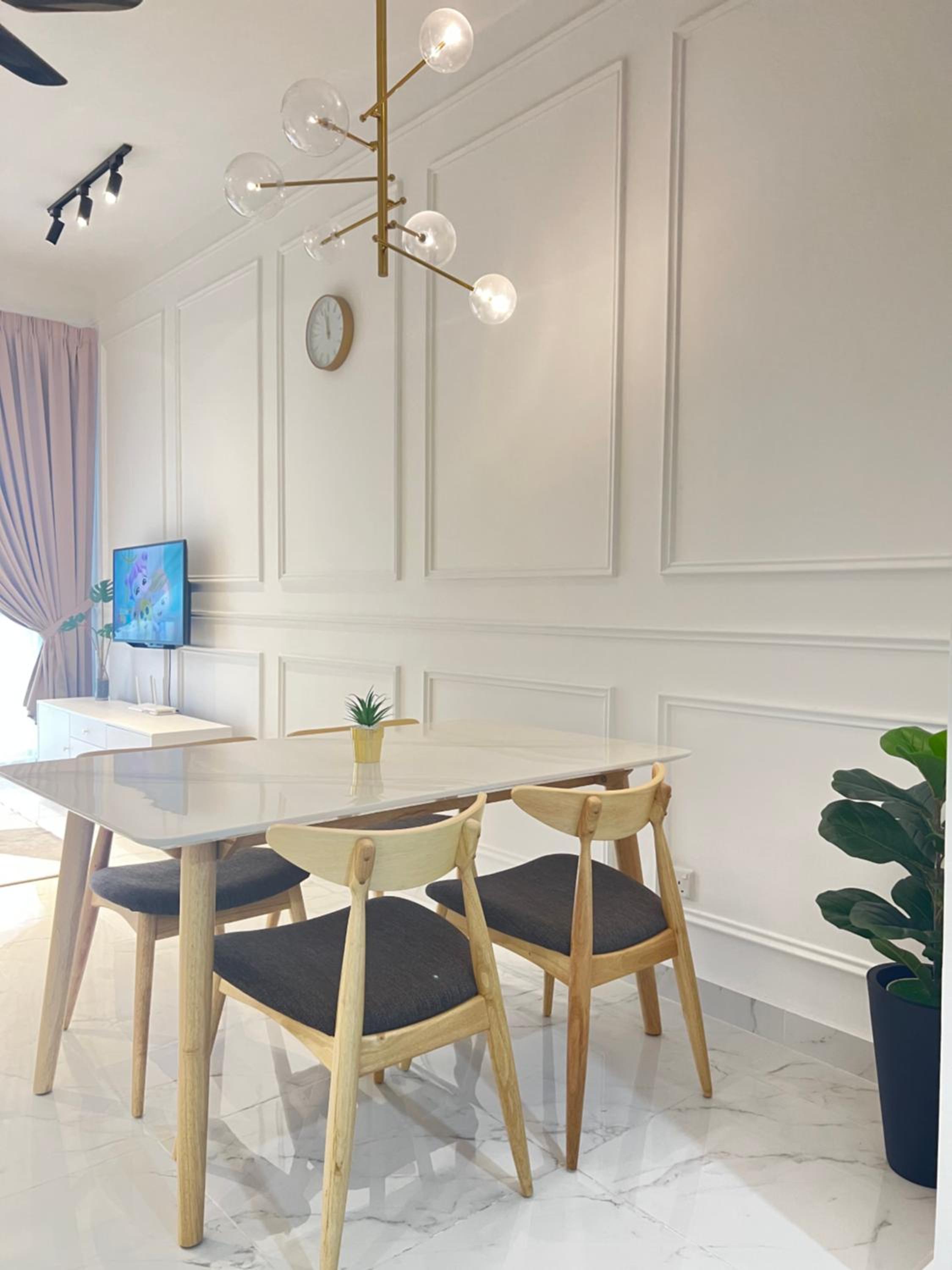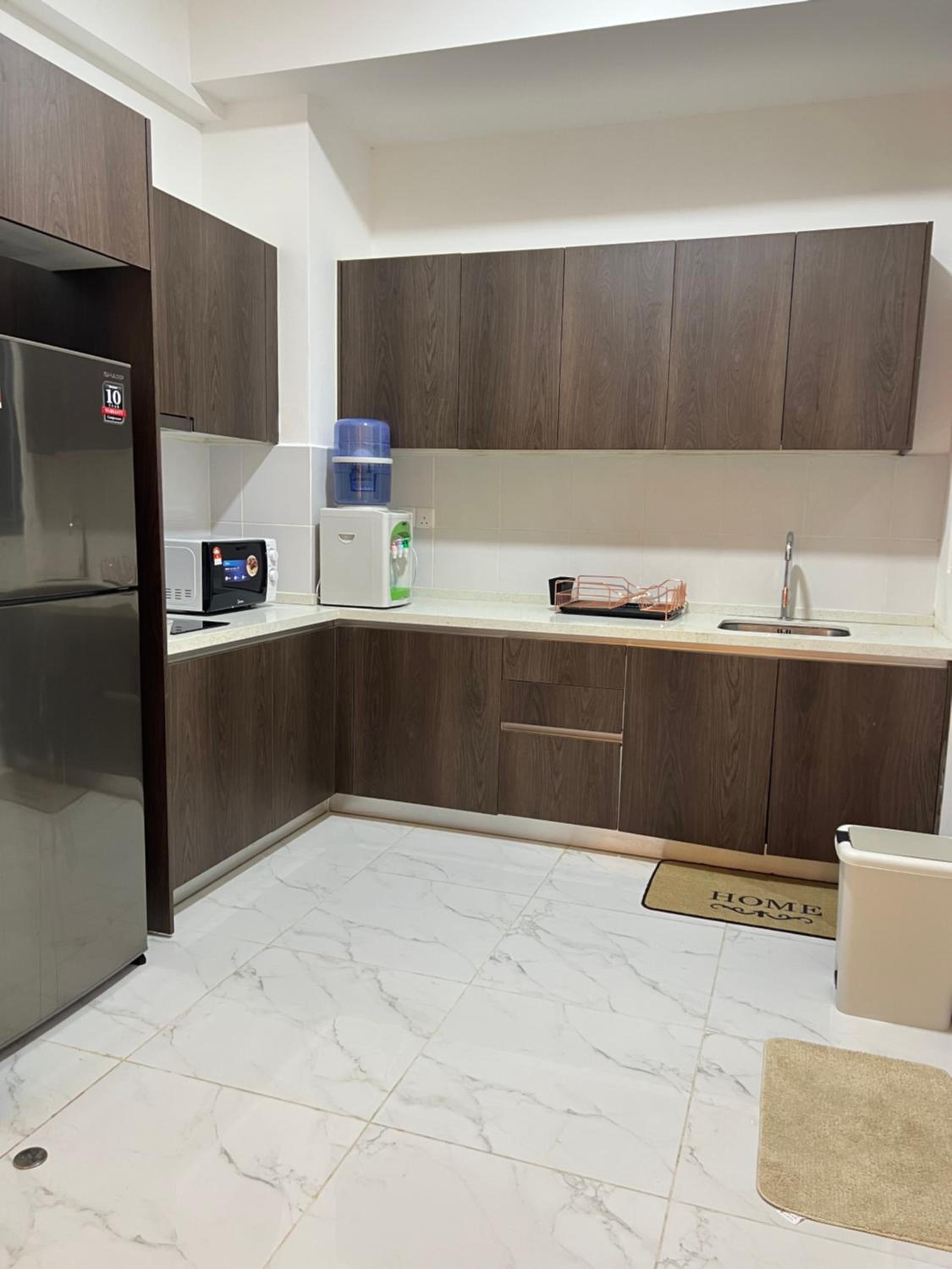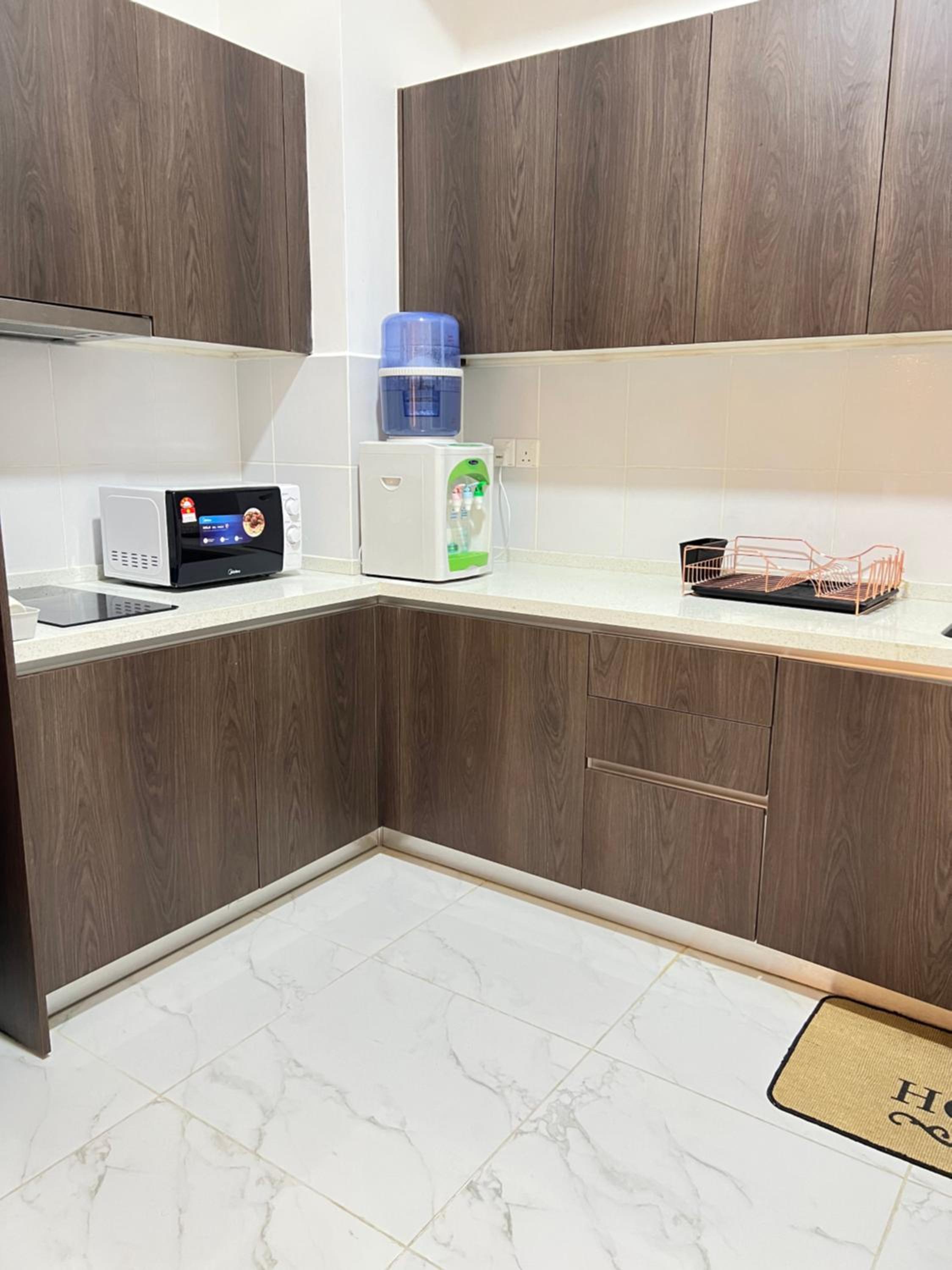 The place is beautiful and clean, we’re welcomed with a soothing rose scent when entering the house.Owner is also very friendly and helpful. I think have to bring our own pan if planning to cook because only plates and cutleries provided, but they didnt allow heavy cooking. Microwave and water dispenser is available. But worry not,Many restaurants available around the residence. The pool is great for kids but maybe too crowded during public holidays. We enjoyed our stay, will stay here again in the future