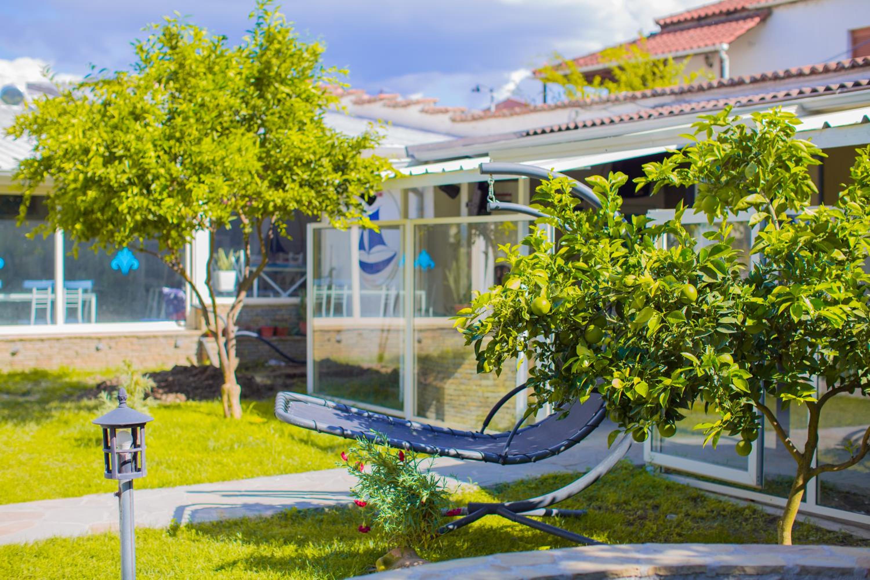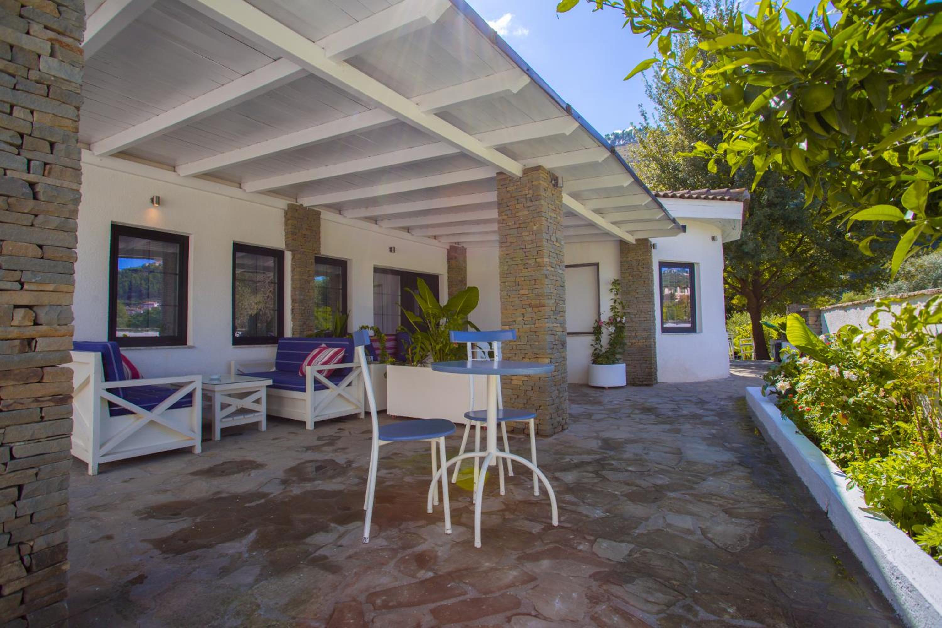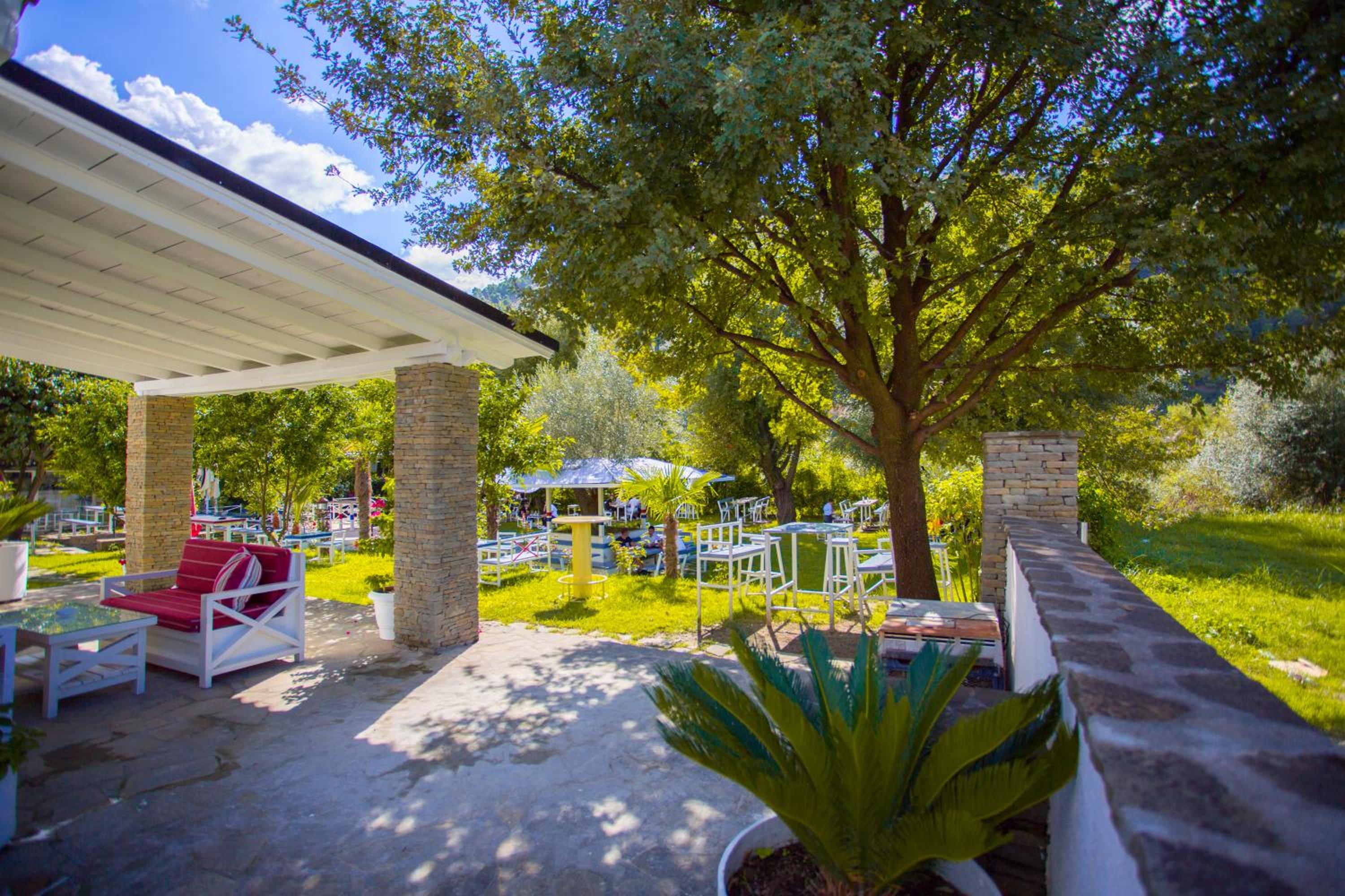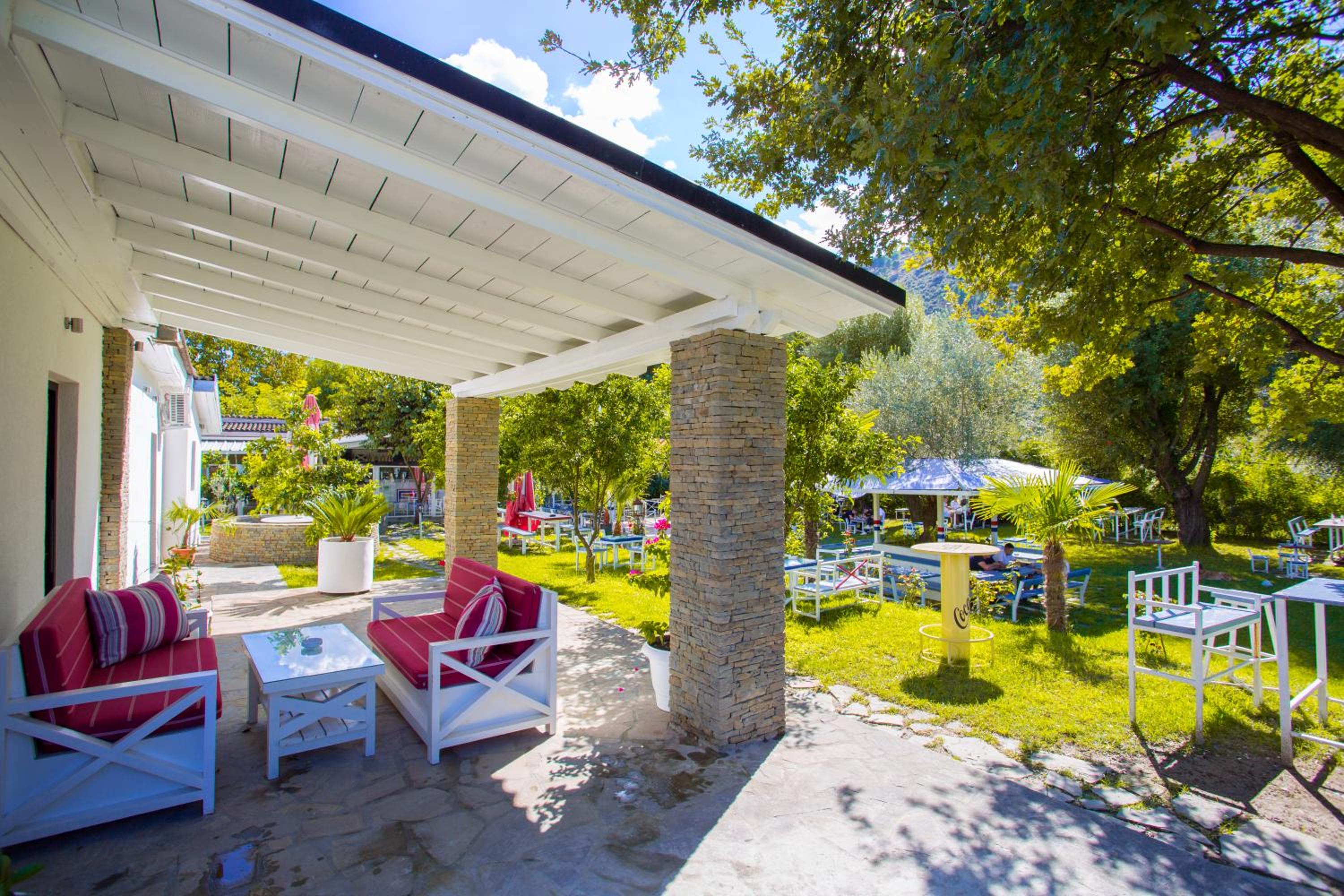 Embrace nature at Berat River House Boutique Hotel with a serene garden and inviting terrace for a relaxing stay.