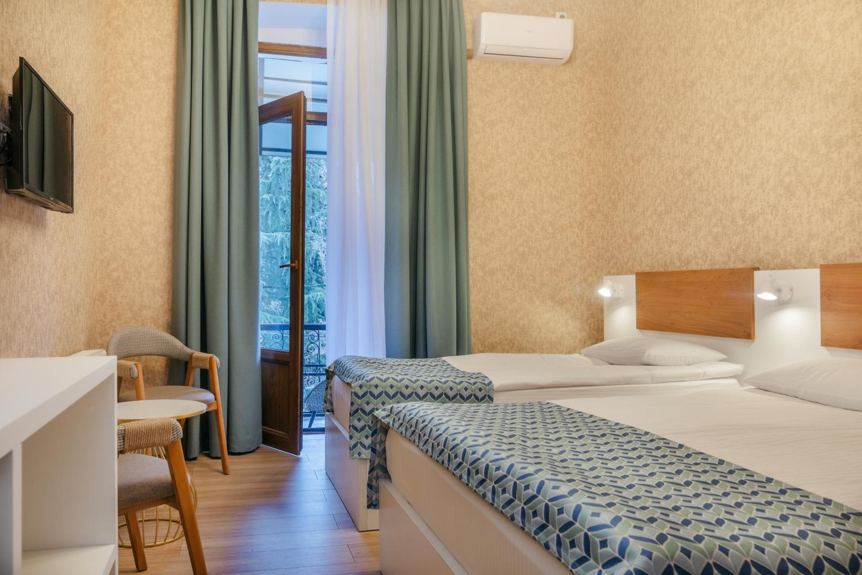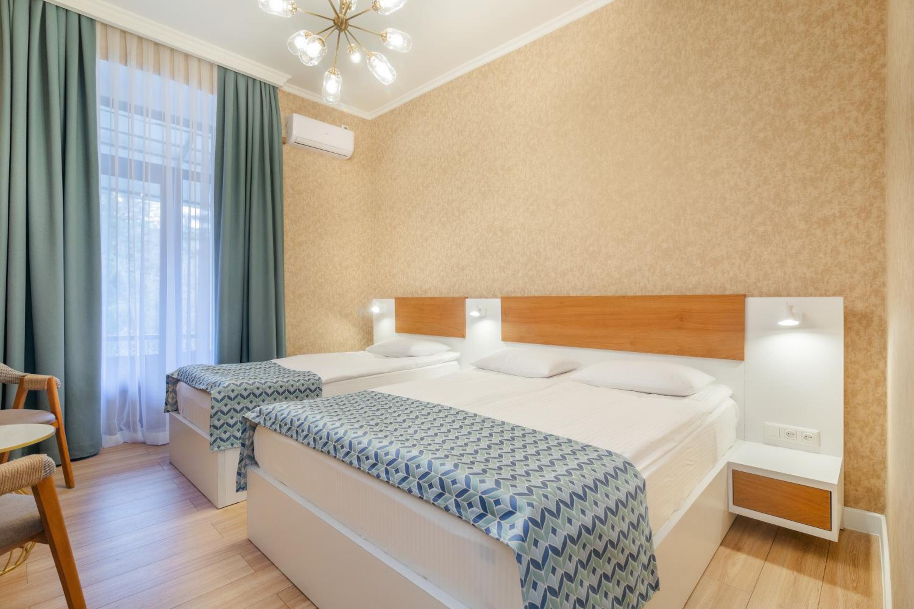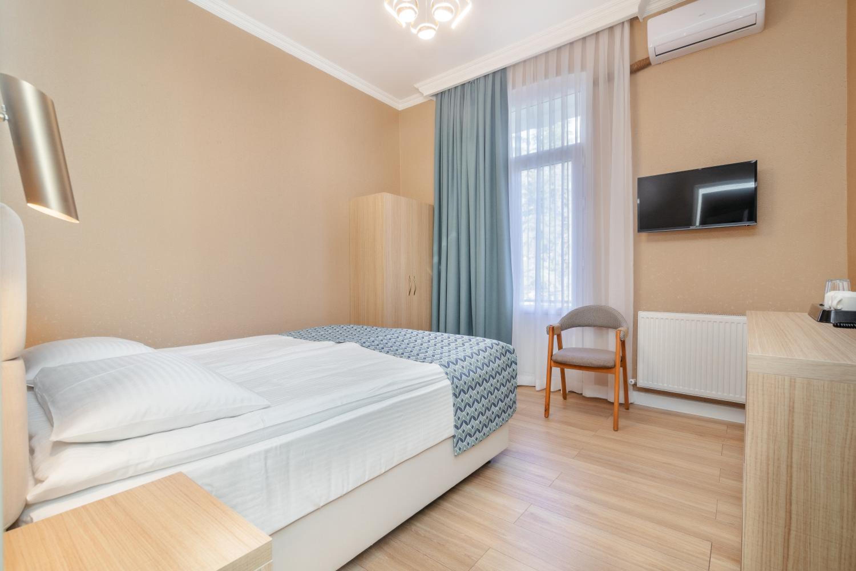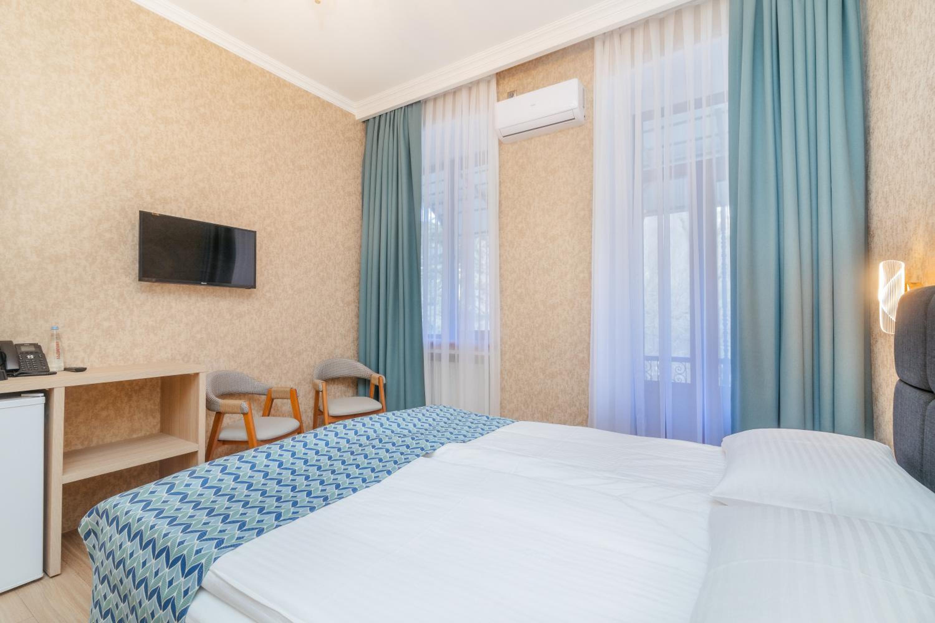 Чистый ,рядом с парком Боржоми. Есть в гостинице ресторан что очень удобно. Очень приветливый внимательный персонал. Больше спасибо.