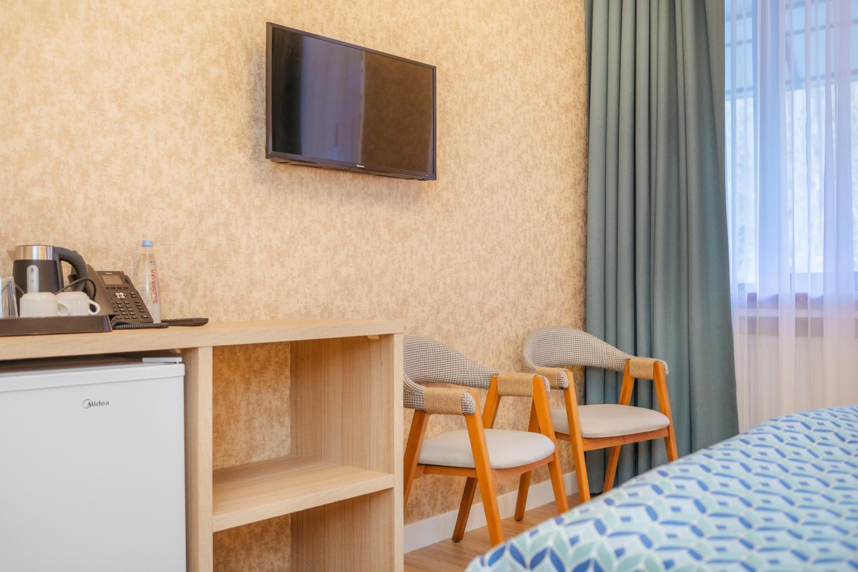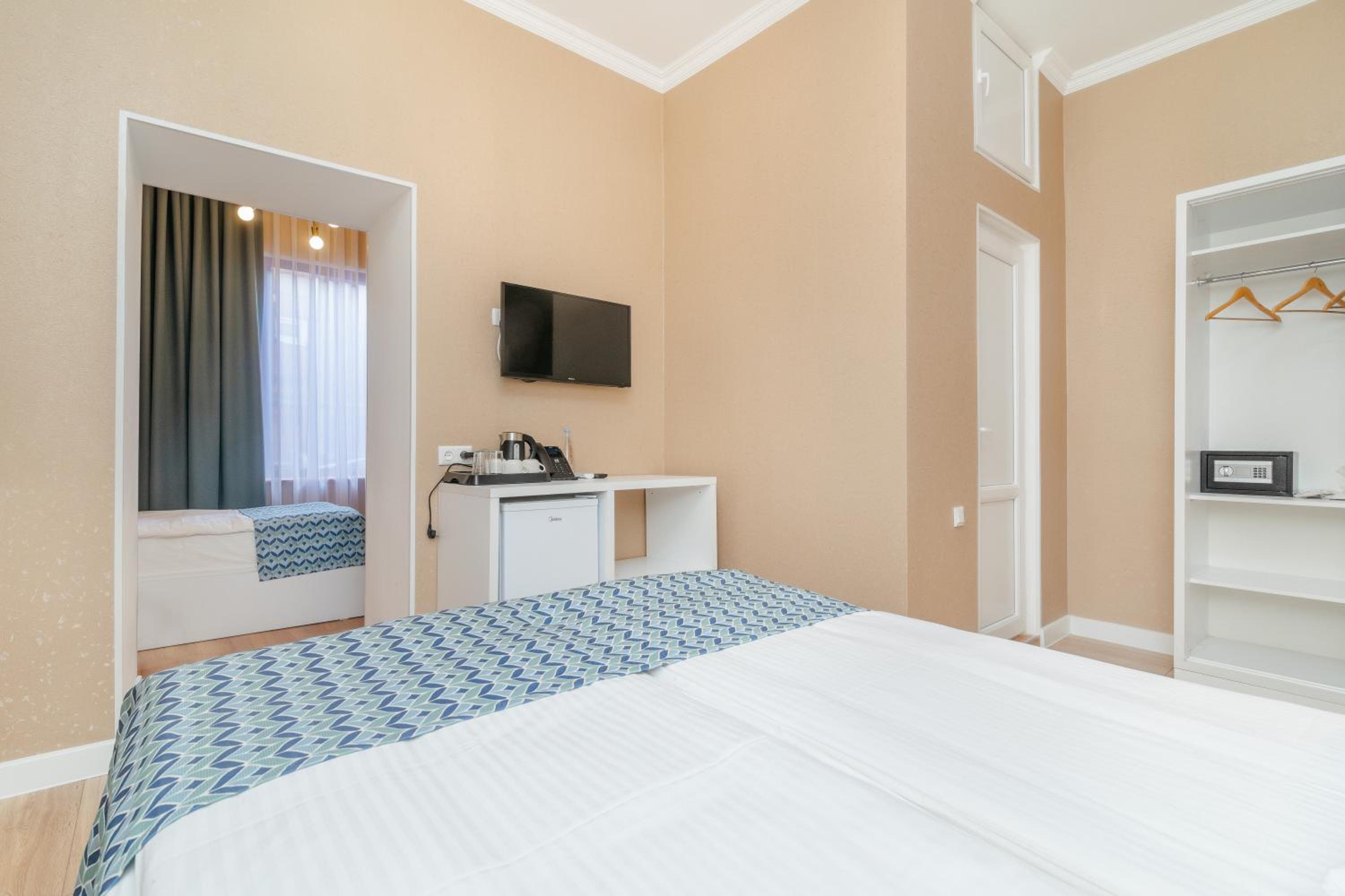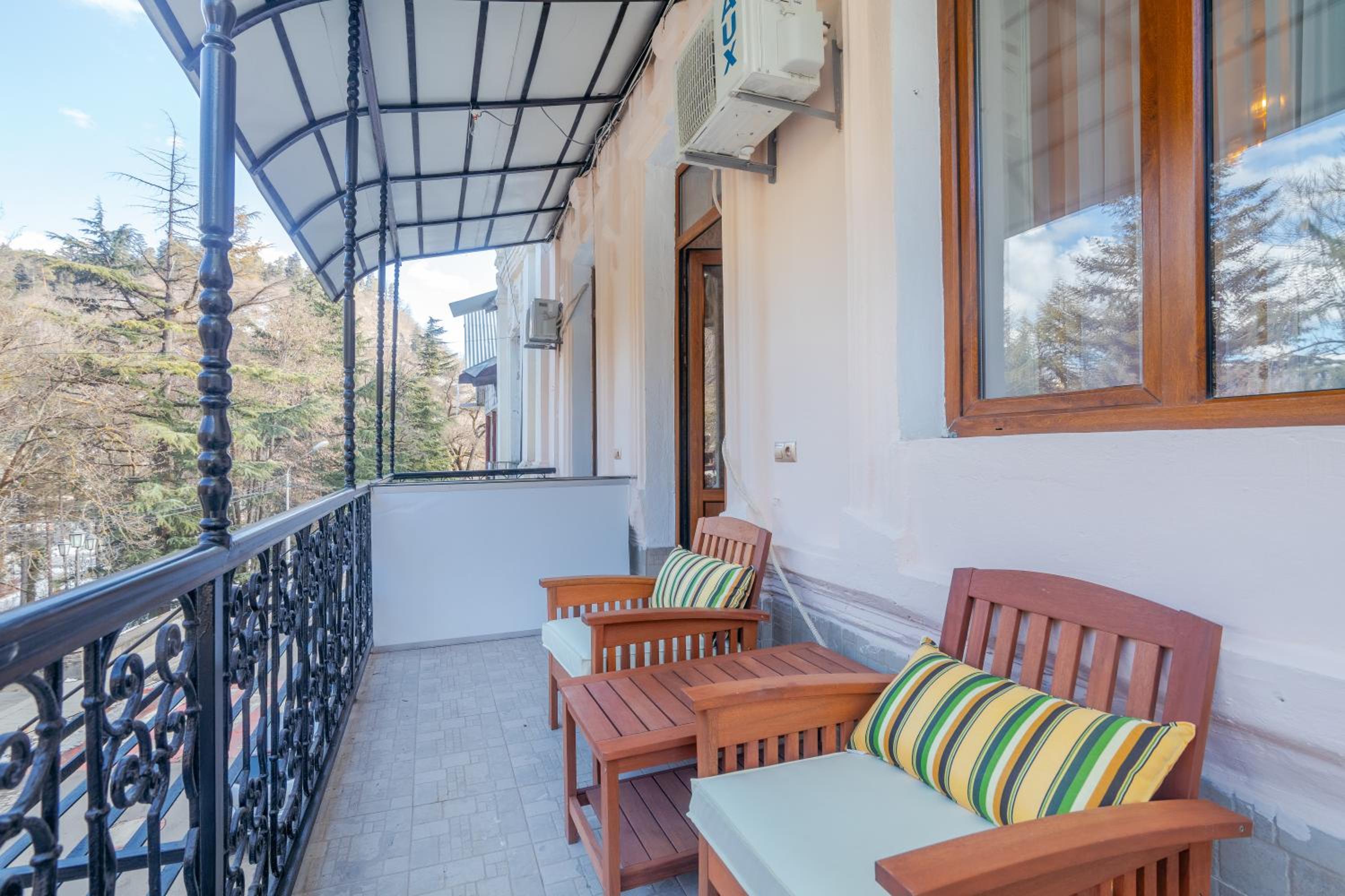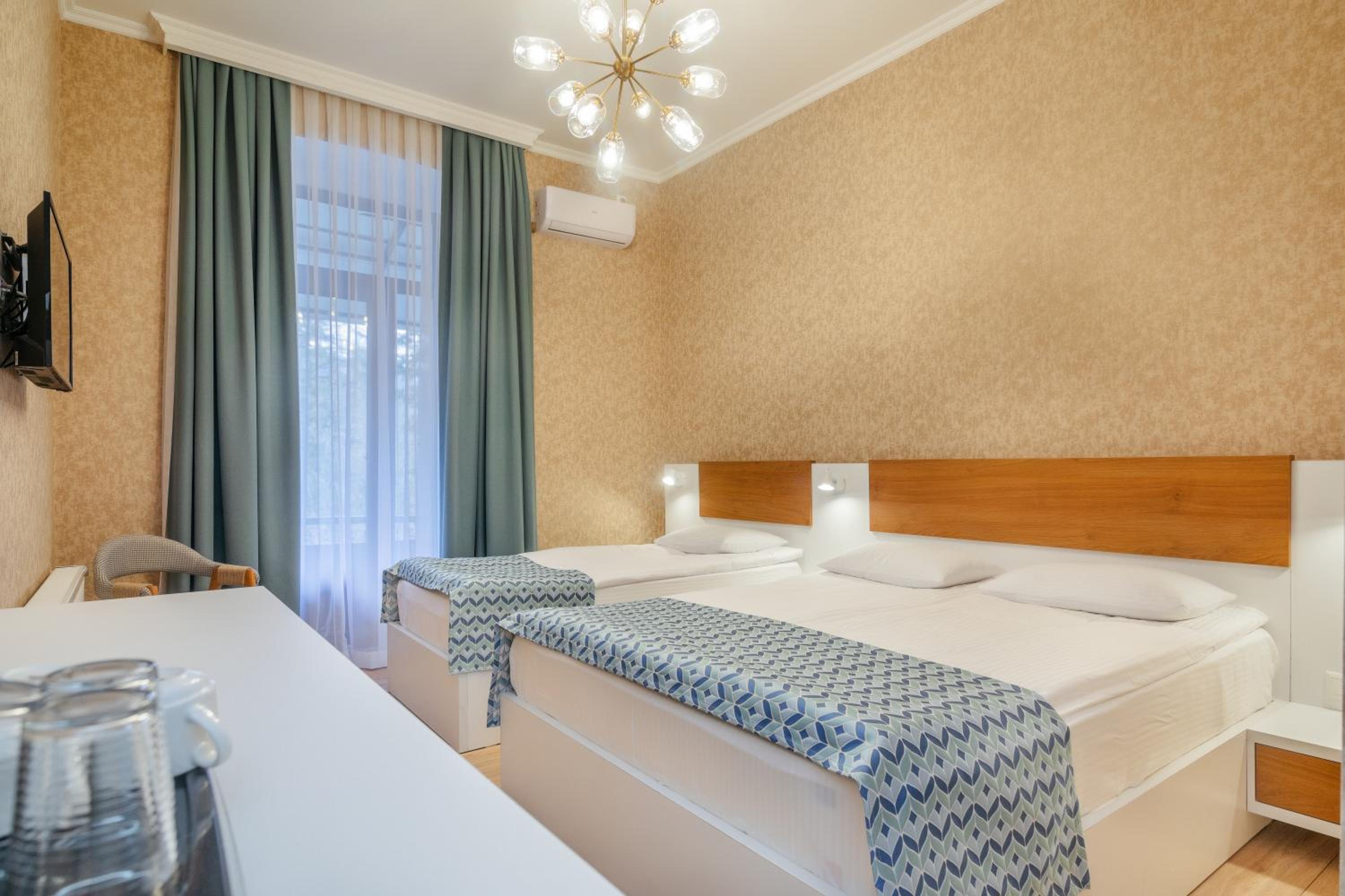 Чистый ,рядом с парком Боржоми. Есть в гостинице ресторан что очень удобно. Очень приветливый внимательный персонал. Больше спасибо.