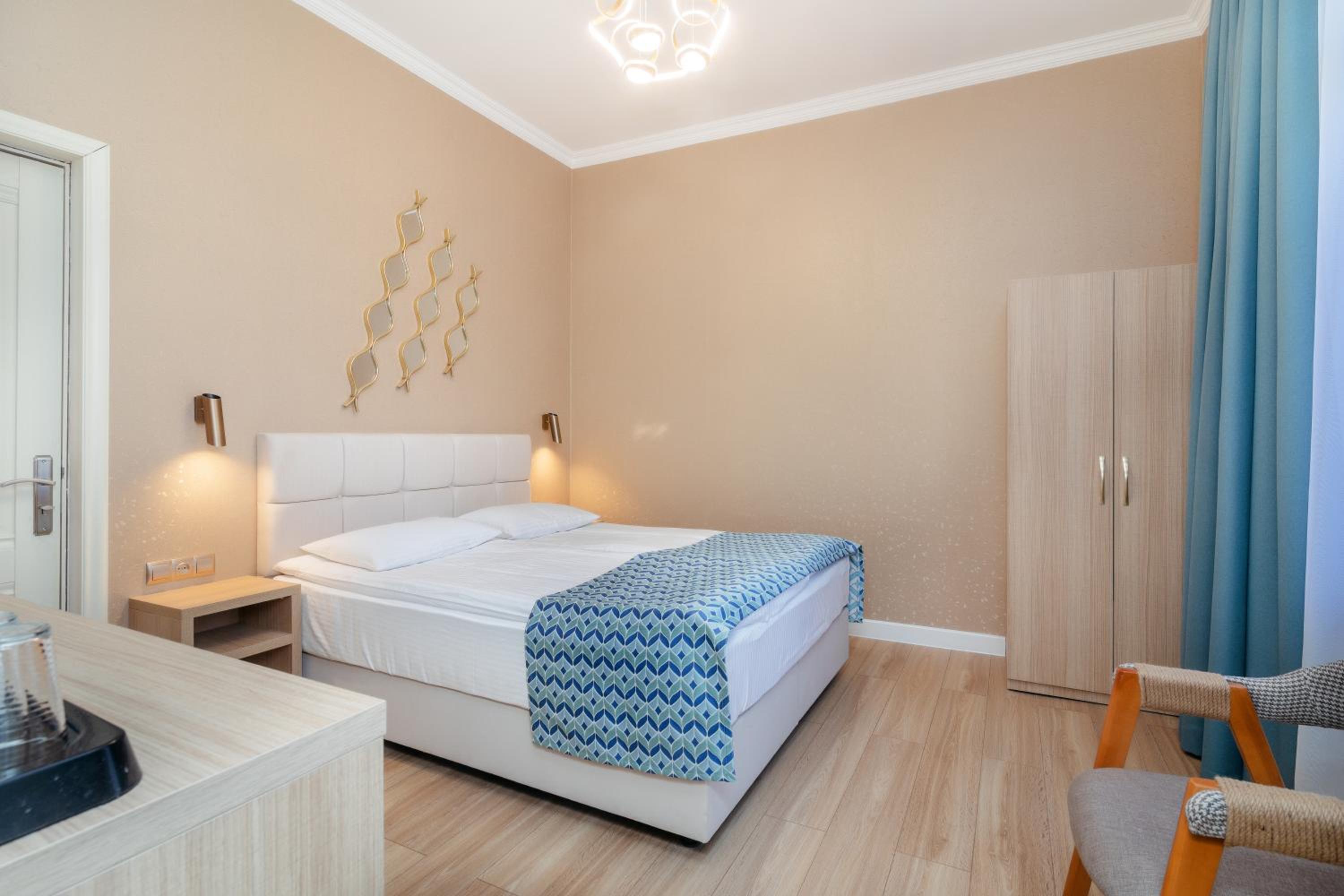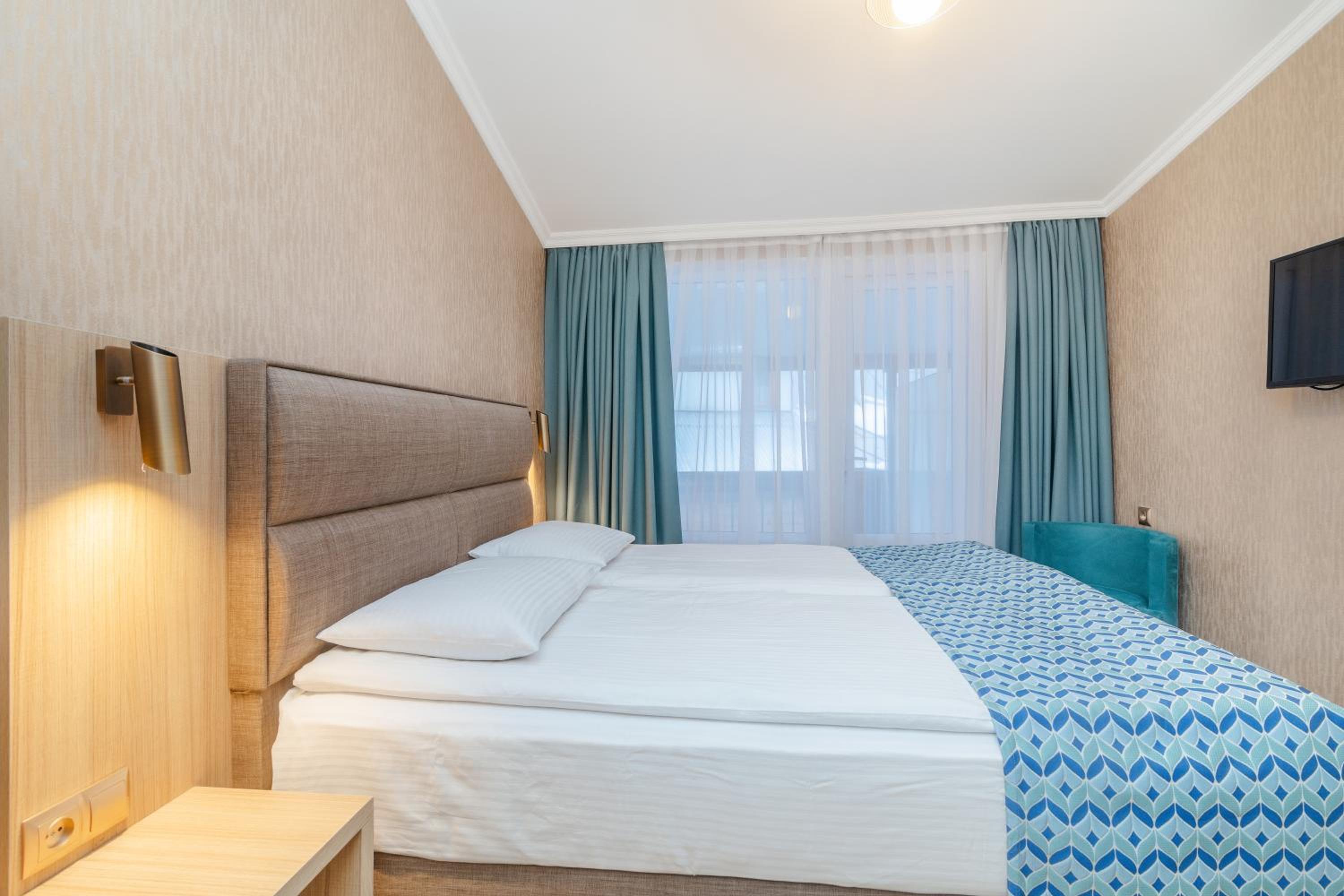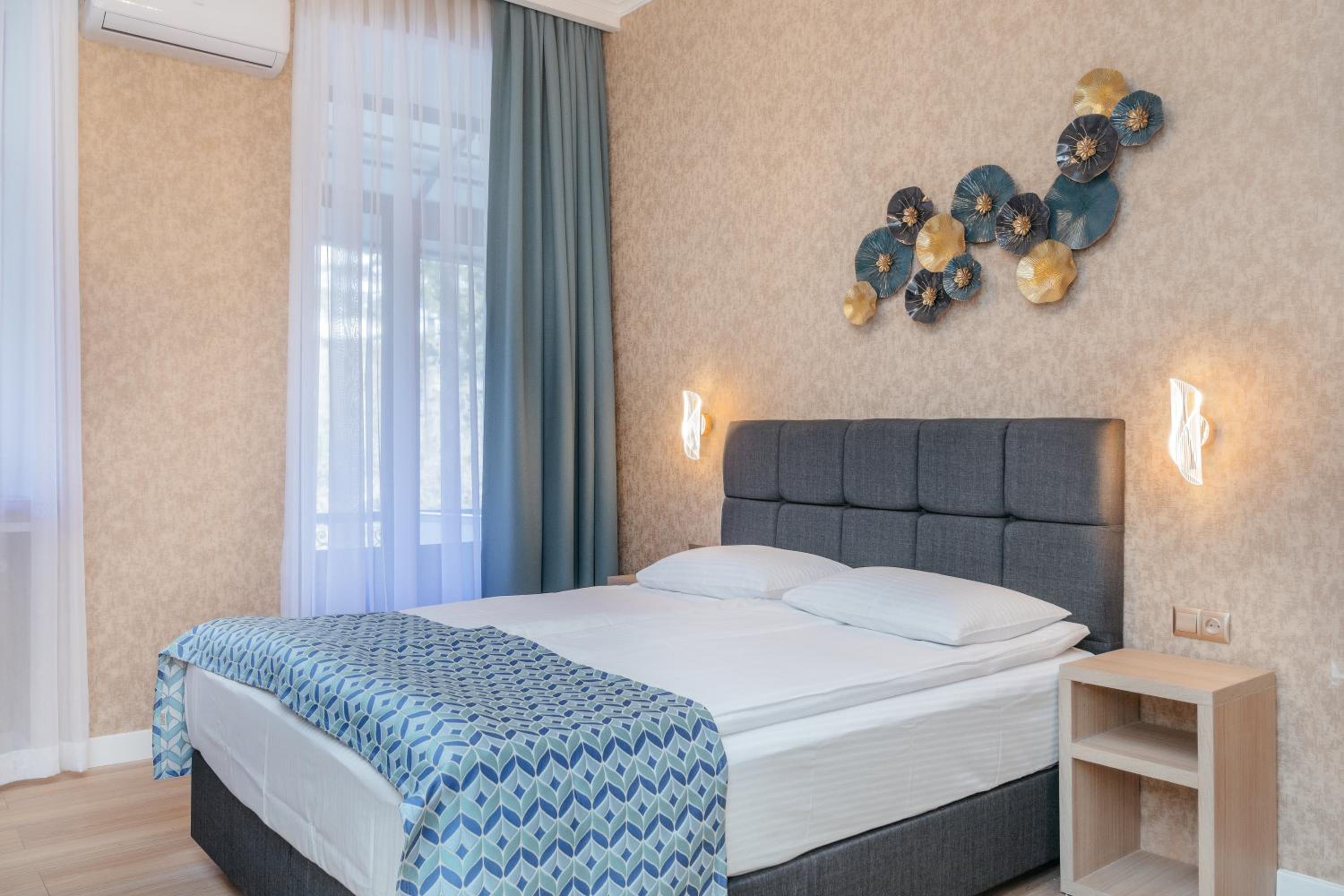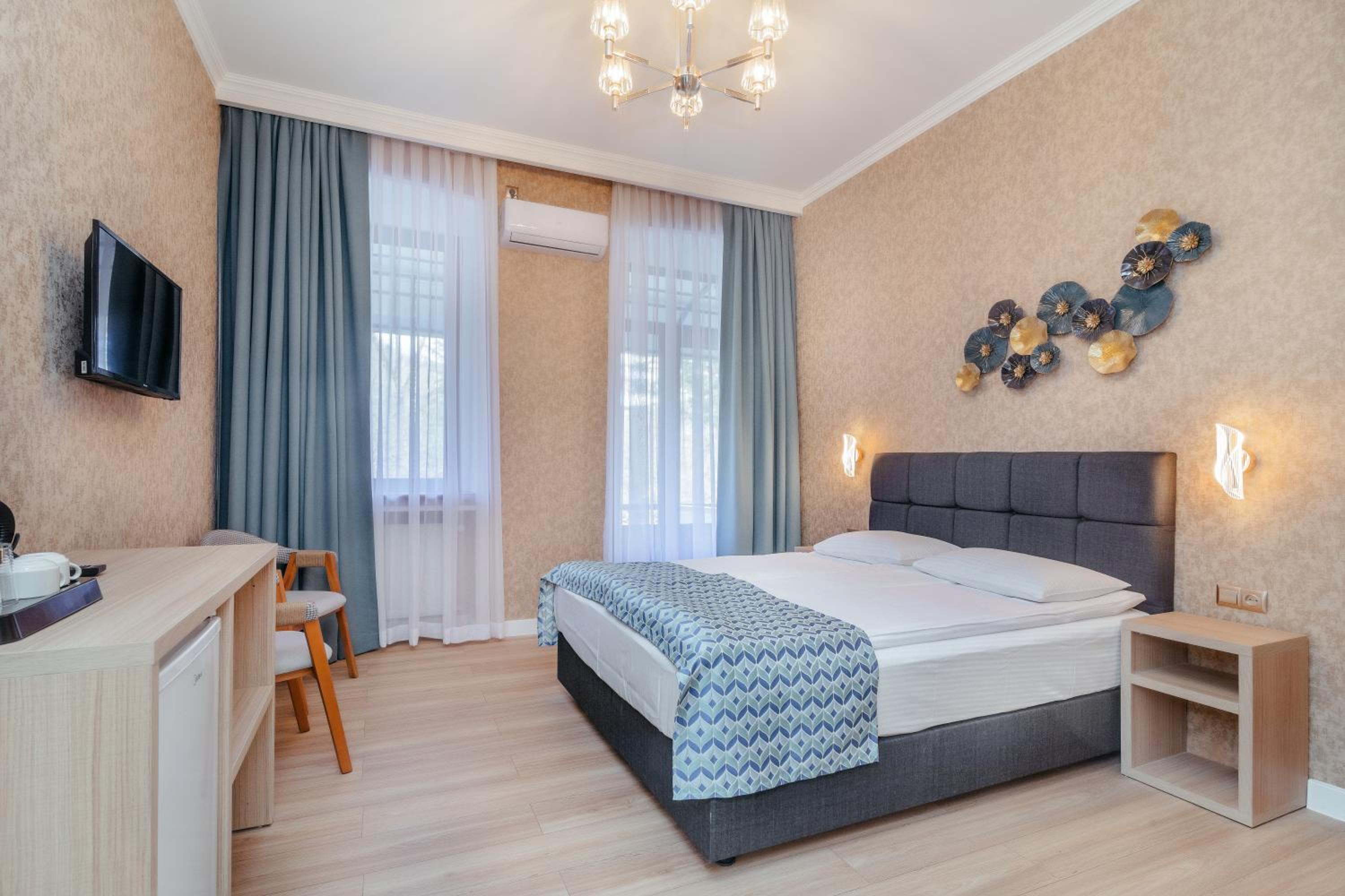 Чистый ,рядом с парком Боржоми. Есть в гостинице ресторан что очень удобно. Очень приветливый внимательный персонал. Больше спасибо.