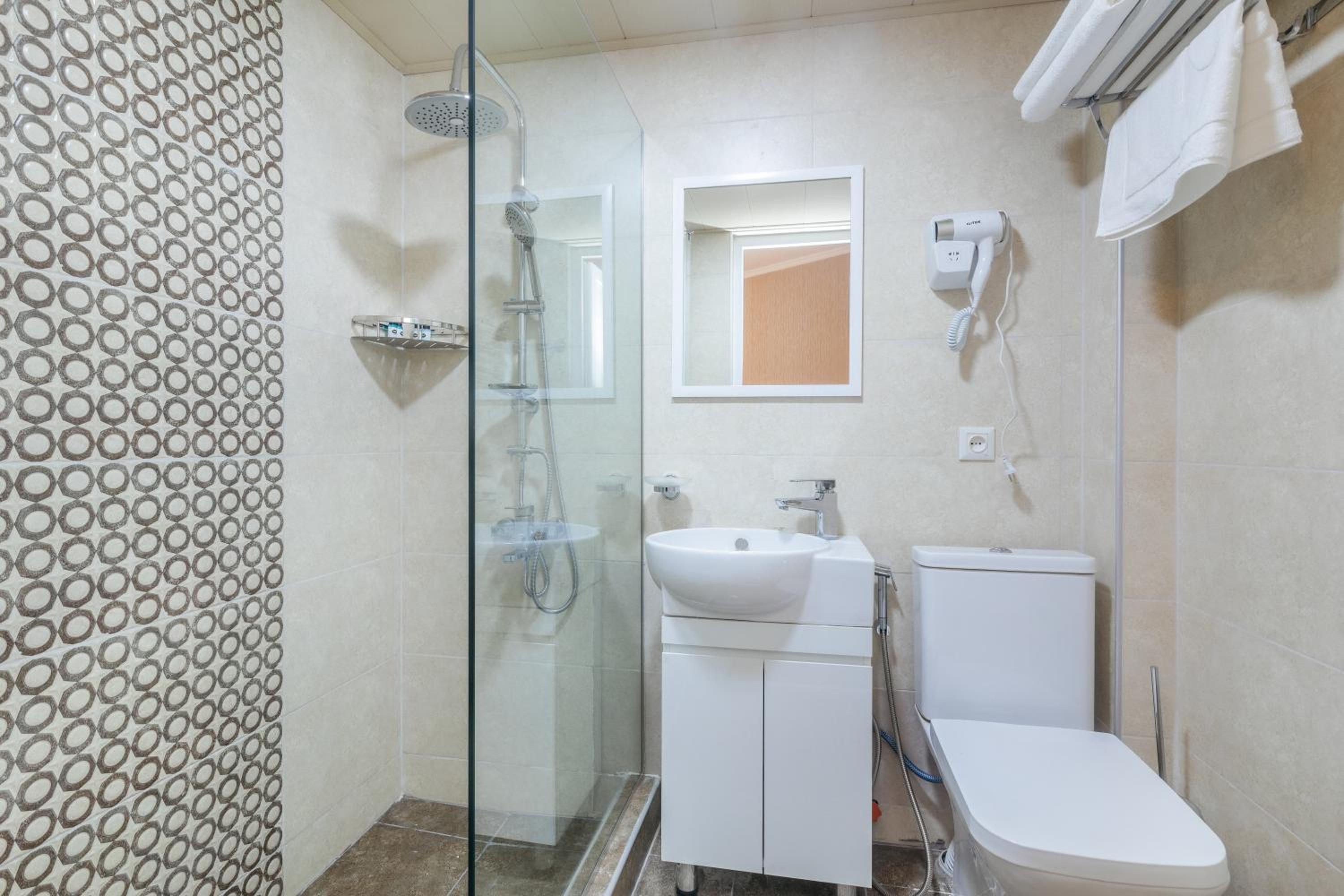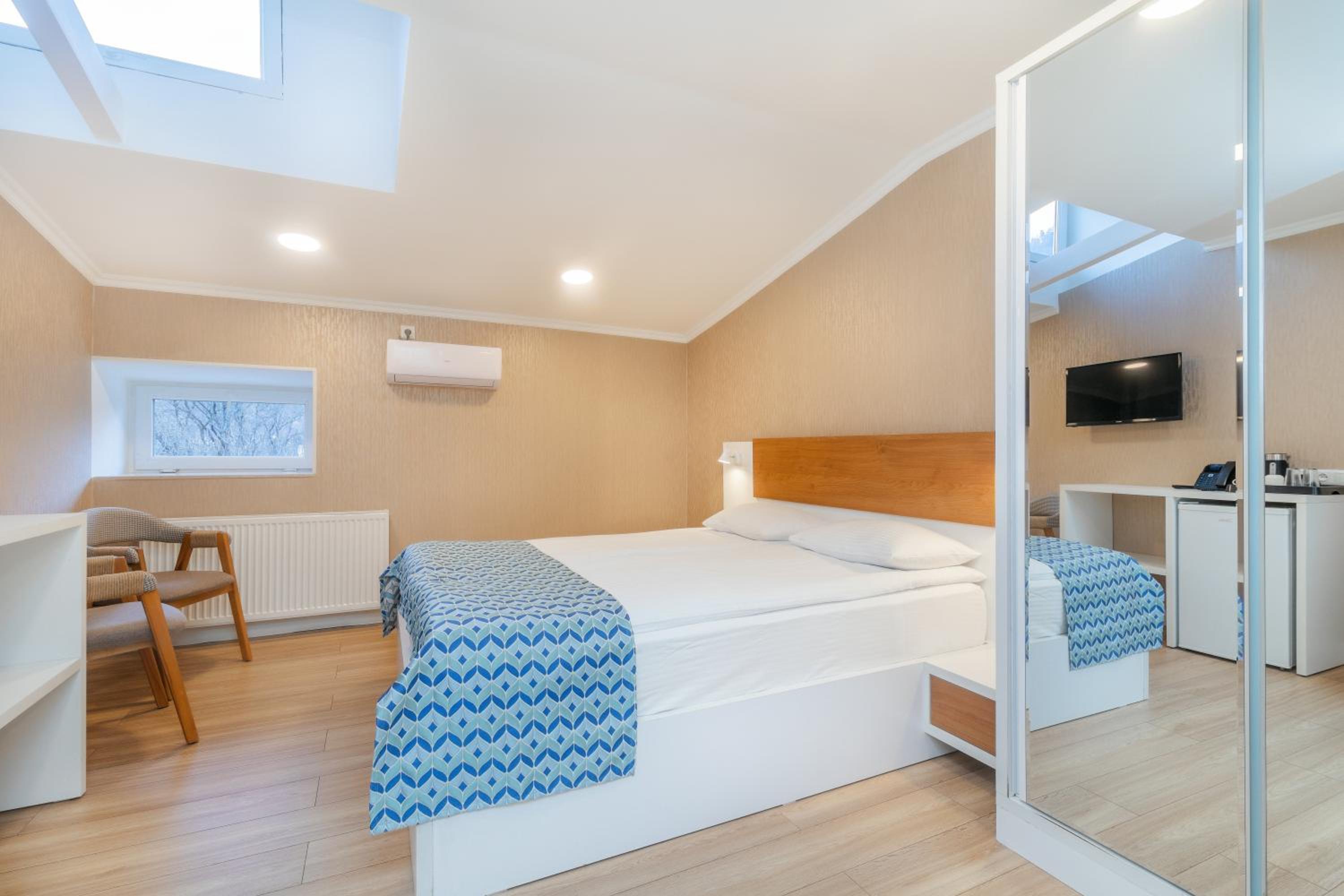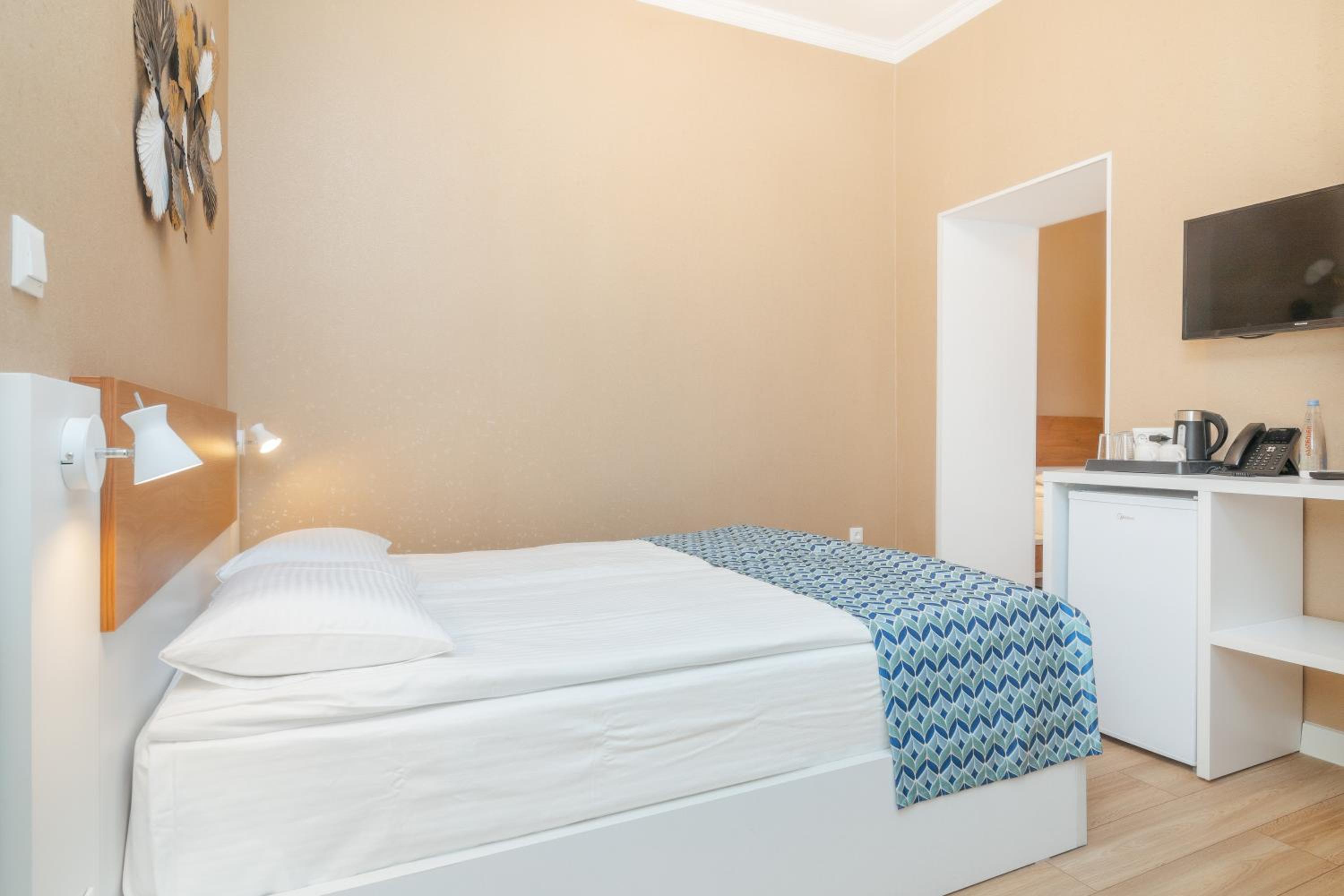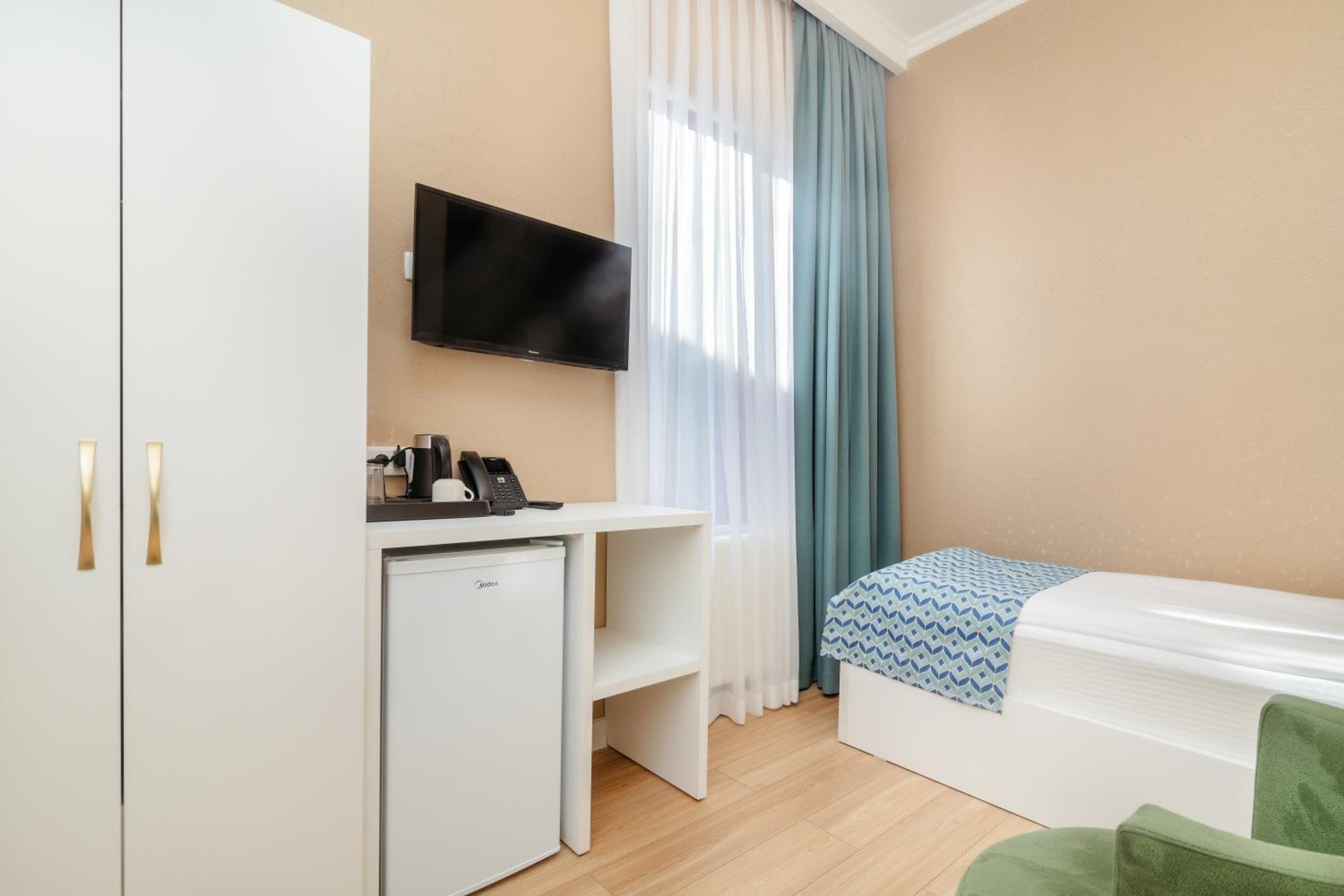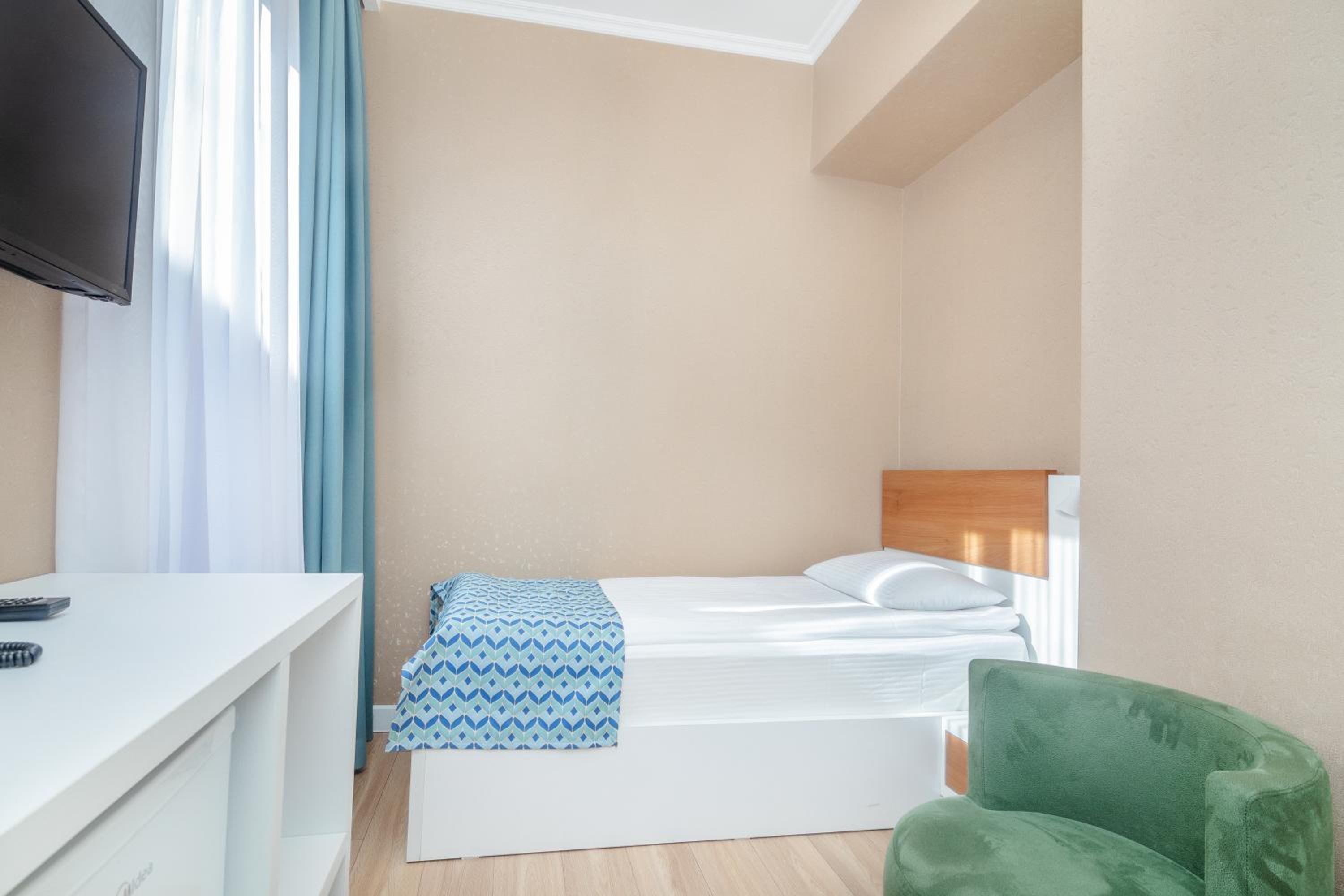 Комфортный номер с холодильником и средствами для душа. Менеджер помог поднять тяжёлый чемодан и приготовил завтрак, так как у меня был ранний выезд. Хорошая односпальная кровать, я полностью выспалась. Рядом парк для прогулки. В отеле было тихо.