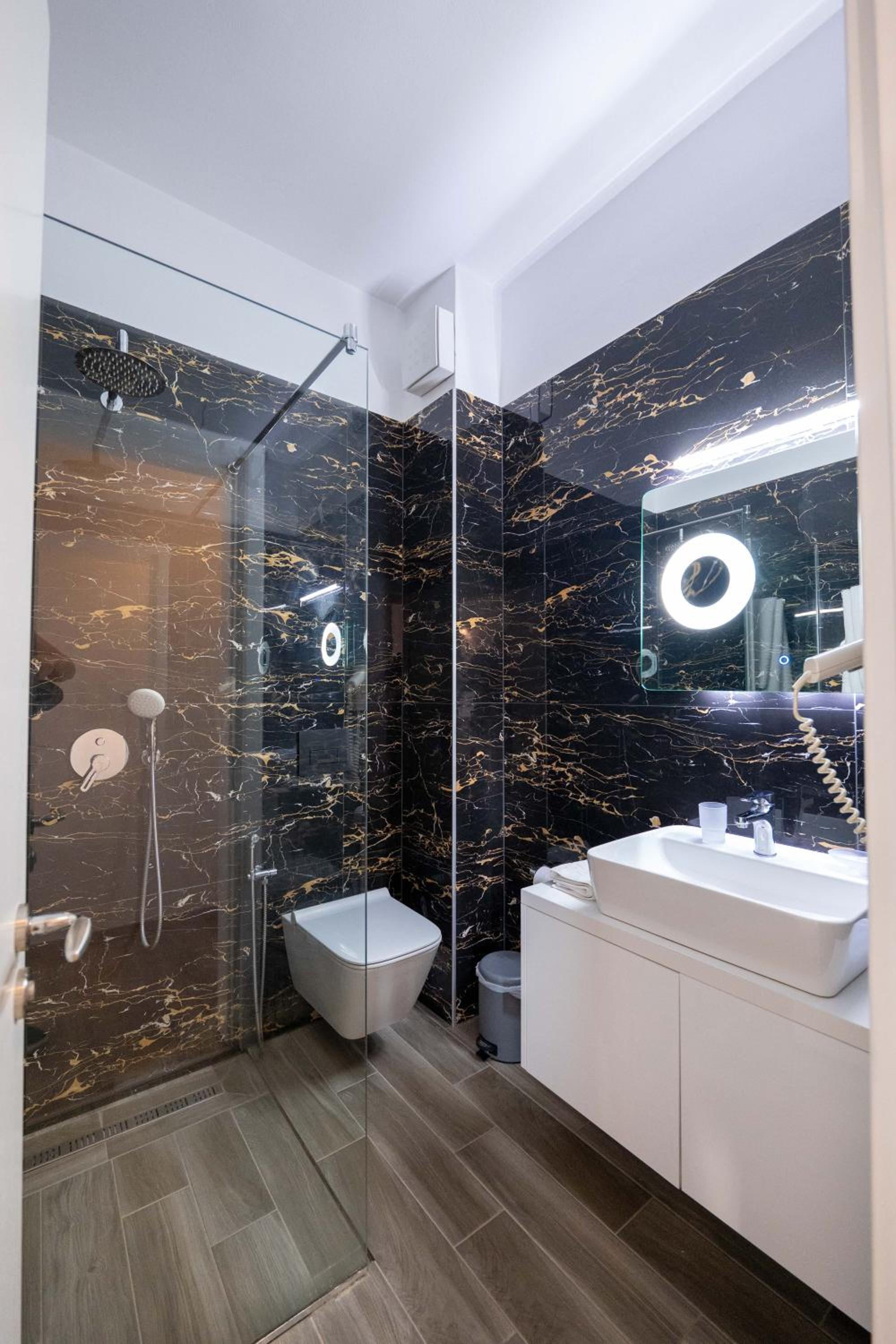 Pas de bouteille d’eau. Décoration basique pour ce type d’hôtel. La douche : absence de porte. De ce fait la salle de bain est une véritable piscine après chaque douche.