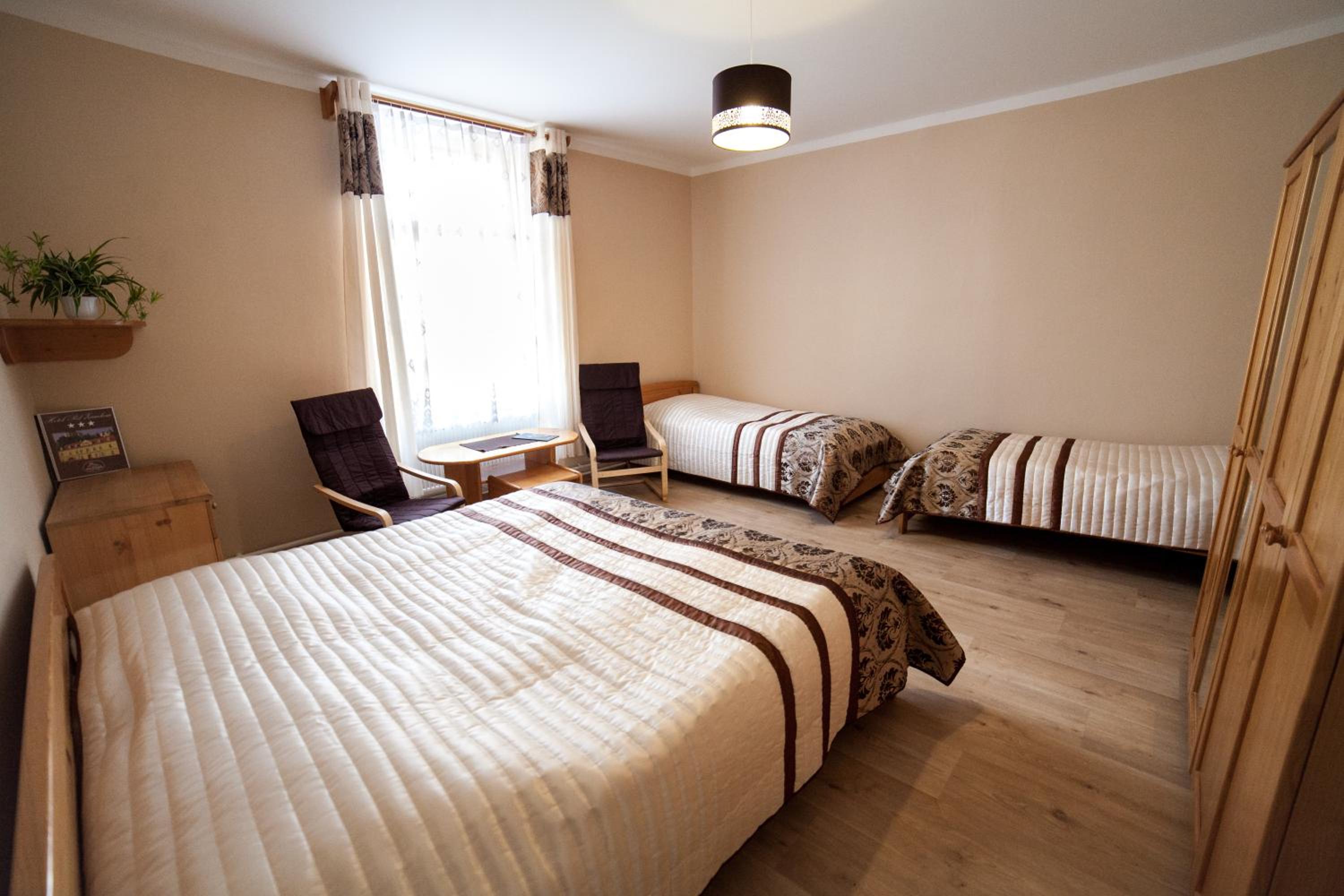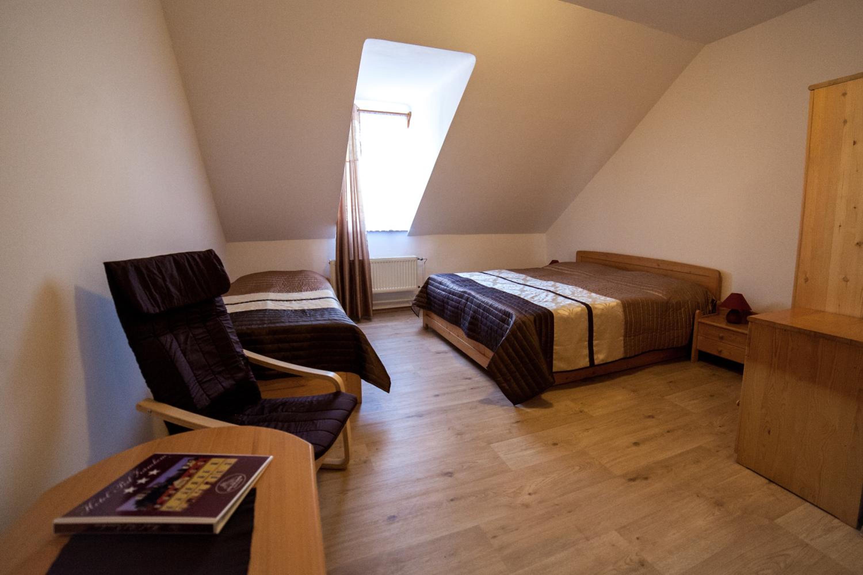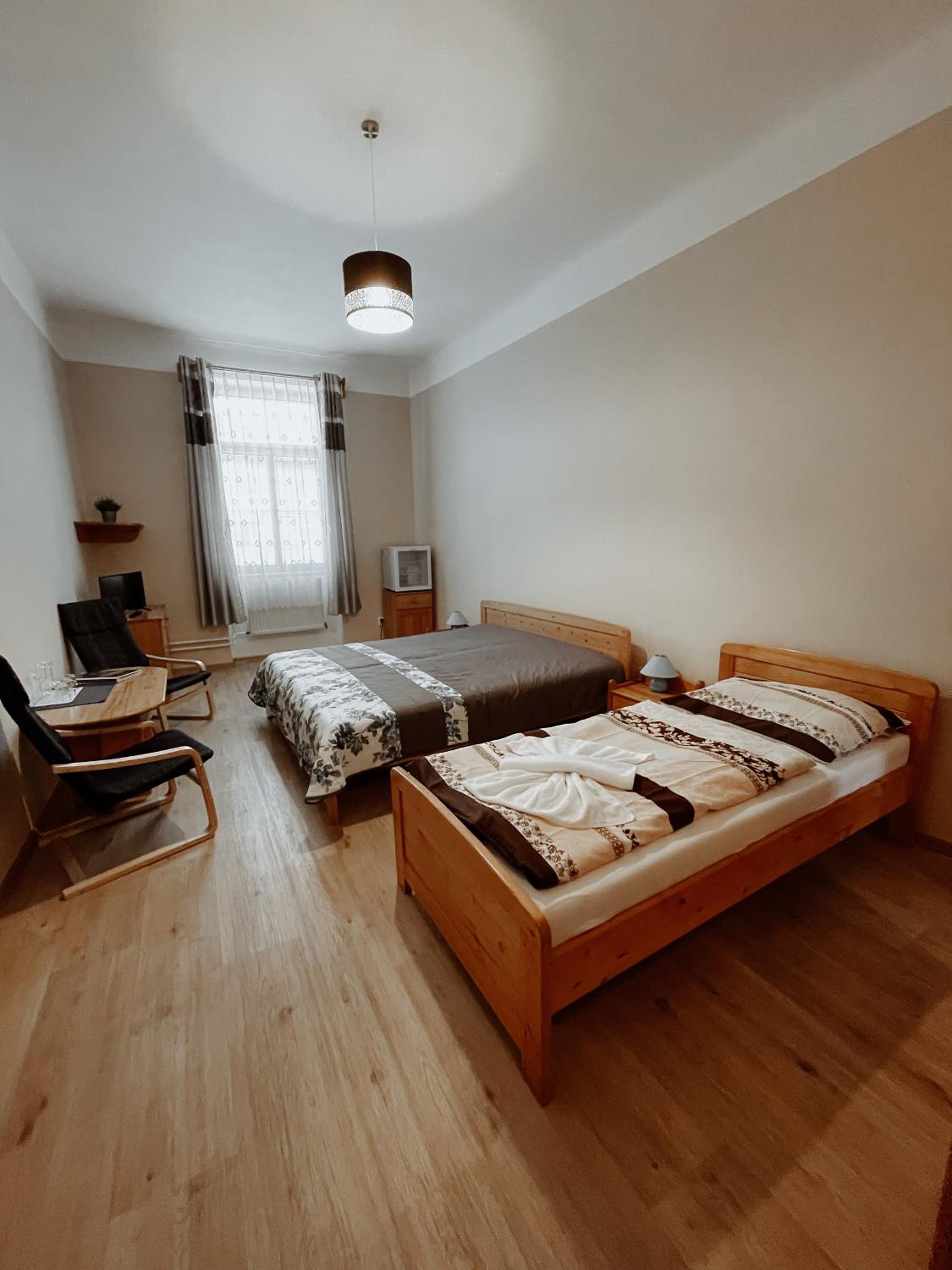 Pokoj byl prostorný a pohodlný, poloha hotelu ideální pro vycházky na zámek a do okolí, parkovat se dá ve dvoře za hotelem (ještě před náměstím je třeba odbočit doleva a jet podél náhonu, je to jednosměrka). Je třeba ovšem počítat s tím, že jde o starou historickou budovu, kde nejsou žádné výtahy a schody do patra jsou náročnější. Součástí hotelu je restaurace v přízemí, kde jsou snídaně. Samozřejmě, kdo je zvyklý na nabídku v pětihvězdičkových hotelech, bude asi zklamán, nám to ale naprosto dostačovalo a se snídaní i s ubytováním jsme byli spokojeni.