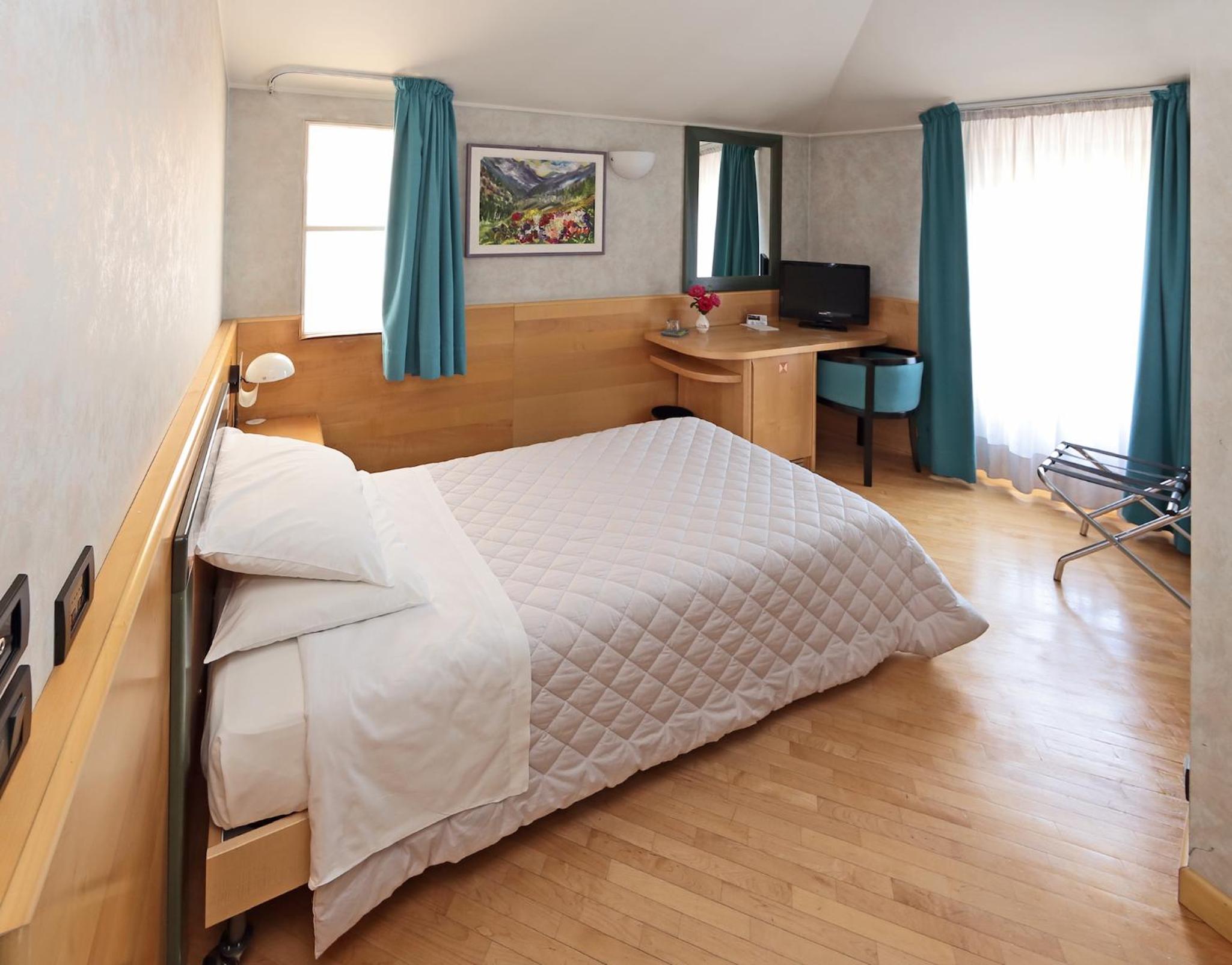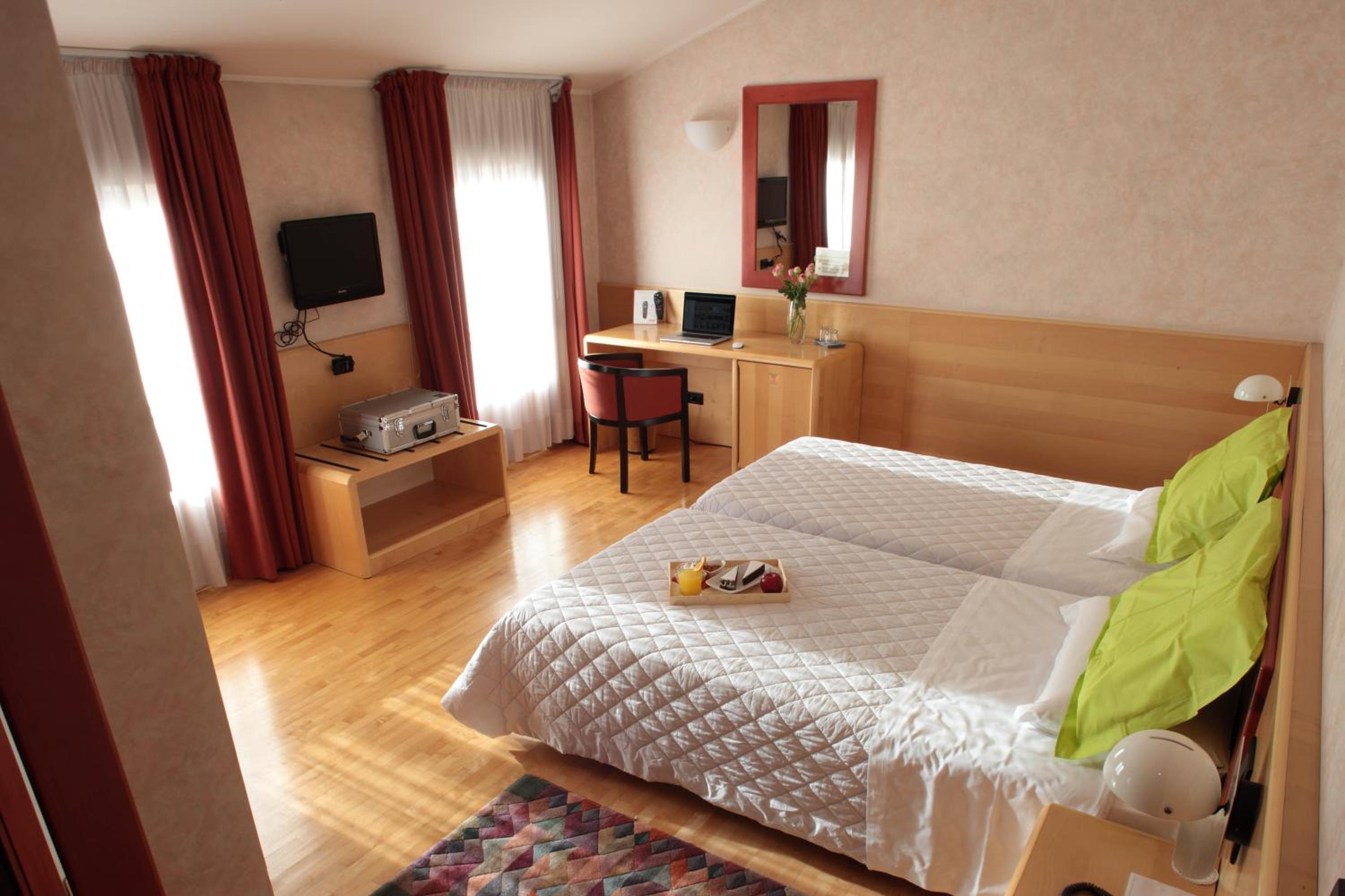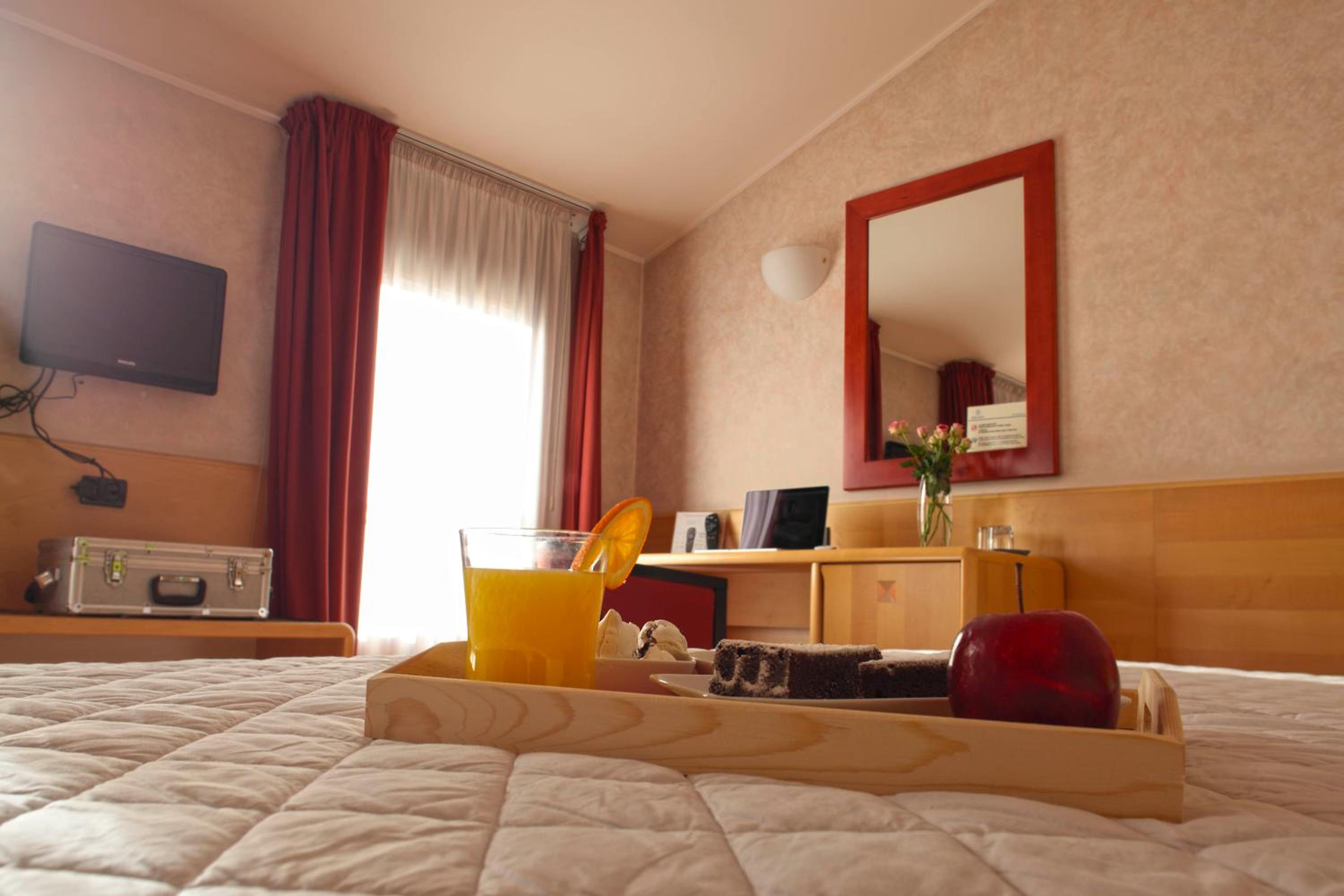 Piacevole il fatto di poter parcheggiare la macchina un un garage dell'Hotel. La stanza di buone dimensioni e con ottima insonorizzazione. Letto matrimoniale molto grande e comodo. Bagno con doccia ampio. Ottima pulizia della camera. Prodotti della colazione molto buoni.