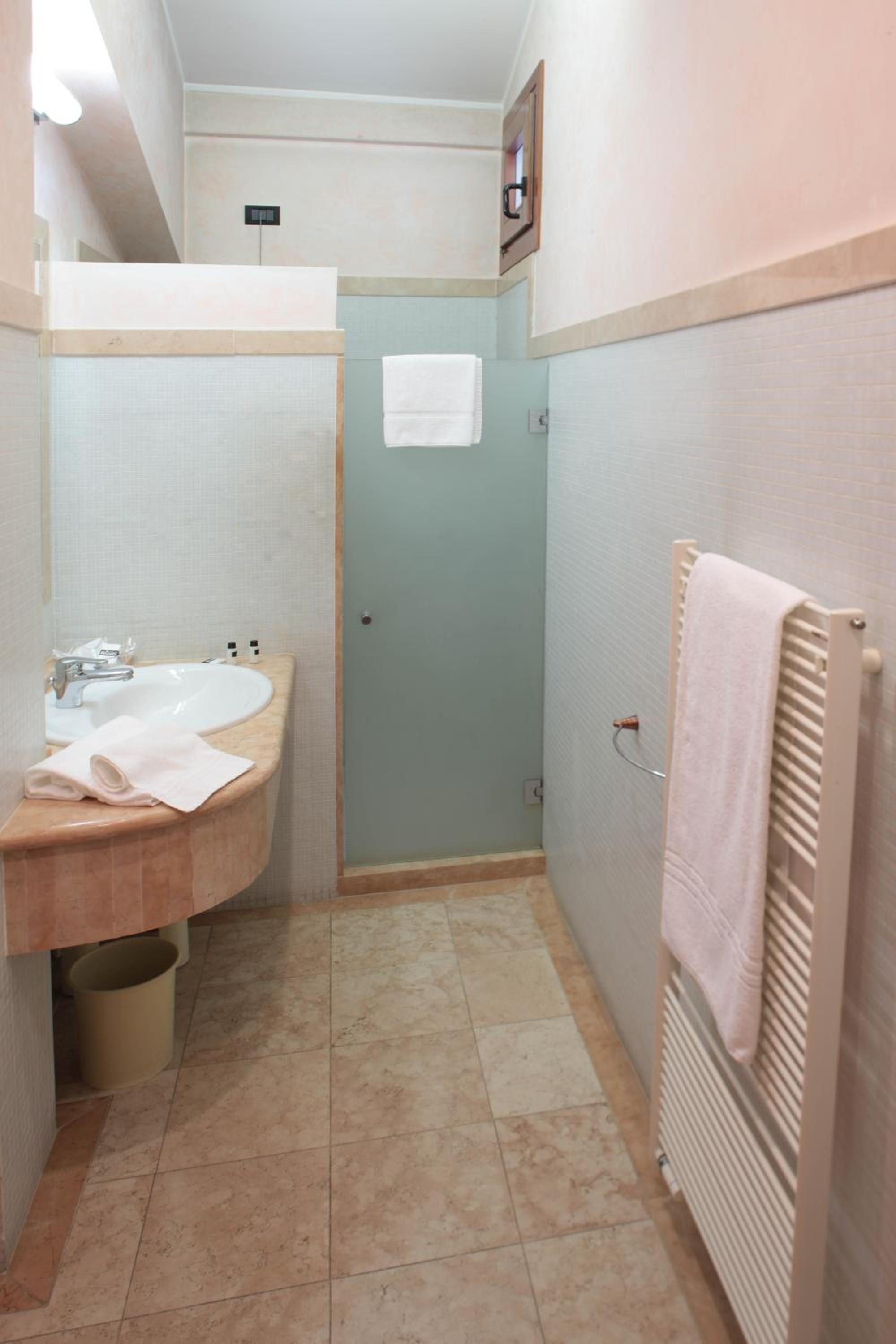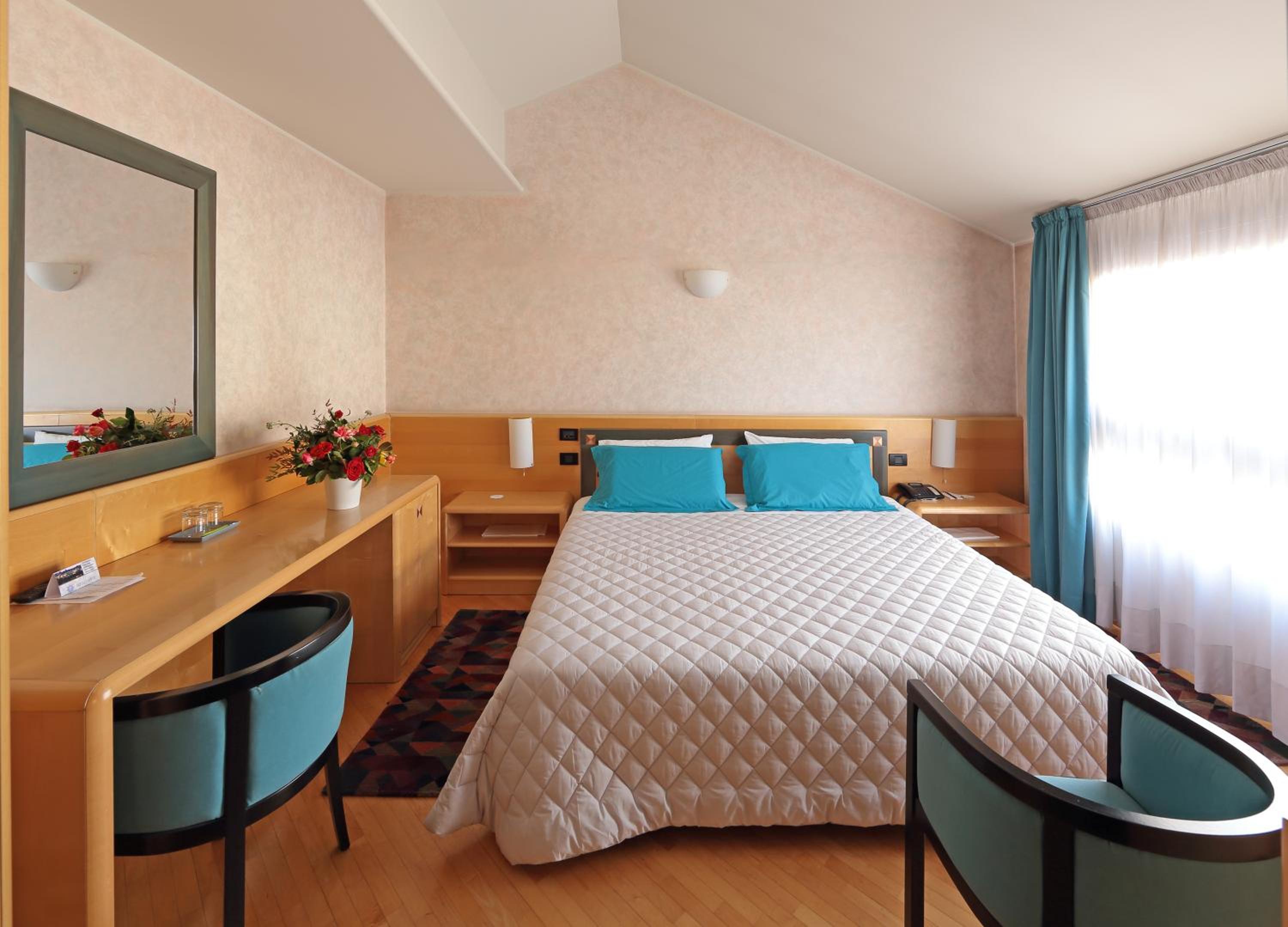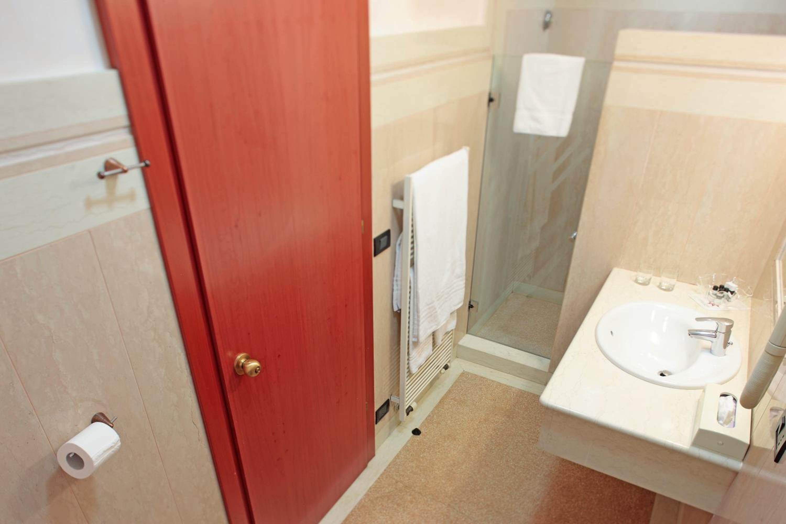 Piacevole il fatto di poter parcheggiare la macchina un un garage dell'Hotel. La stanza di buone dimensioni e con ottima insonorizzazione. Letto matrimoniale molto grande e comodo. Bagno con doccia ampio. Ottima pulizia della camera. Prodotti della colazione molto buoni.