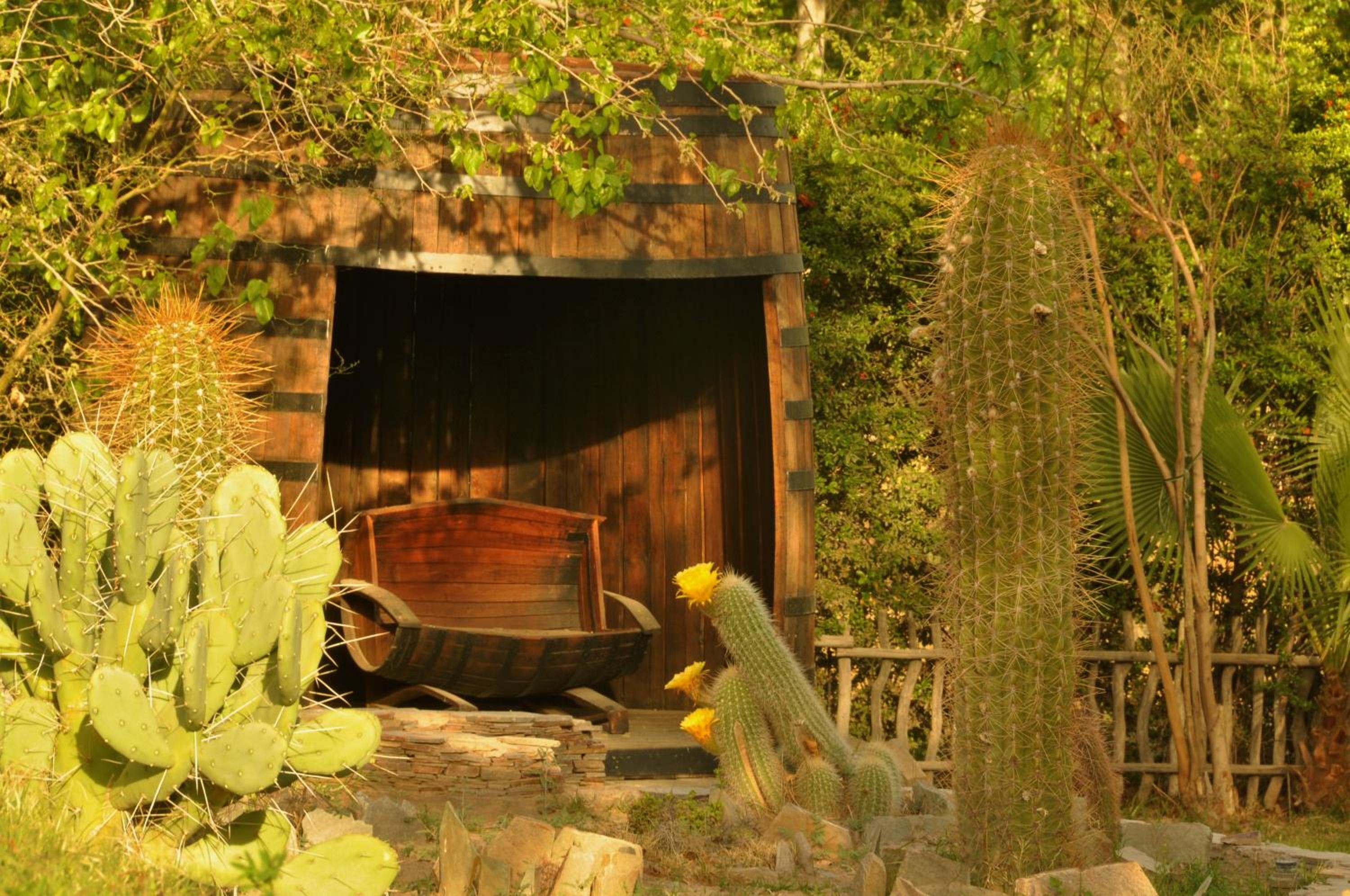 Etwas abseits vom Trubel der Sadt mit einem wunderbaren Garten. Rustikal, stilvoll und viele schöne Details. Es gab auch gutes Abendessen auf Anfrage. Ein Pool im Garten gab es auch. Es gab Pfauen, Hühner und Pferde.