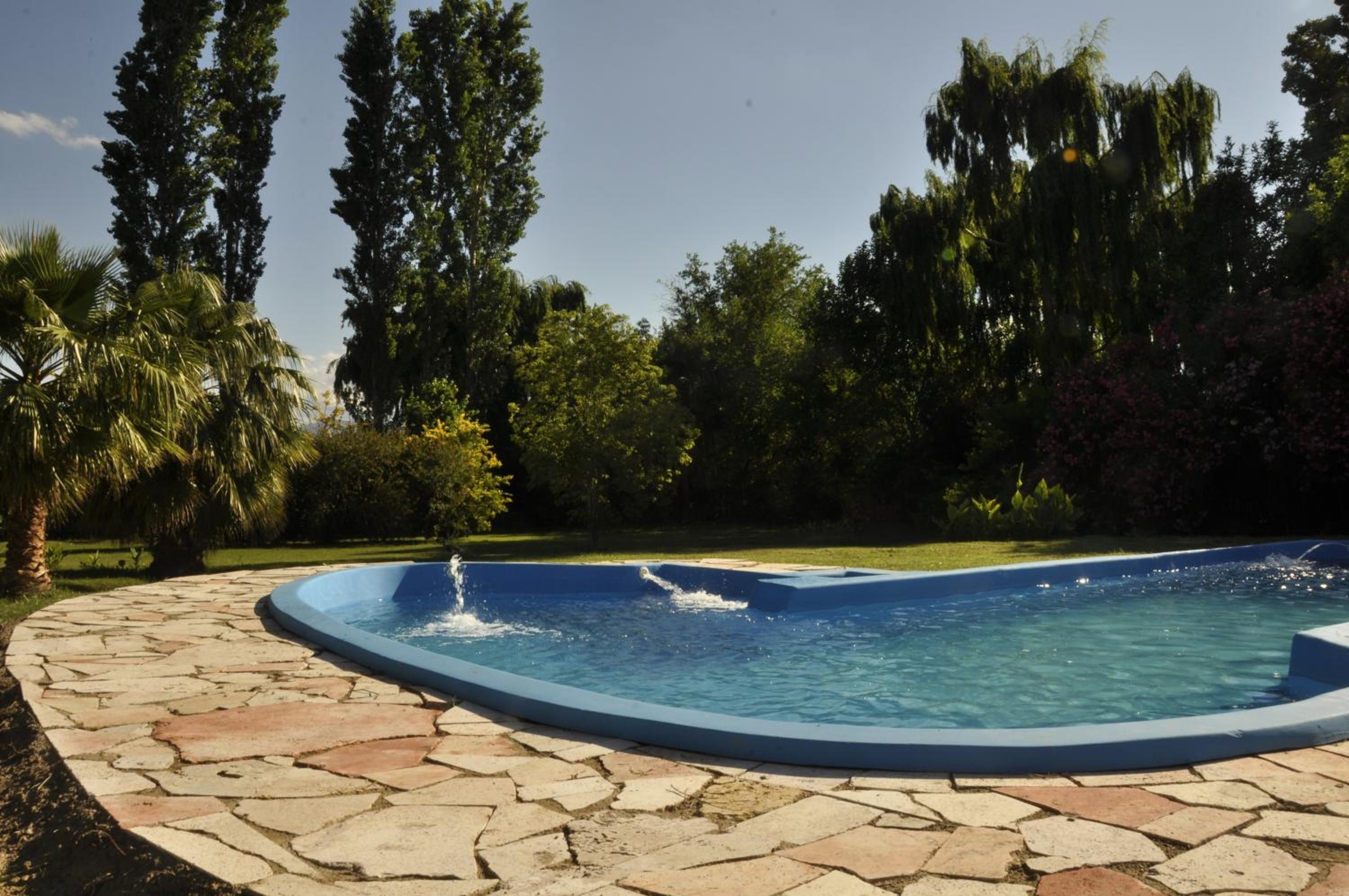 Es ist eine Oase mit einem wunderschönen alten Haus. Die jungen Gastgeber:innen haben sich herzlich um uns gekümmert. Der Pool ist in der Hitze eine willkommene Abkühlung. Der Garten mit den Tieren (Hunden und Pfauen) lädt ein zum Entspannen und Genießen. Wir können uns über nichts beschweren.