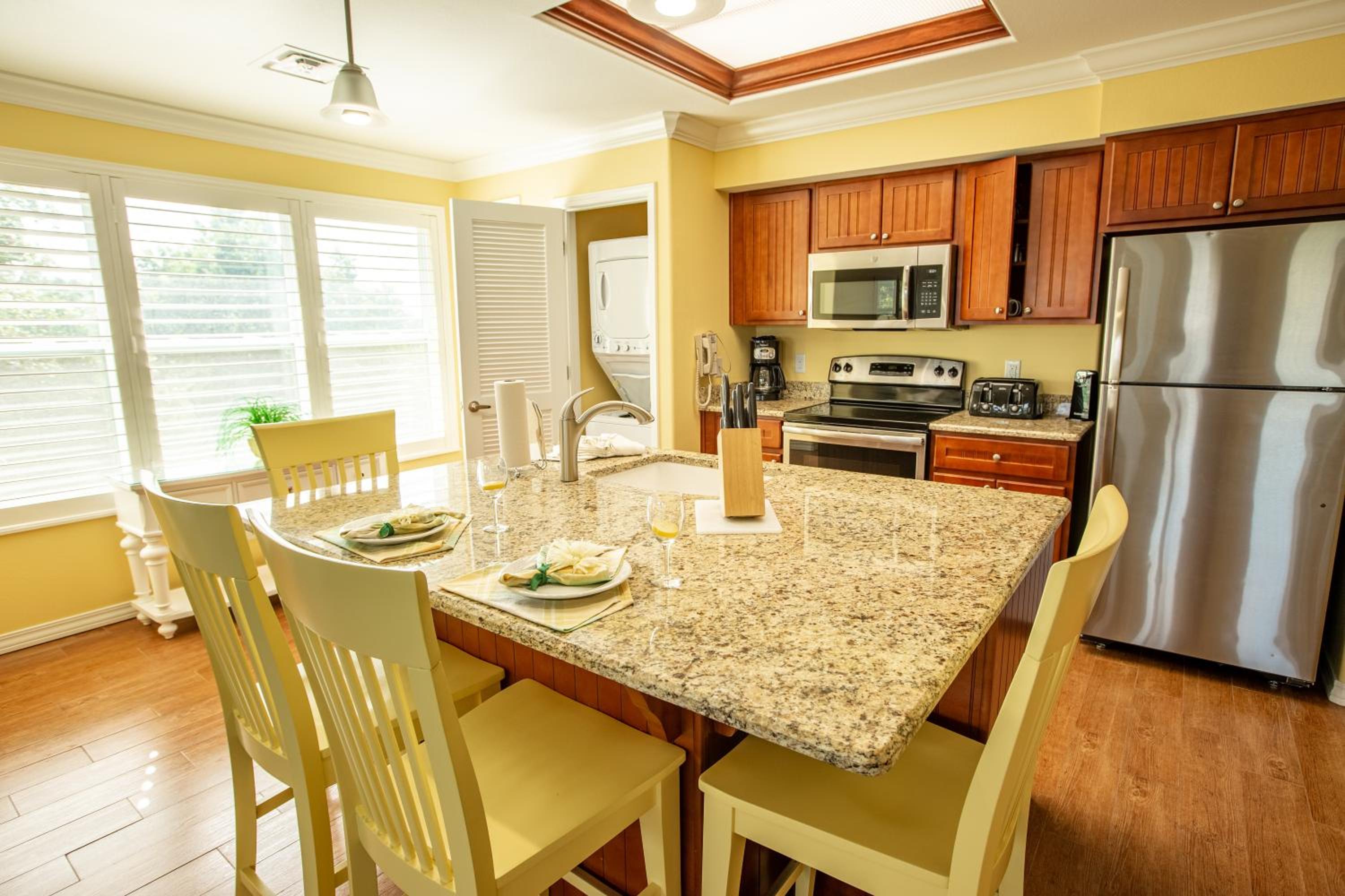 I love the size of the condo and the convenience of having a stocked kitchen so I can make meals for my family. I love the style of the furnishings and newness of the interior and the appliances. The location of the resort is very conveniently located in town with easy access to shows and attractions.