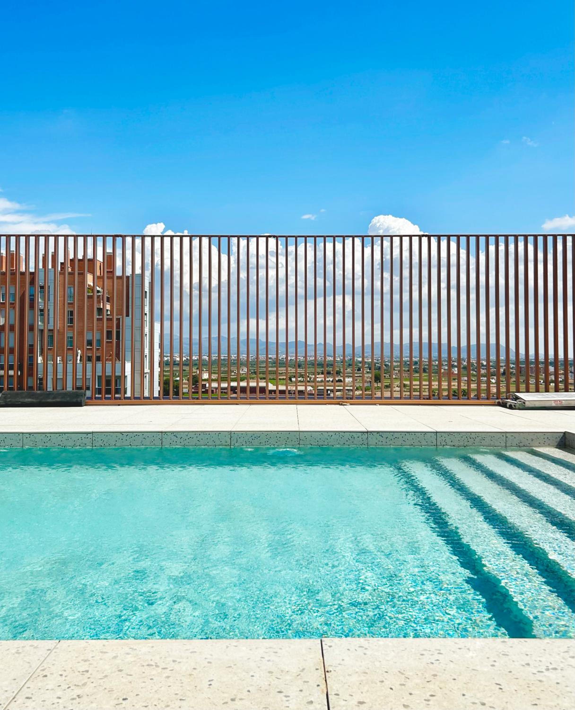 La piscine sur le toit est assez petite pour le coup, trop de monde et c’est pas possible.
