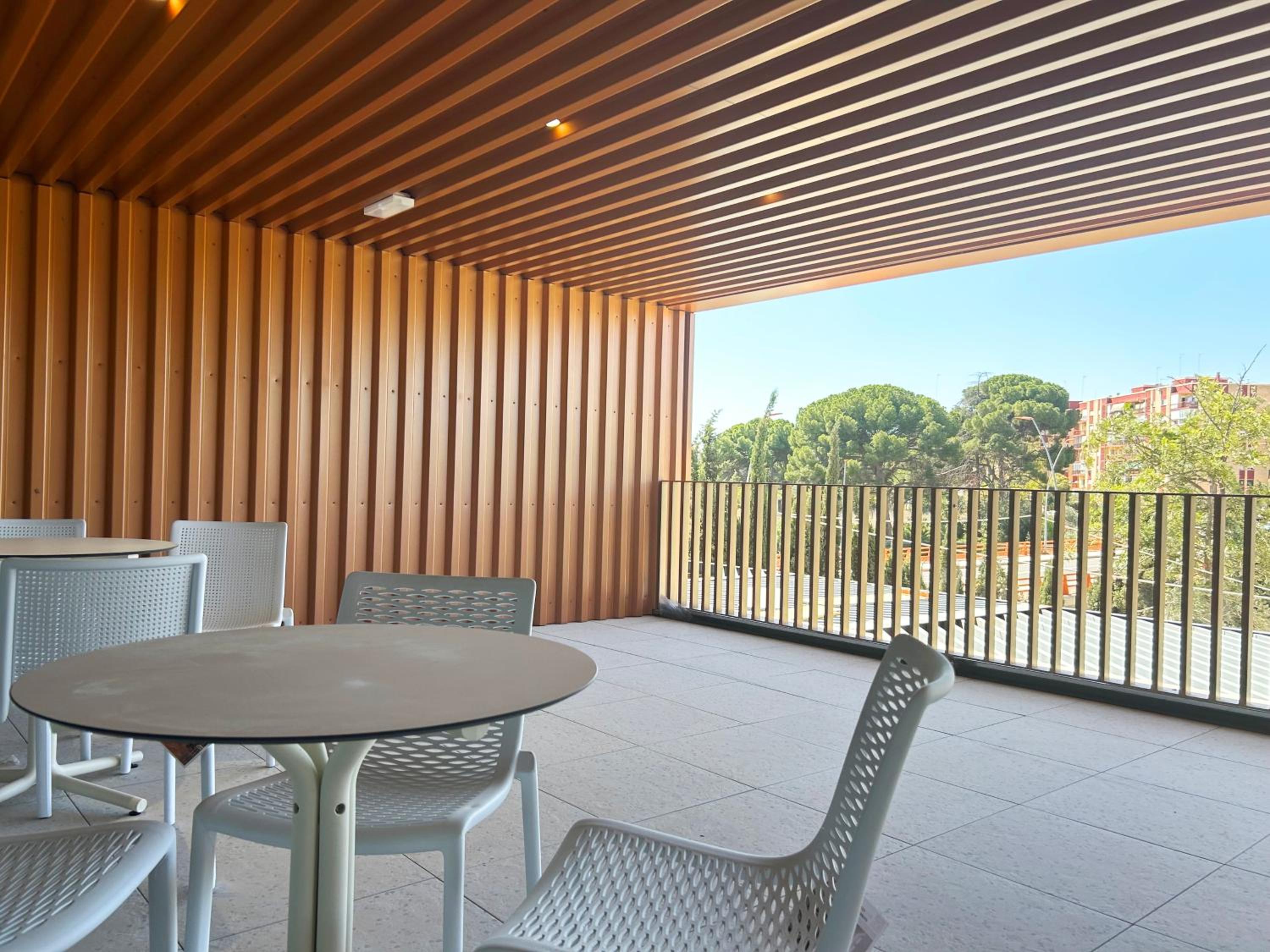 Hotel nuevo y muy juvenil, es también una residencia de estudiantes. Buen gimnasio y buena piscina. Bien insonorizado y en una zona muy tranquila y bien comunicada tanto en coche como en transporte público.