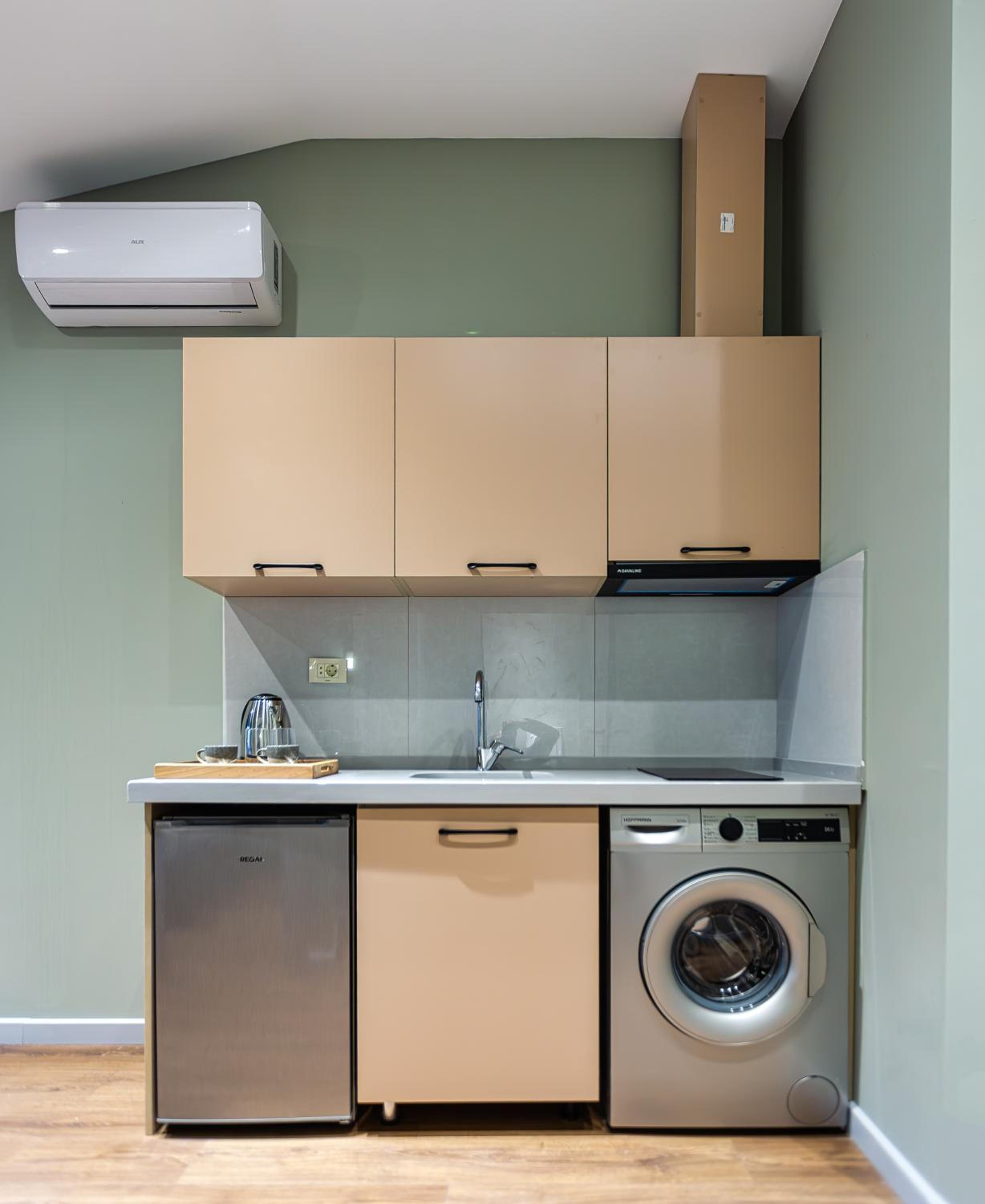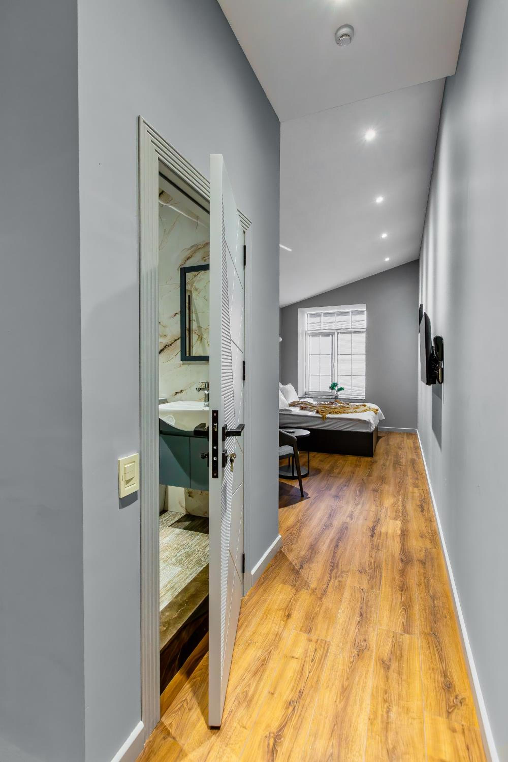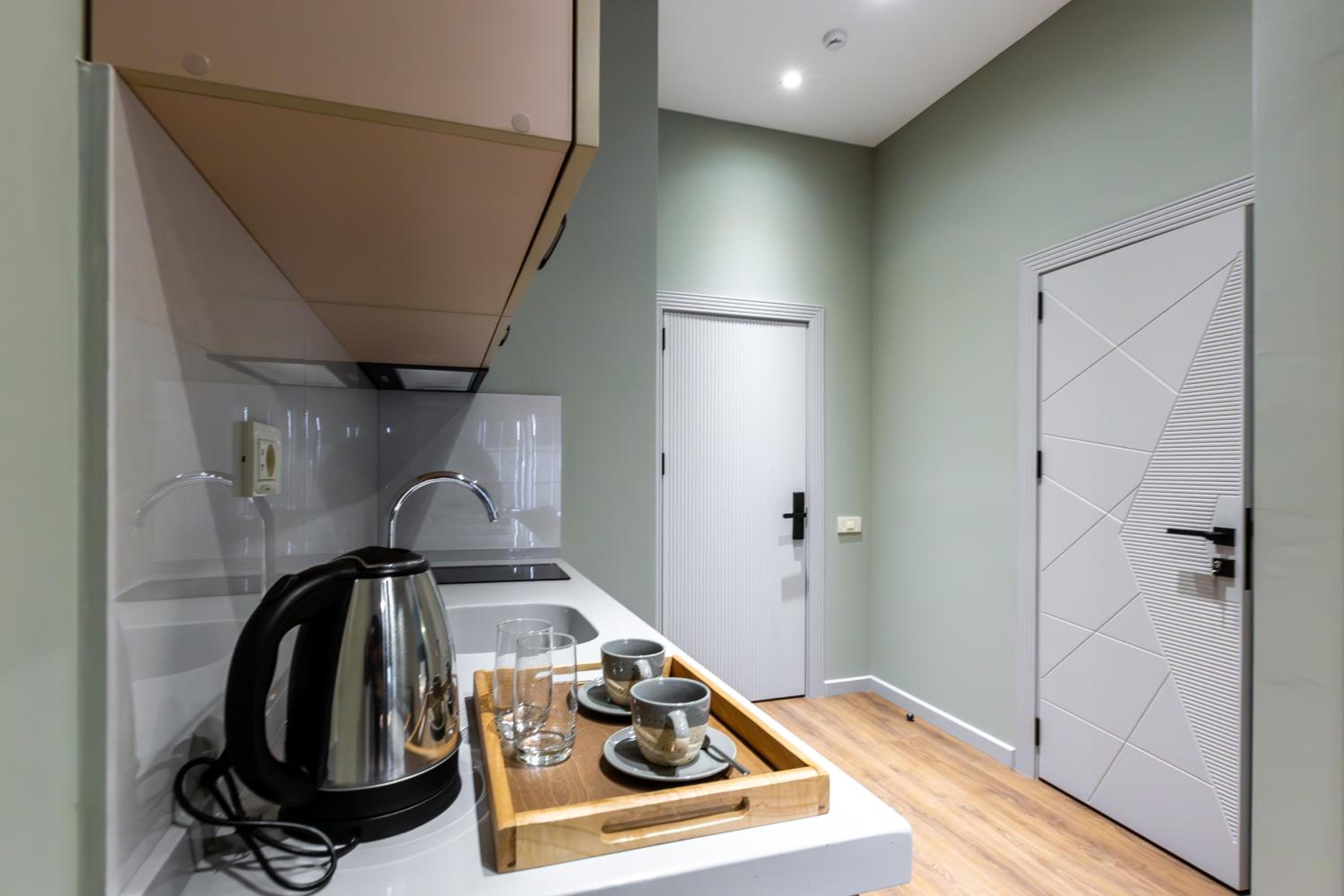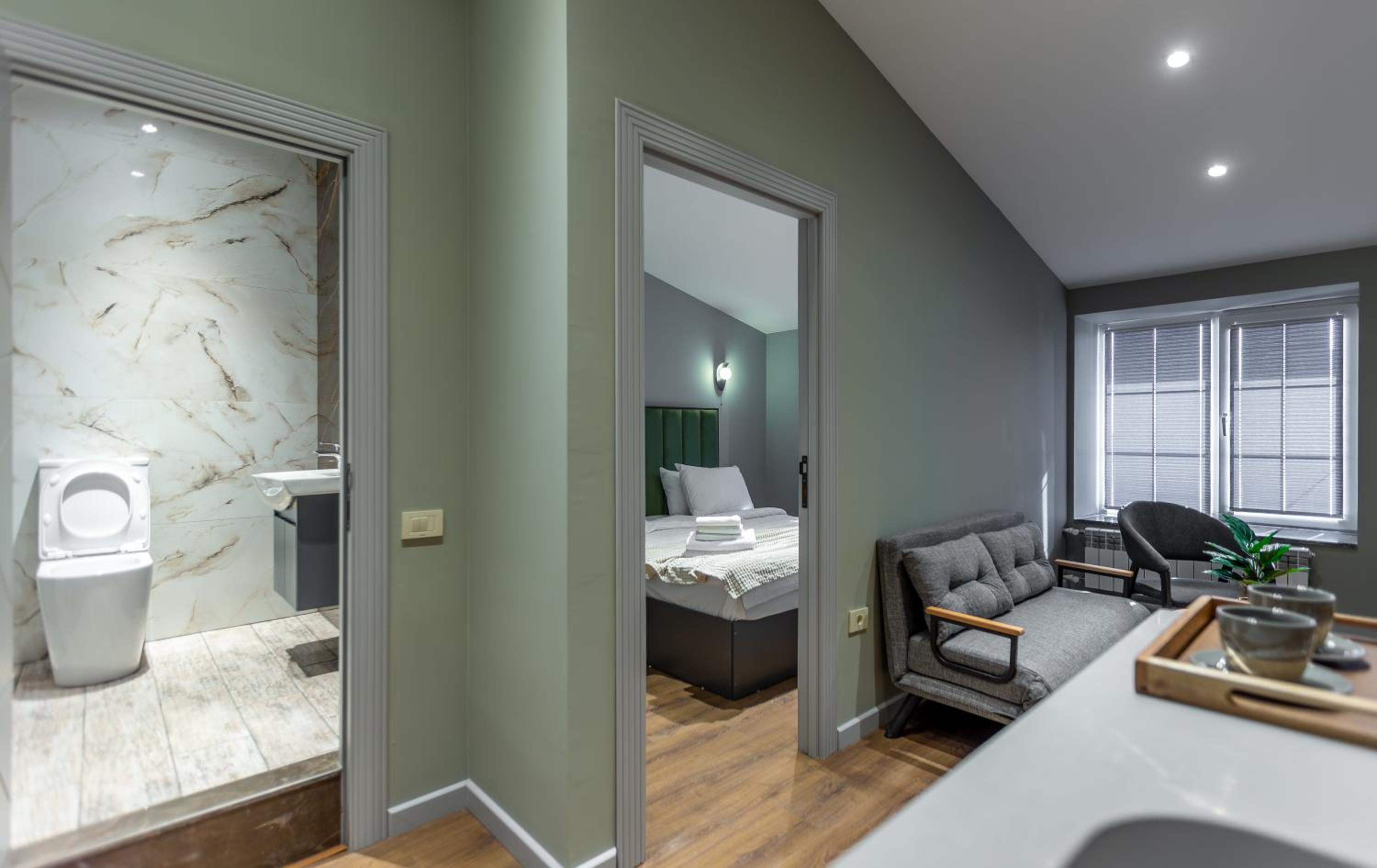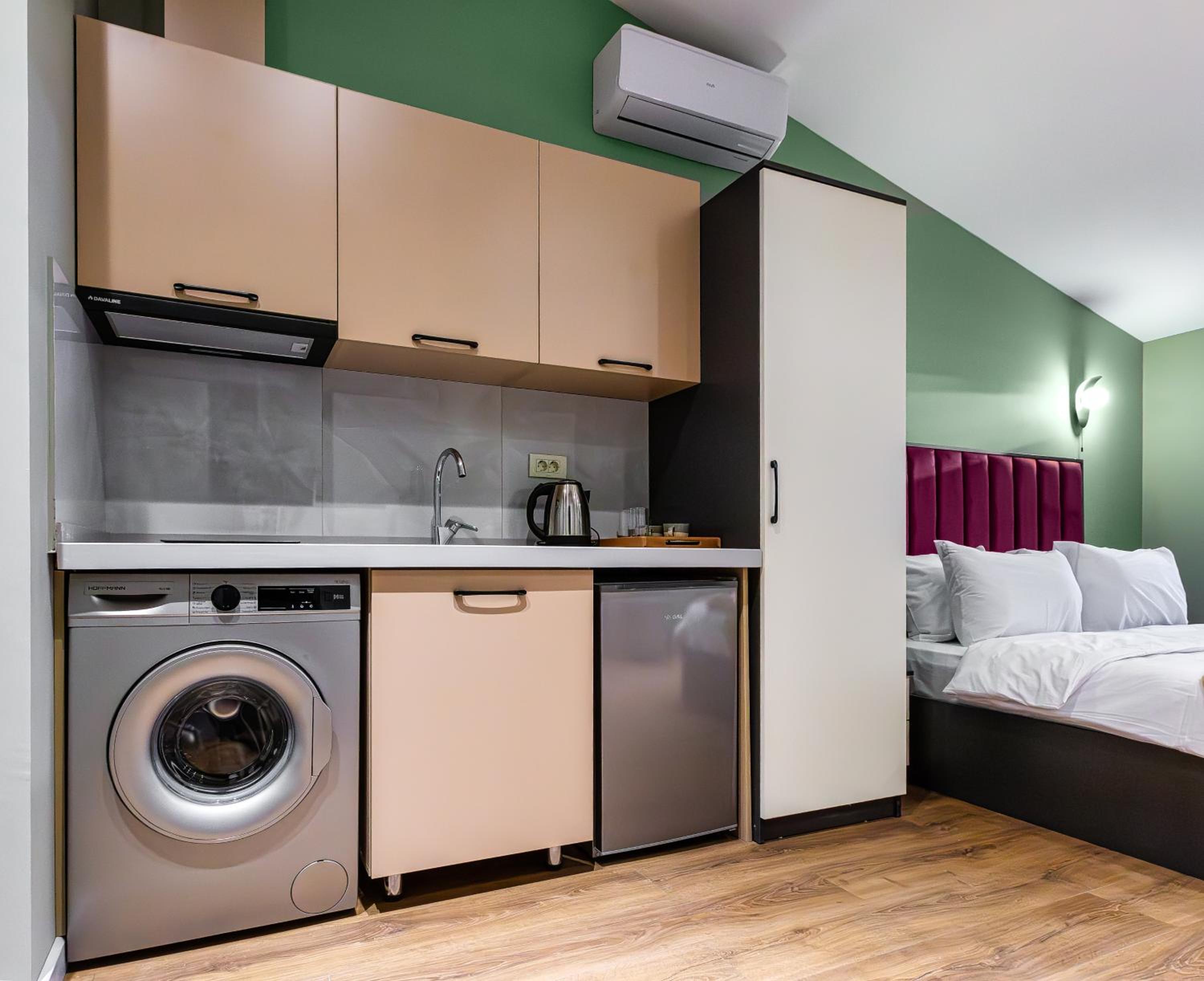 A nice, clean, and very stylish hotel! There’s a cozy place to relax after long walks, a separate bedroom, and a kitchen. The shower and toilet are great—everything is well-designed and spotless.