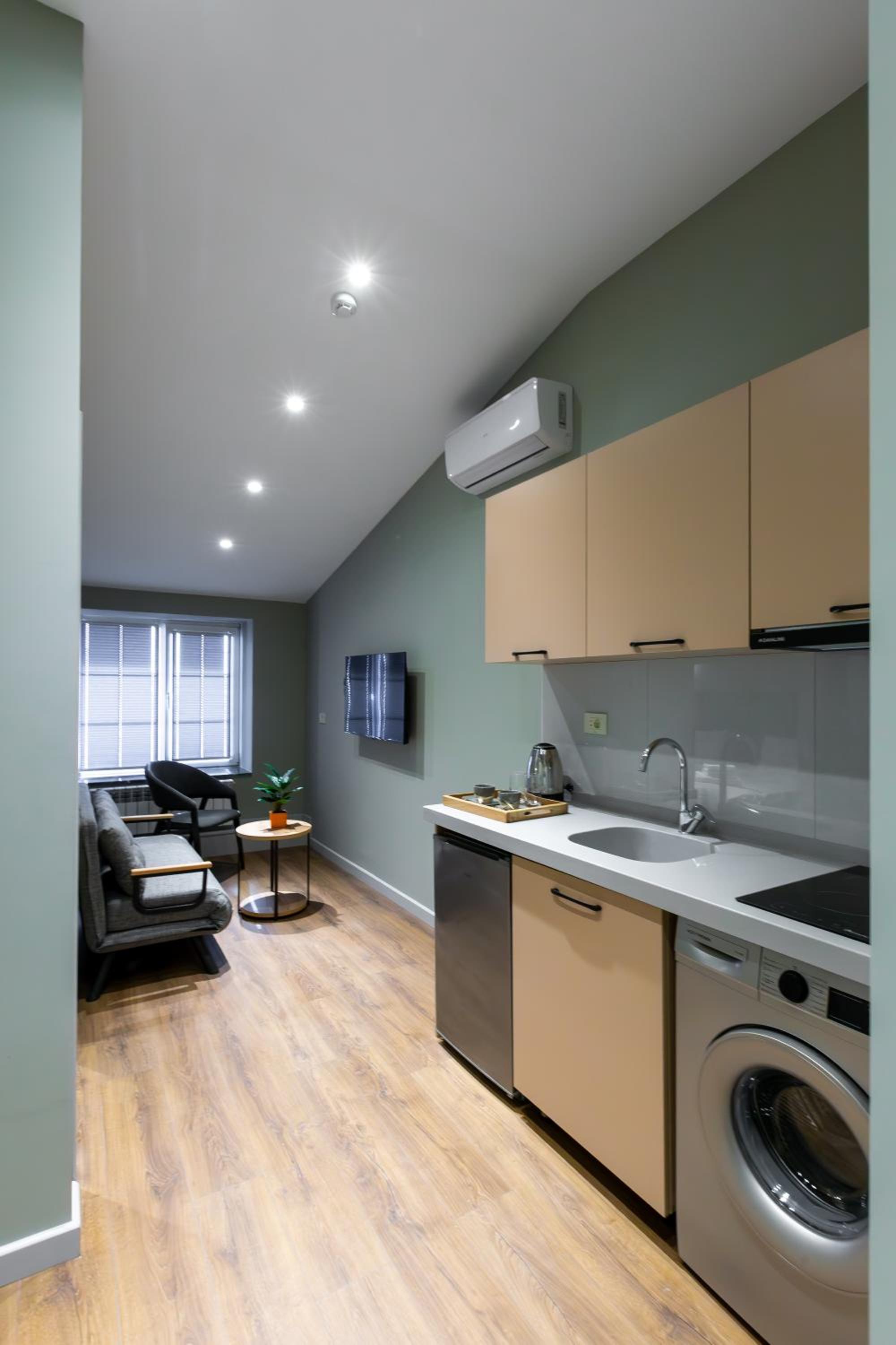 Great location right in the city center. The room was clean, modern, and comfortable, with a kitchen, washing machine, and fridge — very convenient. Although the lack of an elevator was a minor inconvenience, the friendly and helpful staff made our stay truly enjoyable.