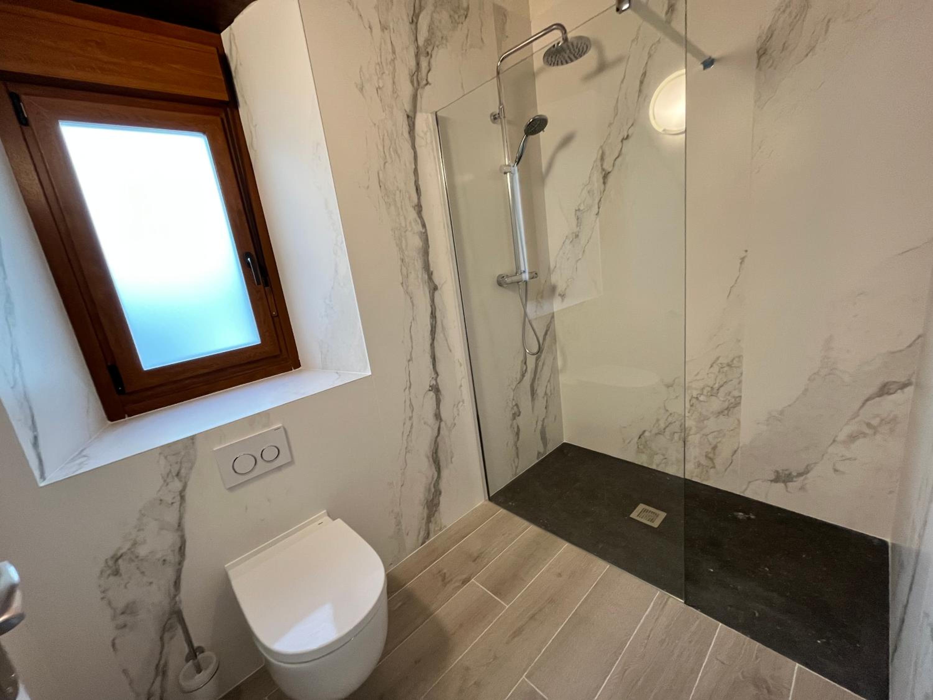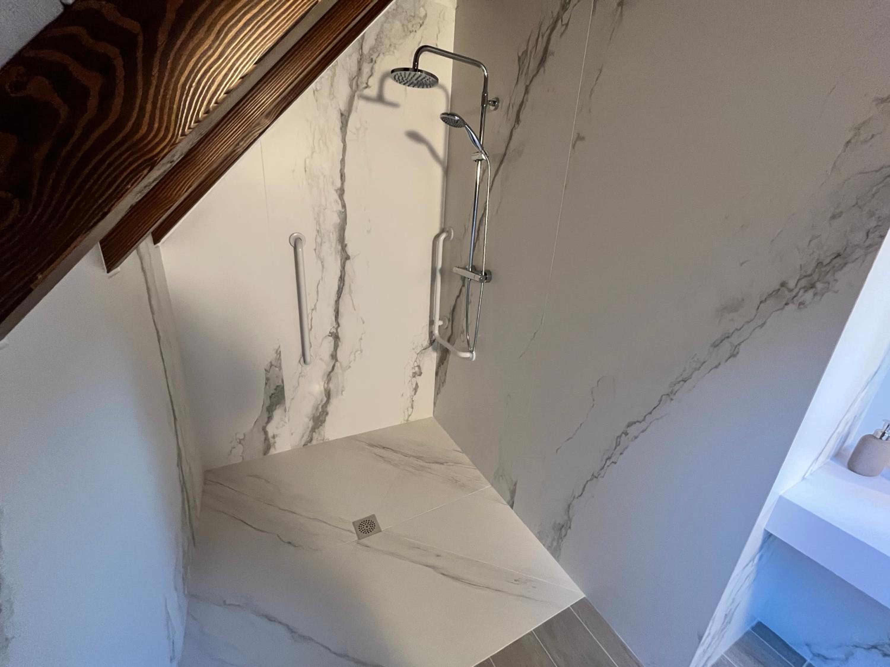 Si no andabas con cuidado, el agua de la ducha se salía de la zona del plato de ducha hacia el suelo del resto del baño.