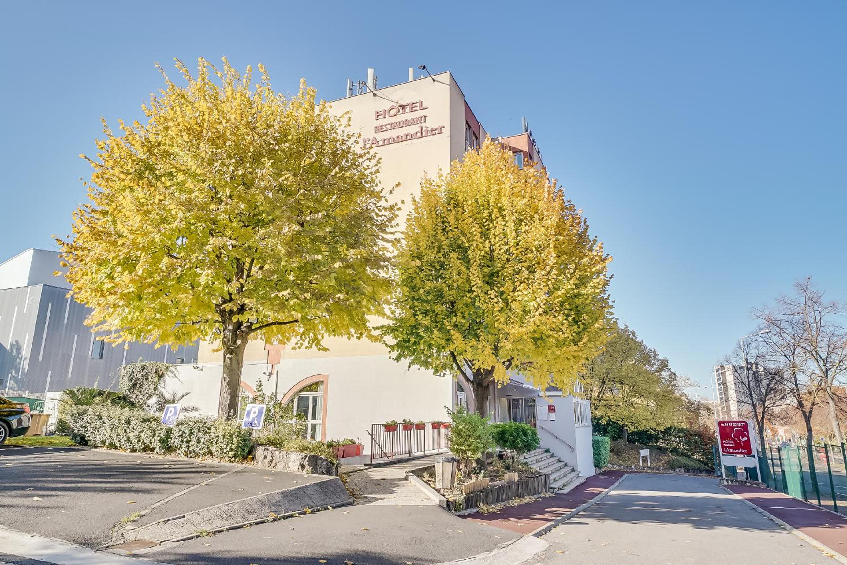Modern Rooms with Amenities - The Hôtel l'Amandier provides air-conditioned rooms with essential amenities such as a telephone, flat-screen TV, and private bathroom for a comfortable stay.