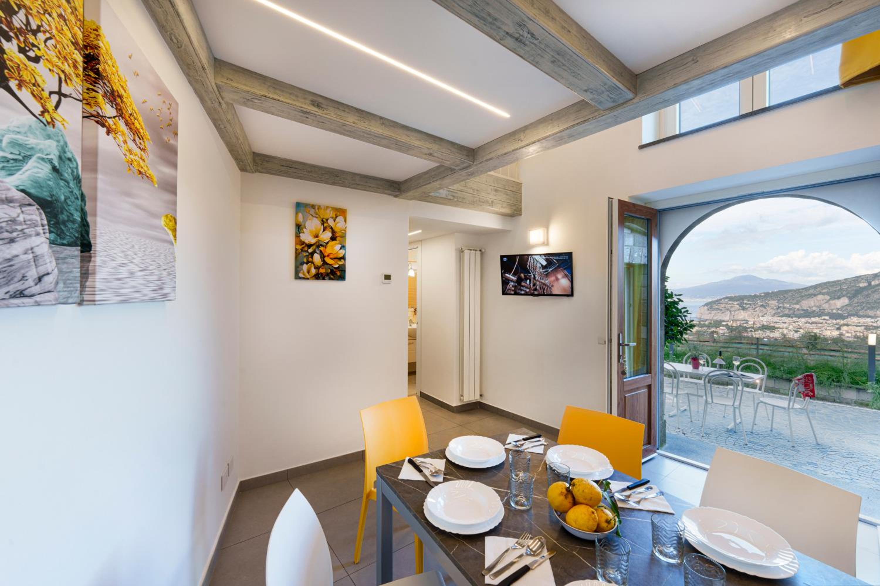 Propiedad situada en un enclave precioso con vistas al Vesubio y al mar. Muy limpia y acogedora, fuimos un grupo de 8 personas y el espacio era amplio.
