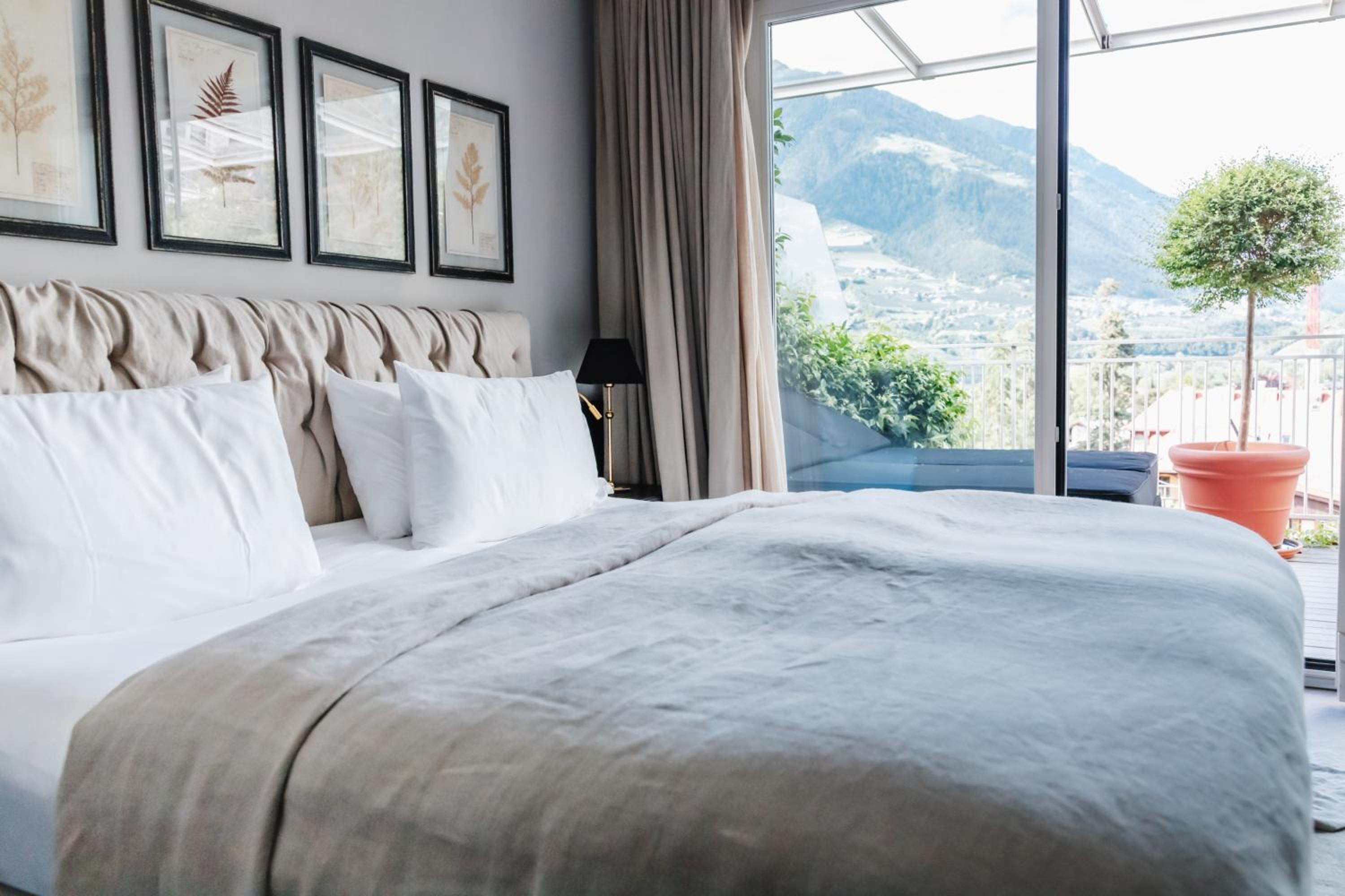 Where do i start. From arriving you know this a very well run hotel, the staff are welcoming, not formal but polite and friendly, always with a smile. The decor is elegant with a welcoming feeling. When you arrive in your room be prepared to gasp, as our room was breathtaking , the view from the balcony looked onto a well maintained rose garden with mountainous views looking across Merano.